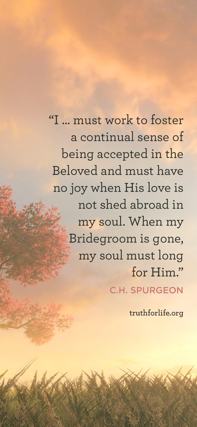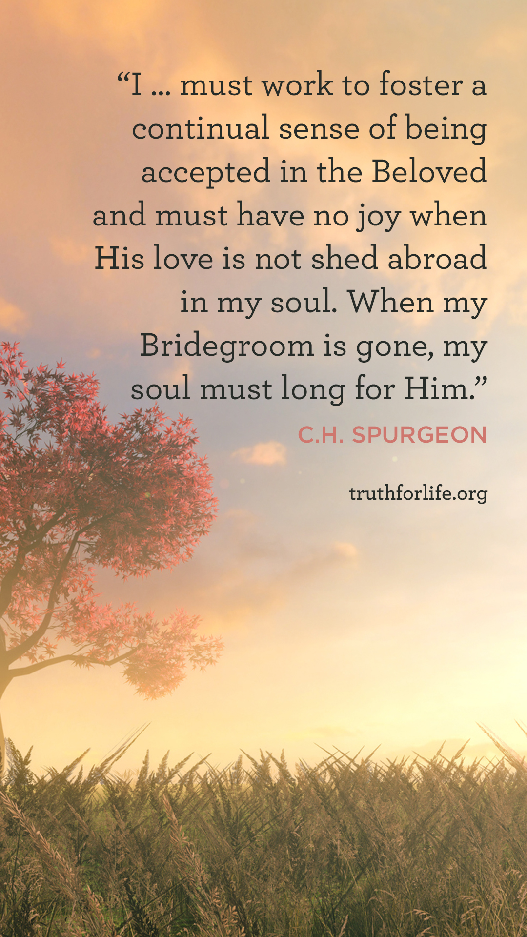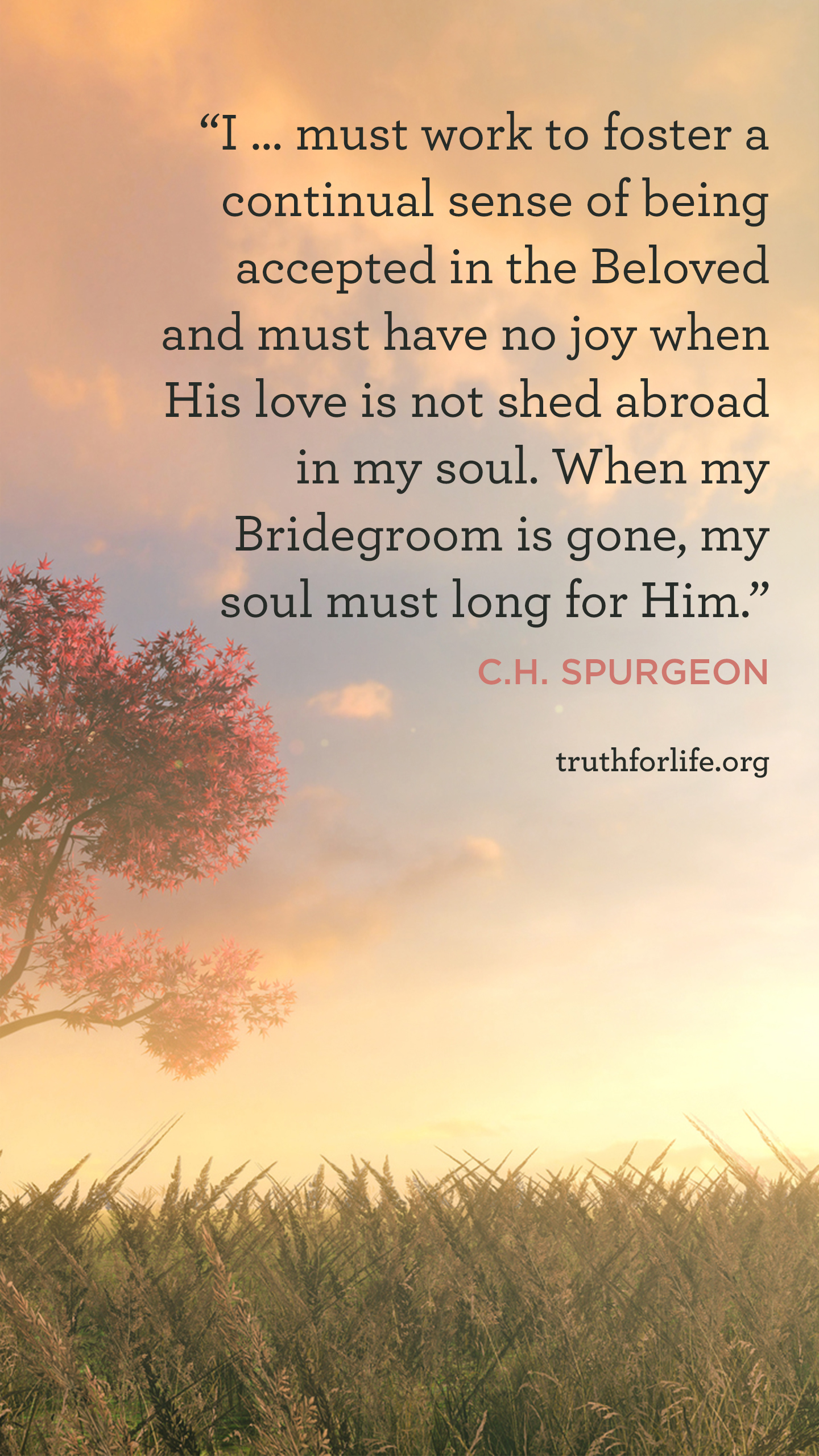 “I … must work to foster a continual sense of being accepted in the Beloved and must have no joy when His love is not shed abroad in my soul. When my Bridegroom is gone, my soul must long for Him.”