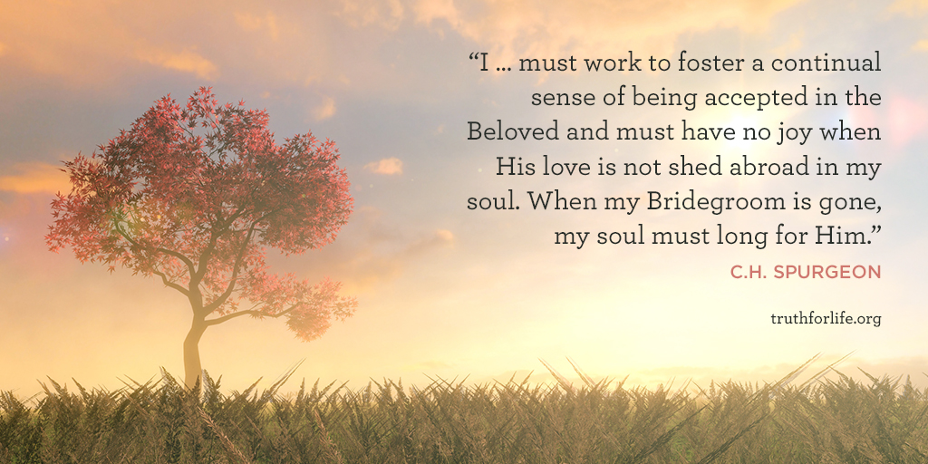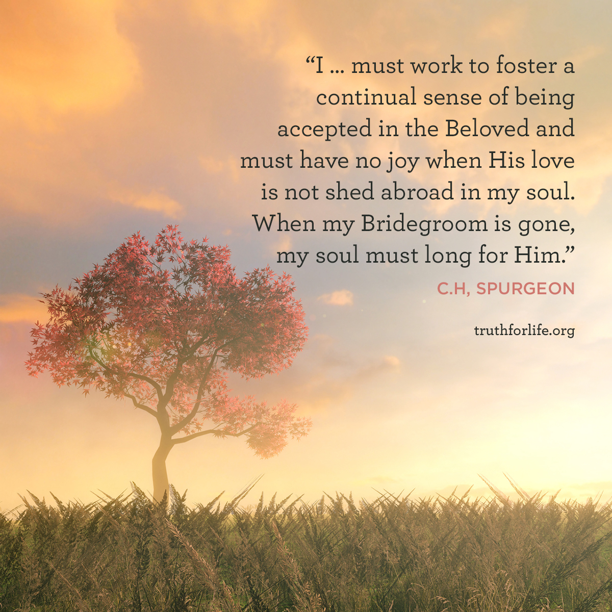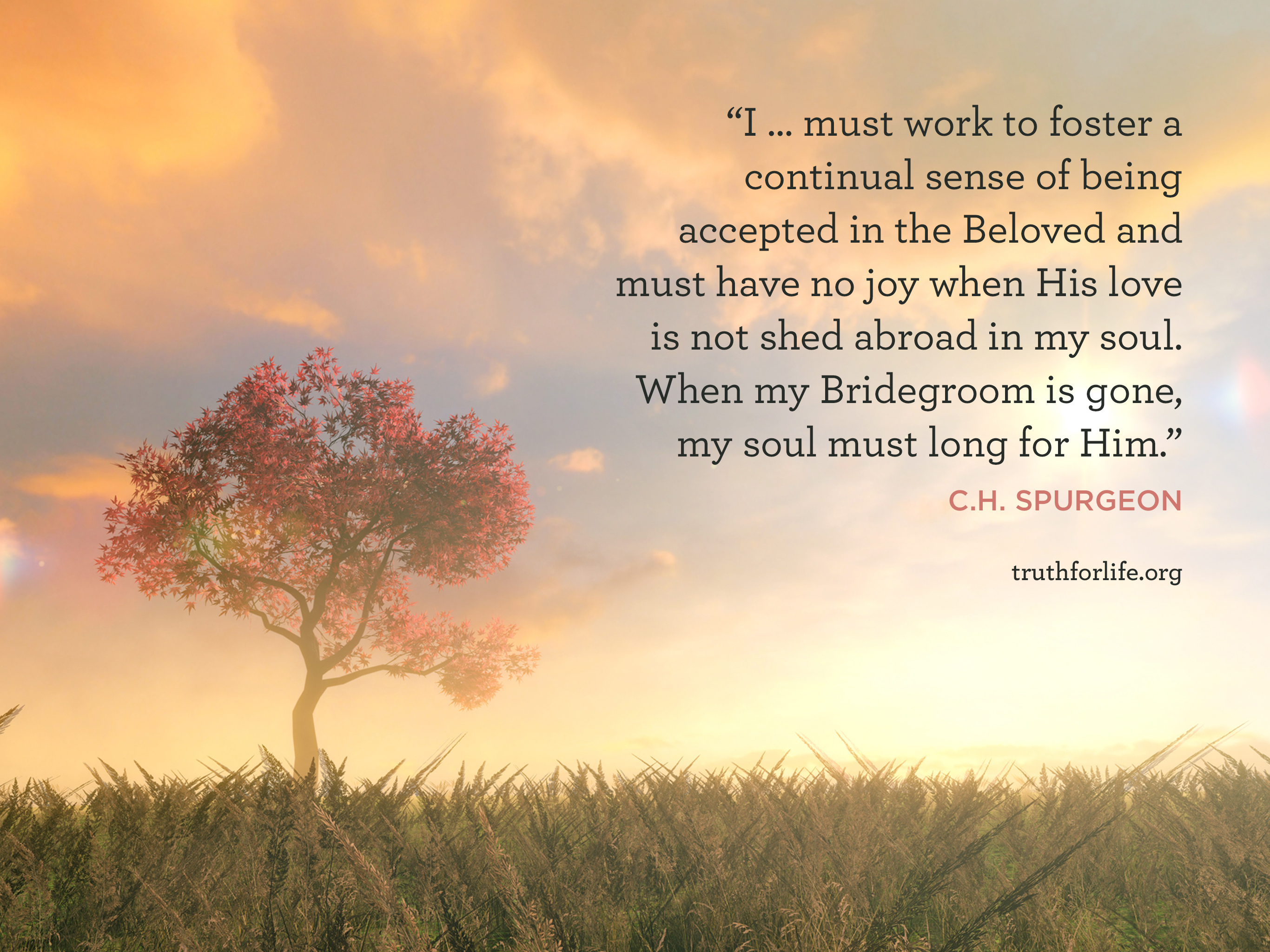 “I … must work to foster a continual sense of being accepted in the Beloved and must have no joy when His love is not shed abroad in my soul. When my Bridegroom is gone, my soul must long for Him.”