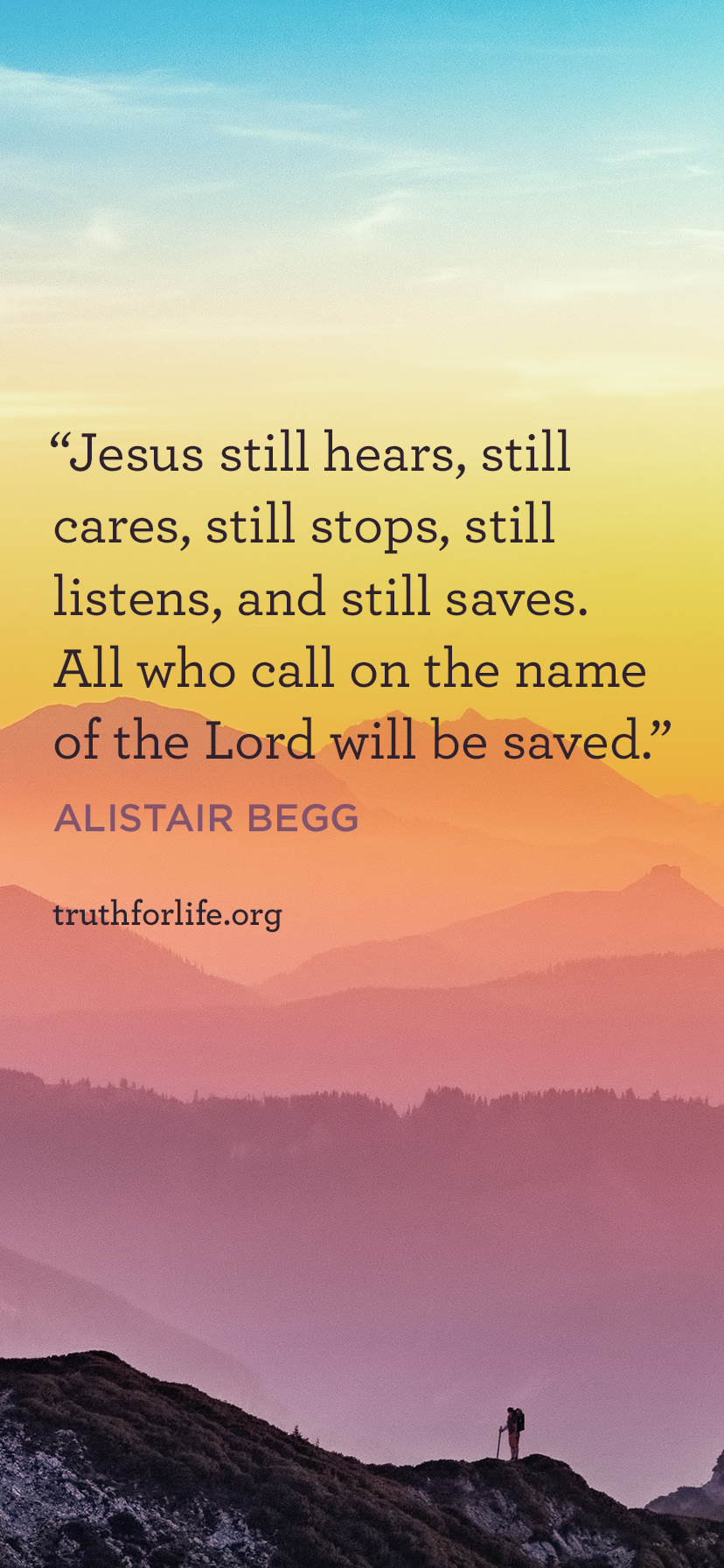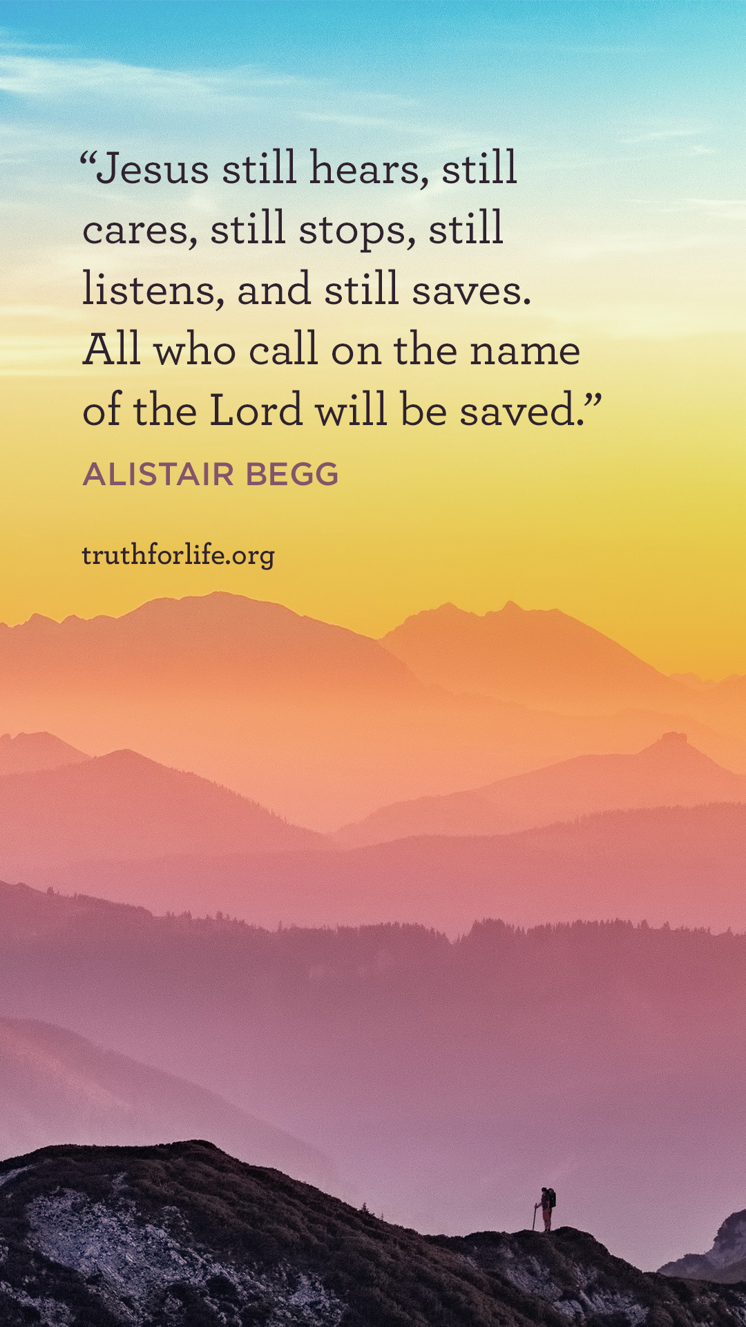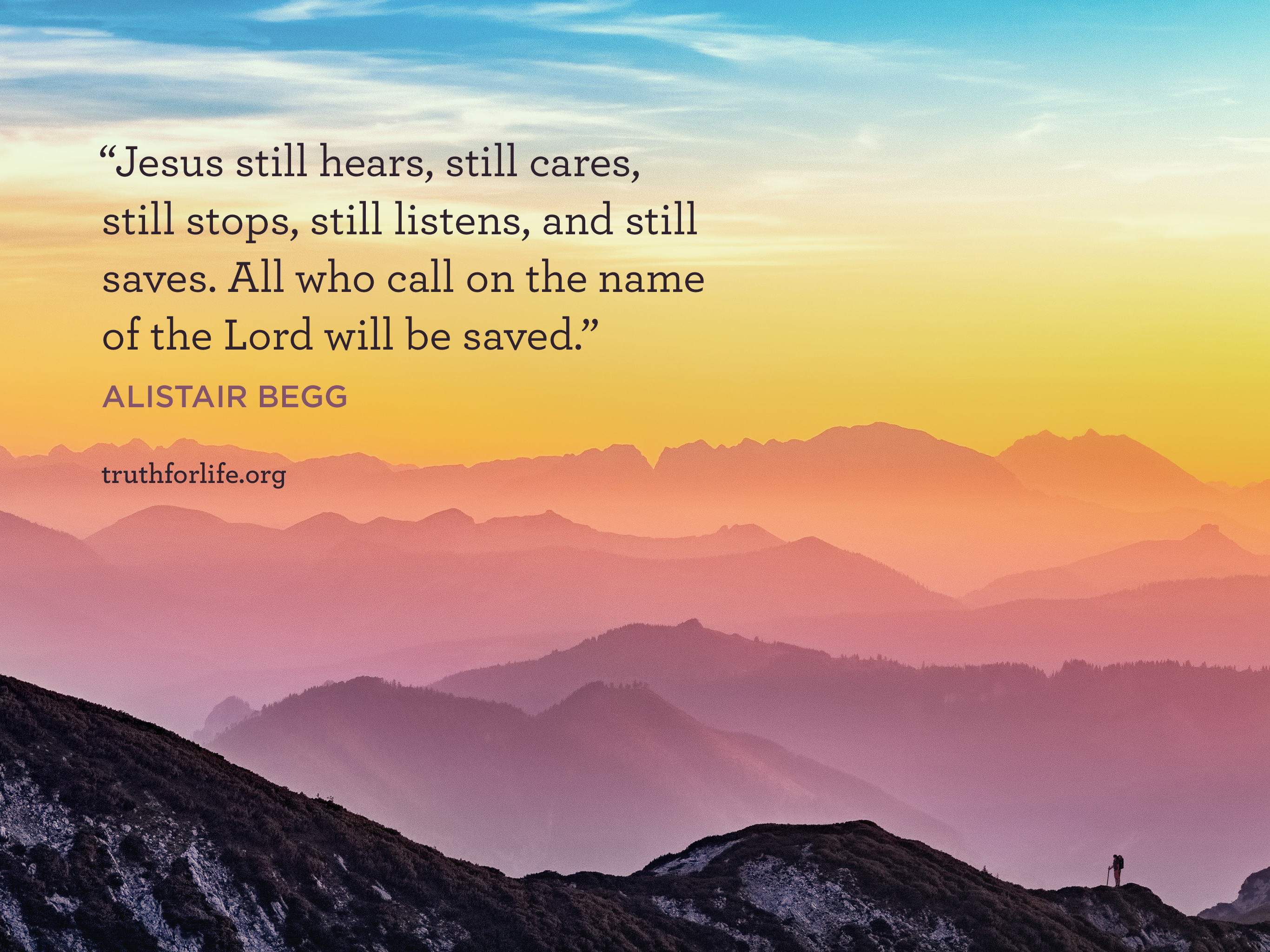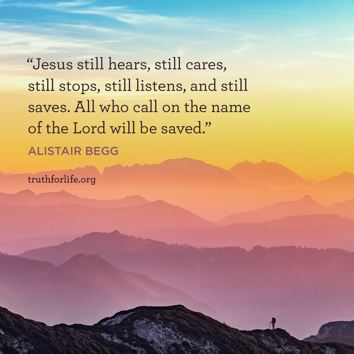 “Jesus still hears, still cares, still stops, still listens, and still saves. All who call on the name of the Lord will be saved.”