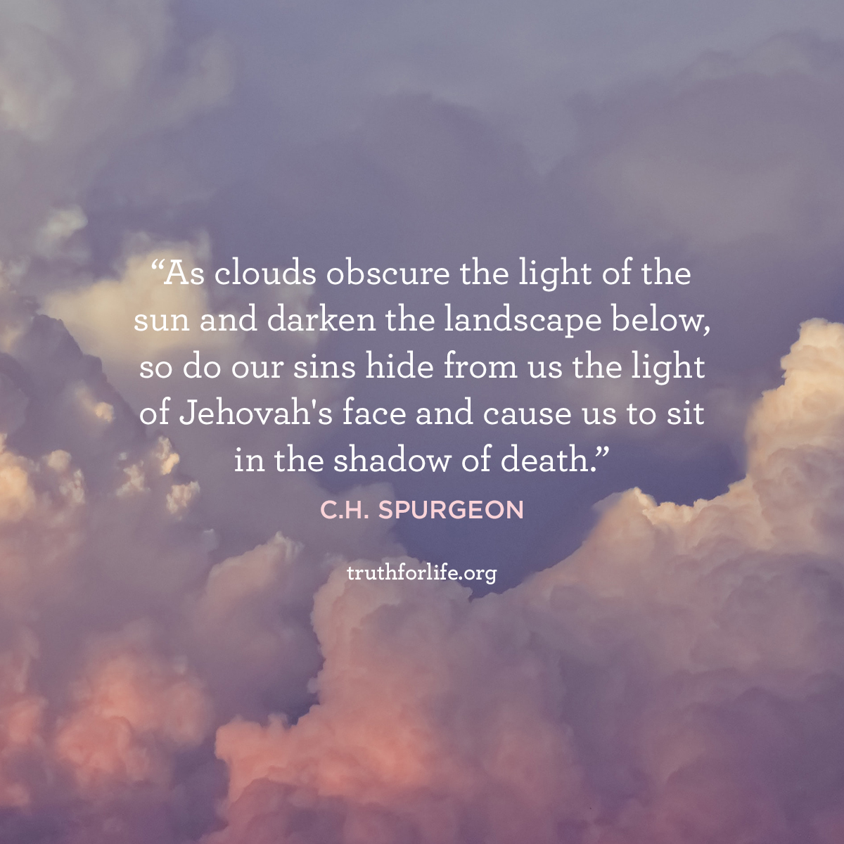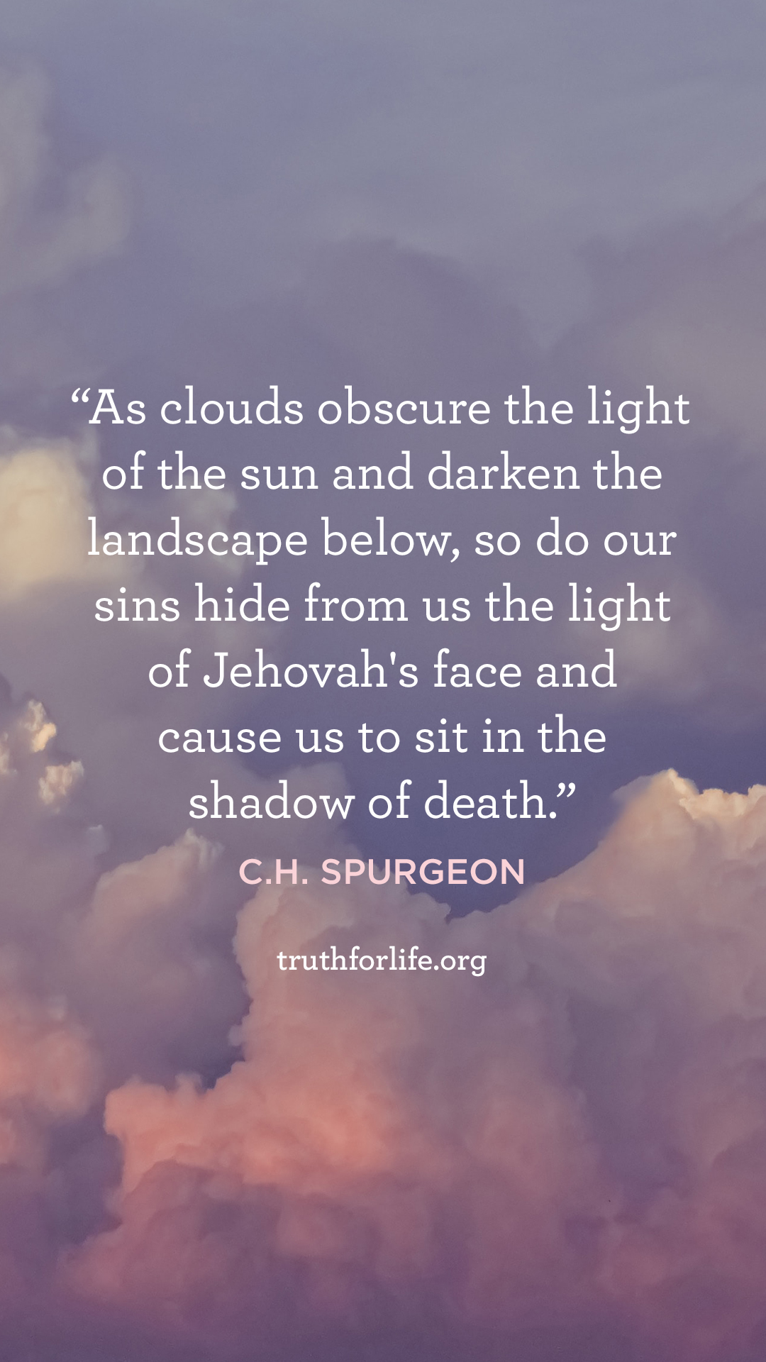 "As clouds obscure the light of the sun and darken the landscape below, so do our sins hide from us the light of Jehovah's face and cause us to sit in the shadow of death."