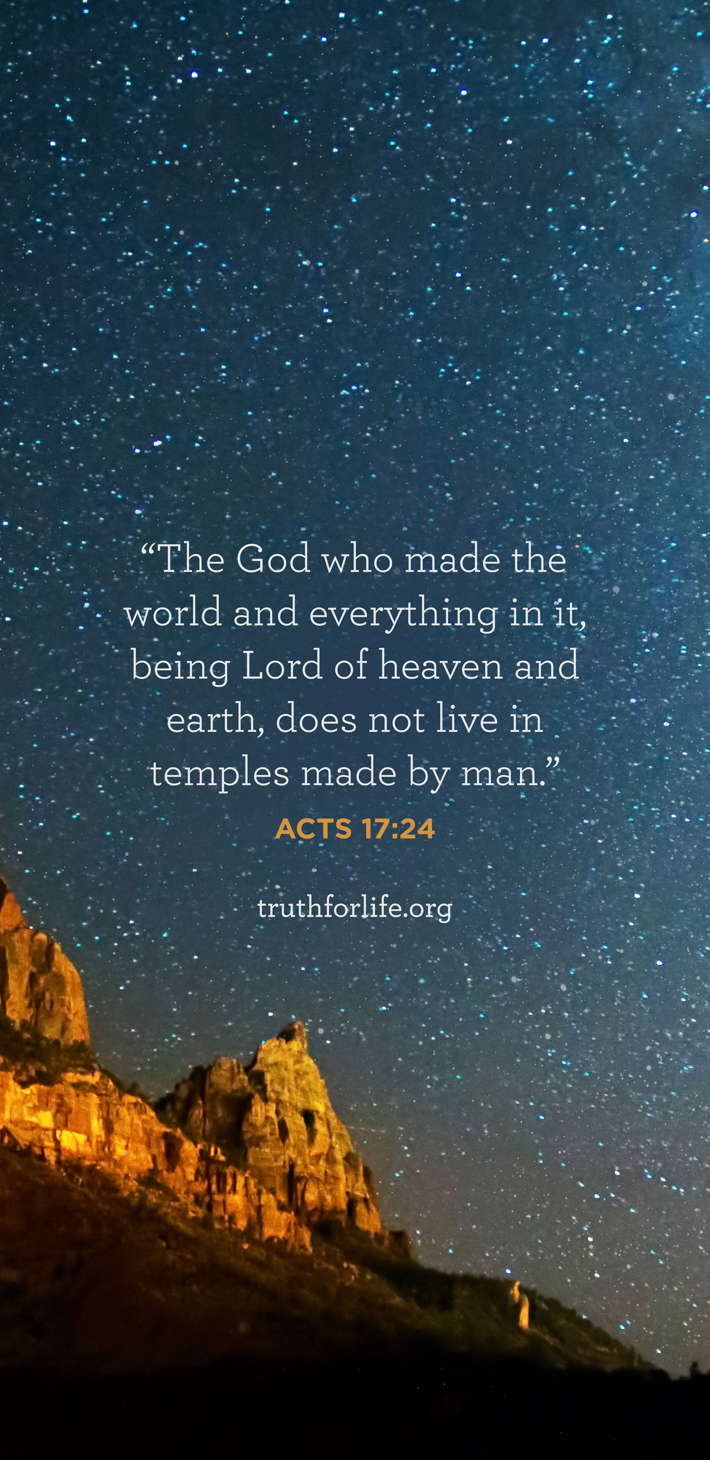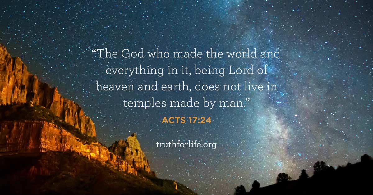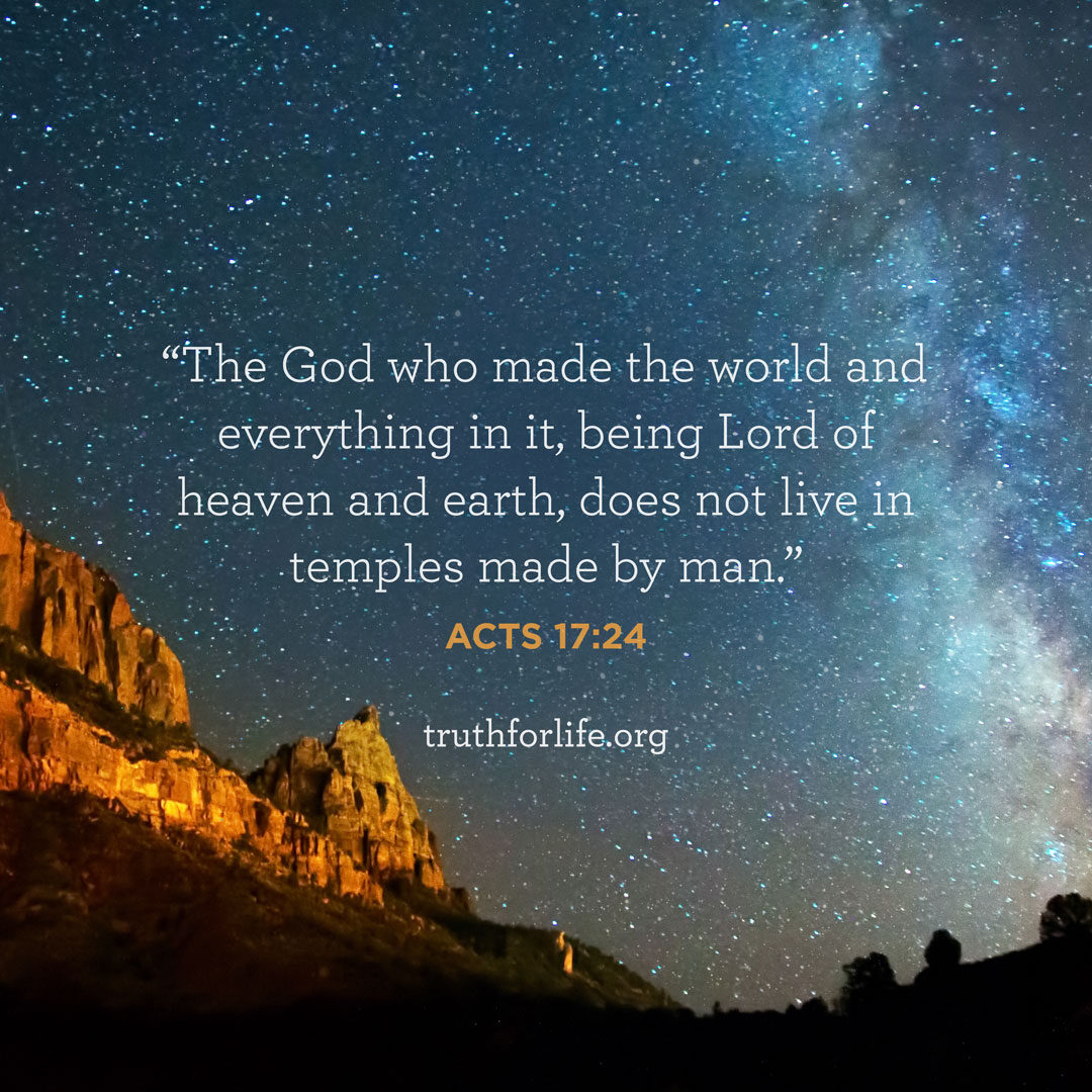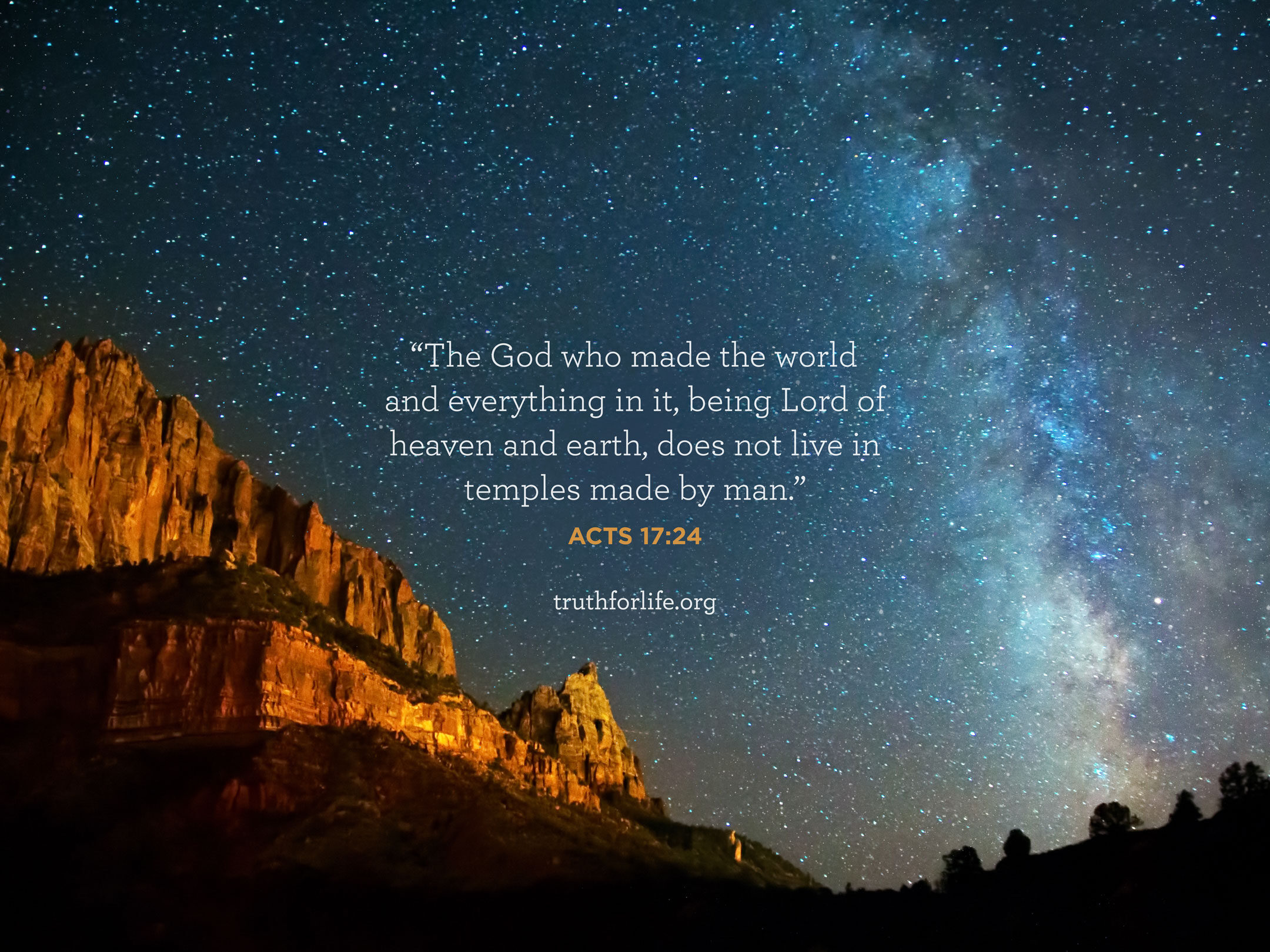 “The God who made the world and everything in it, being Lord of heaven and earth, does not live in temples made by man.”