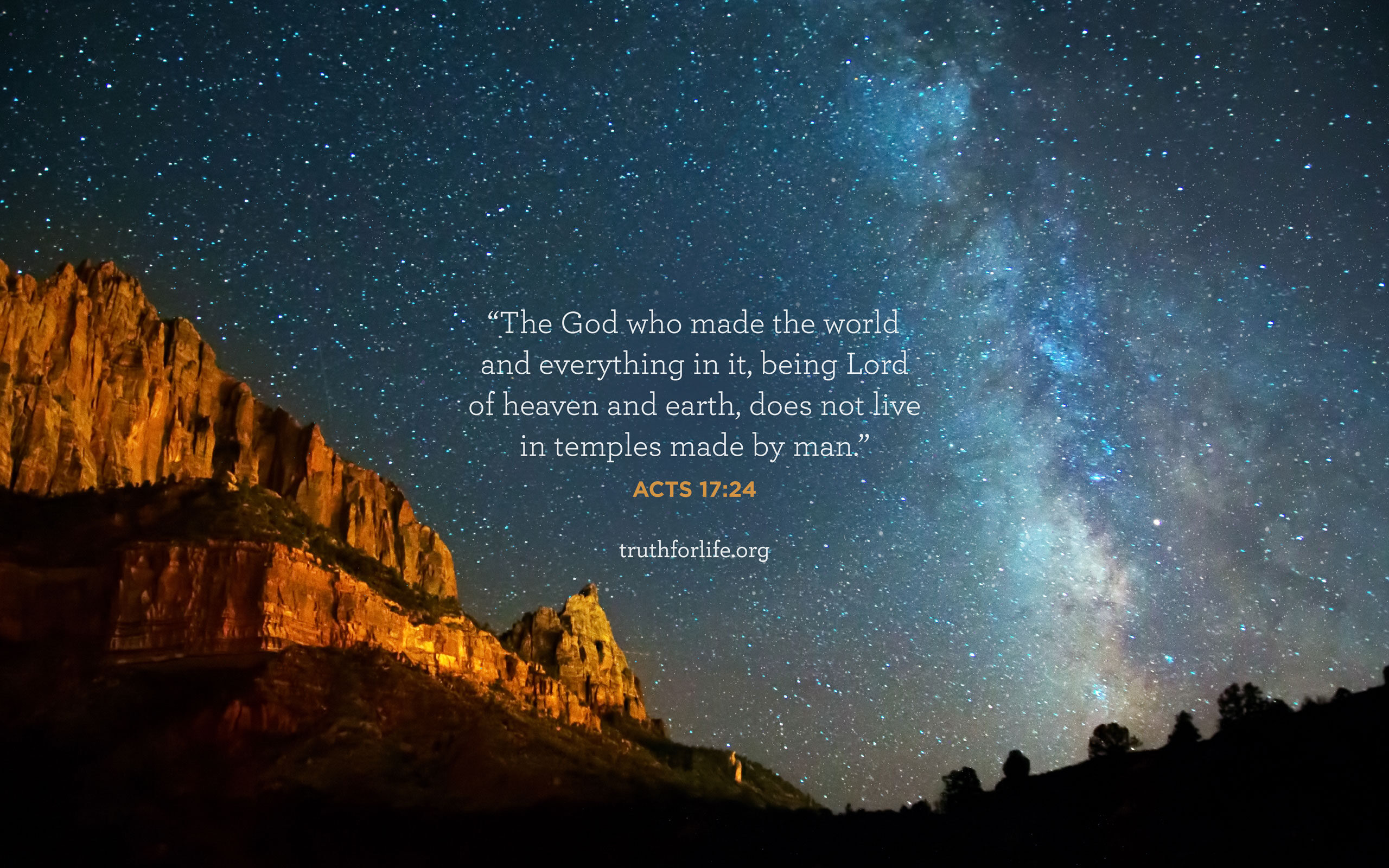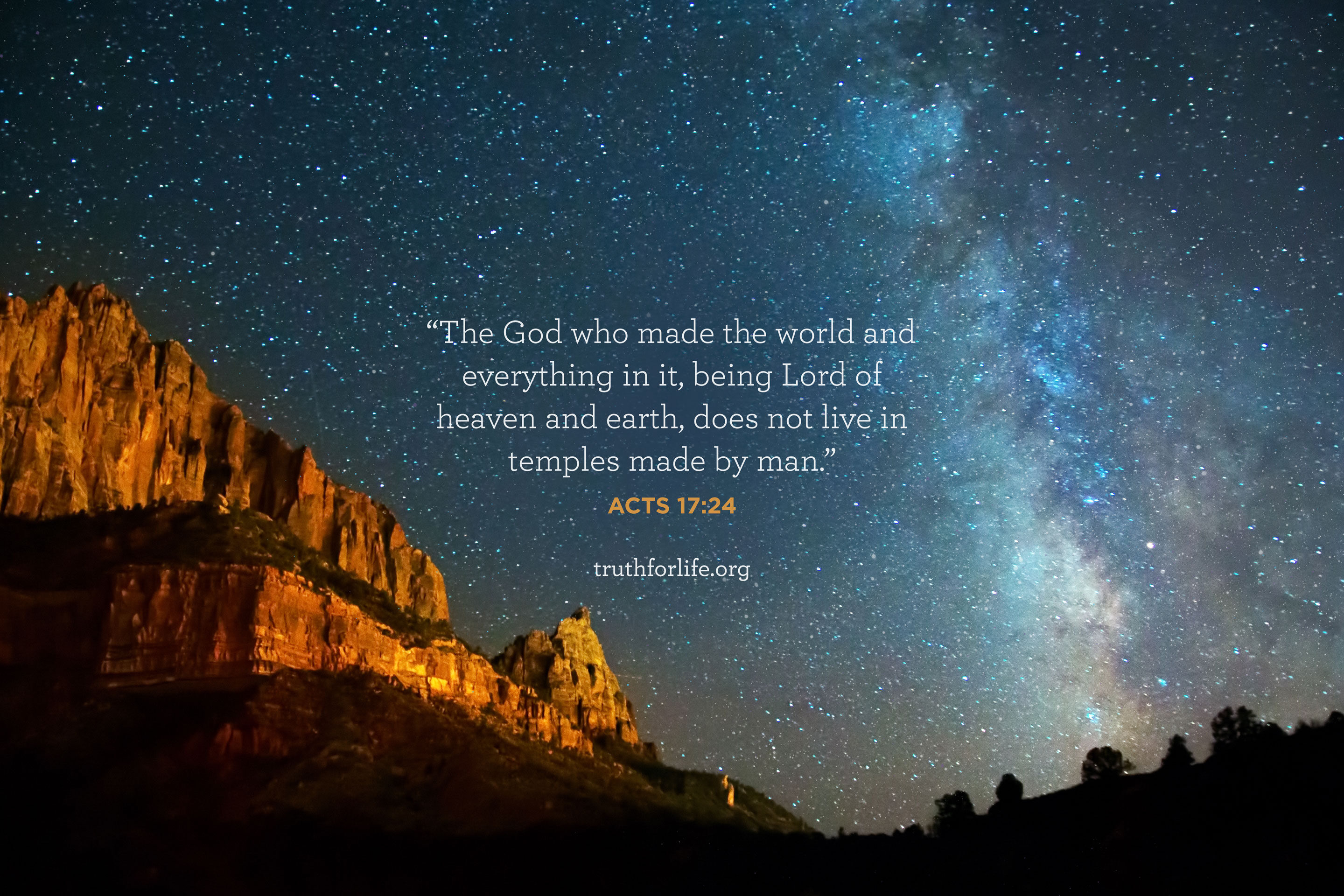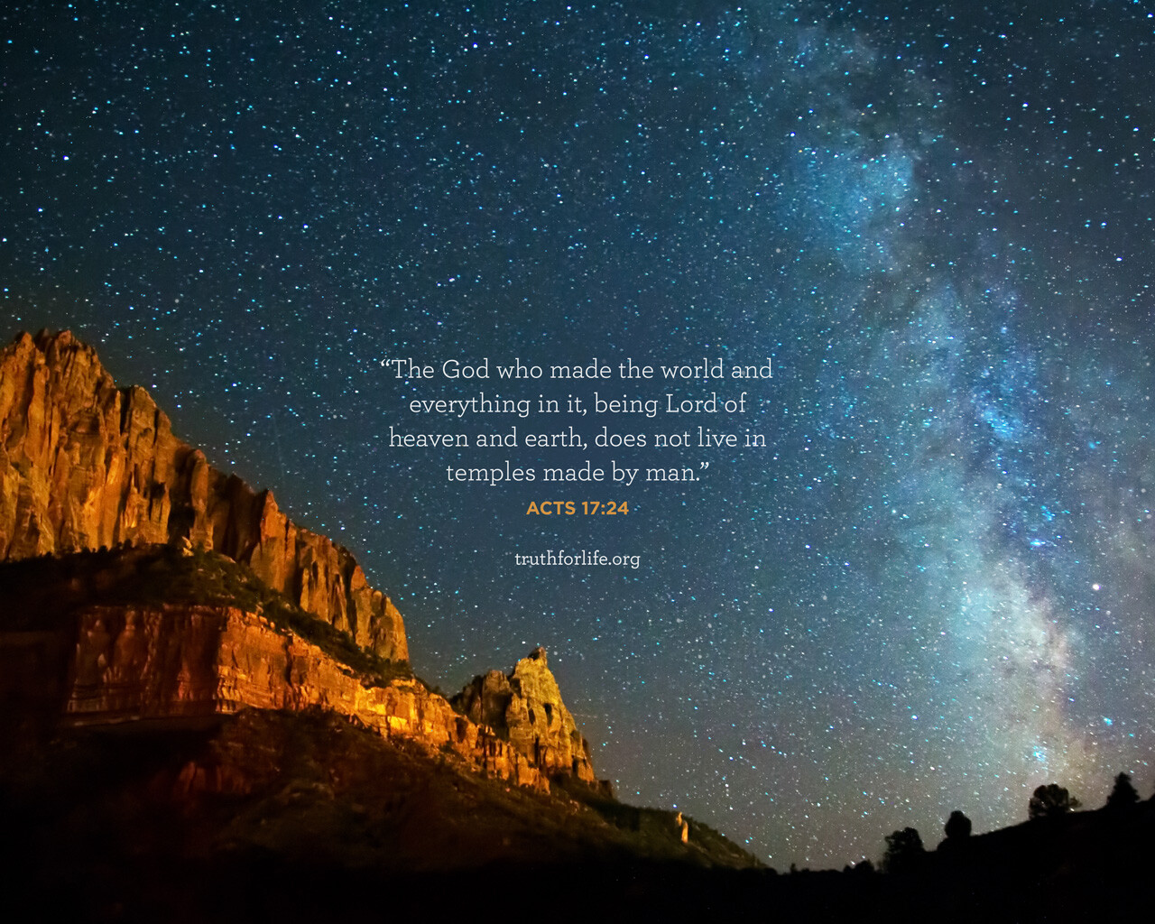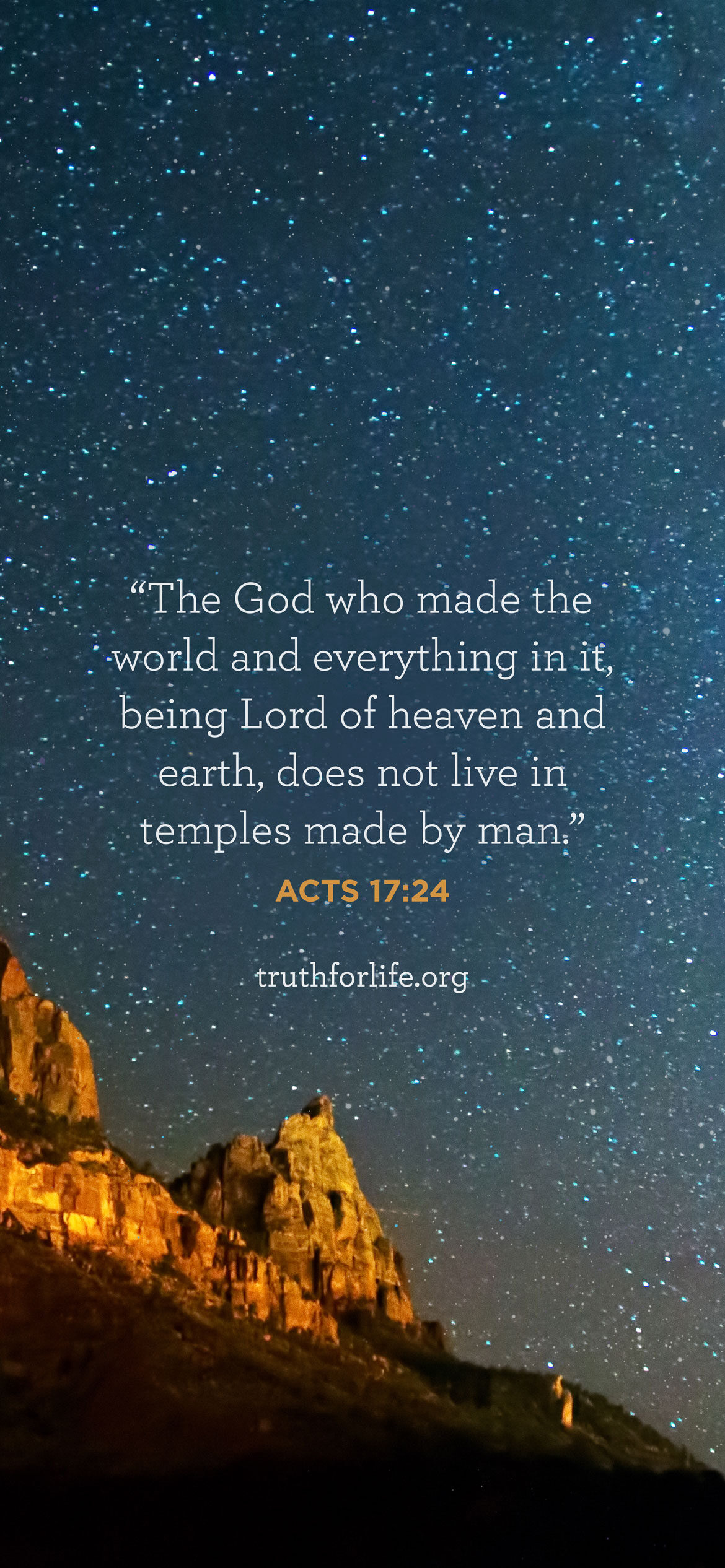 “The God who made the world and everything in it, being Lord of heaven and earth, does not live in temples made by man.”