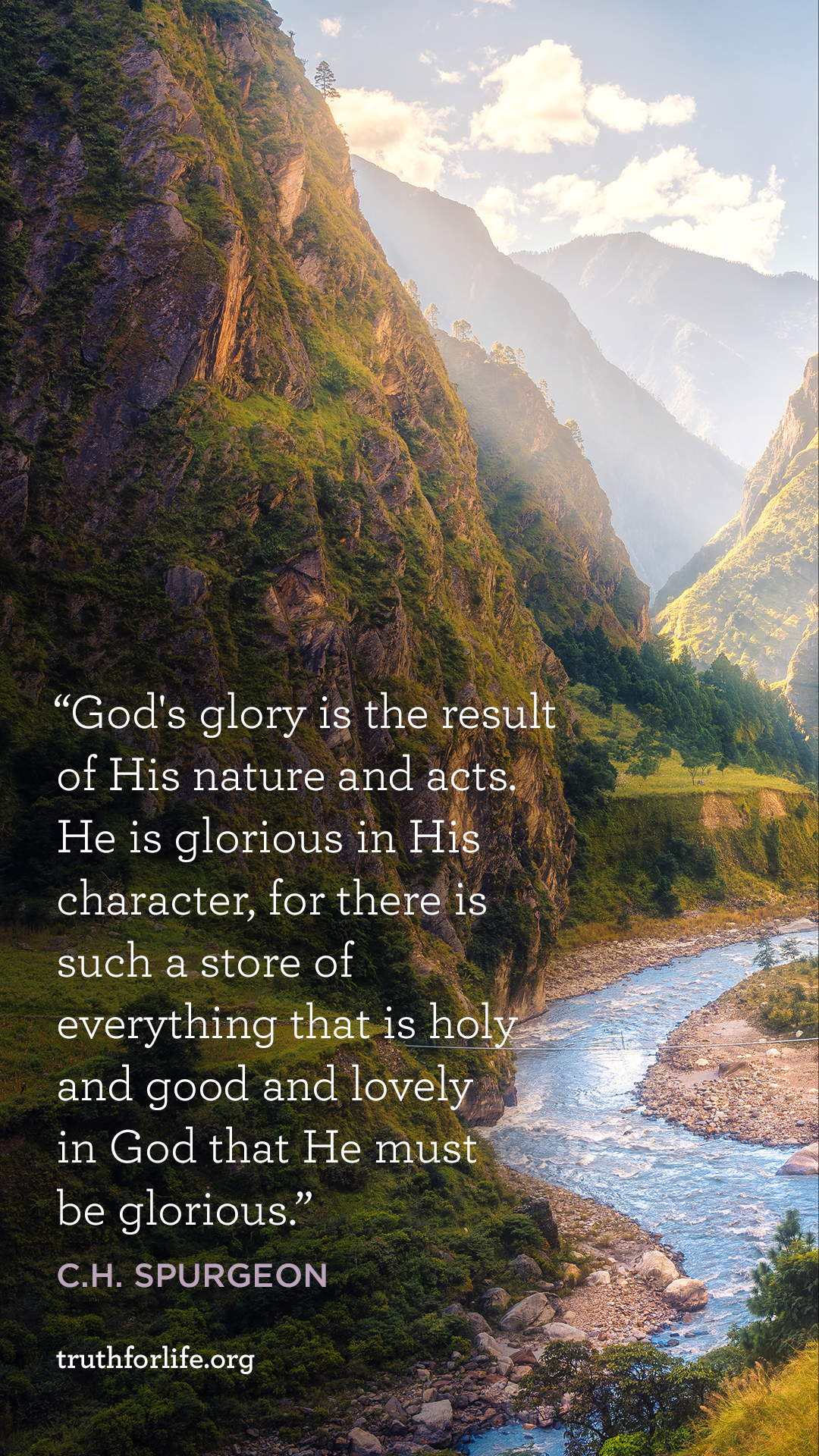 "God's glory is the result of His nature and acts. He is glorious in His character, for there is such a store of everything that is holy and good and lovely in God that He must be glorious."