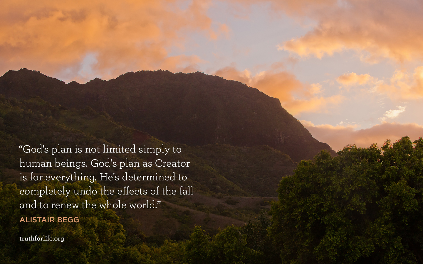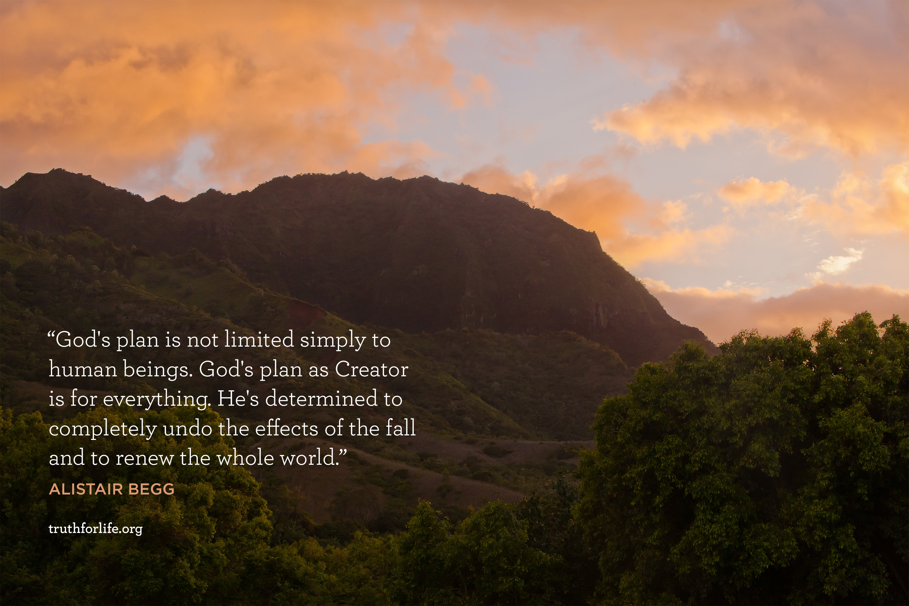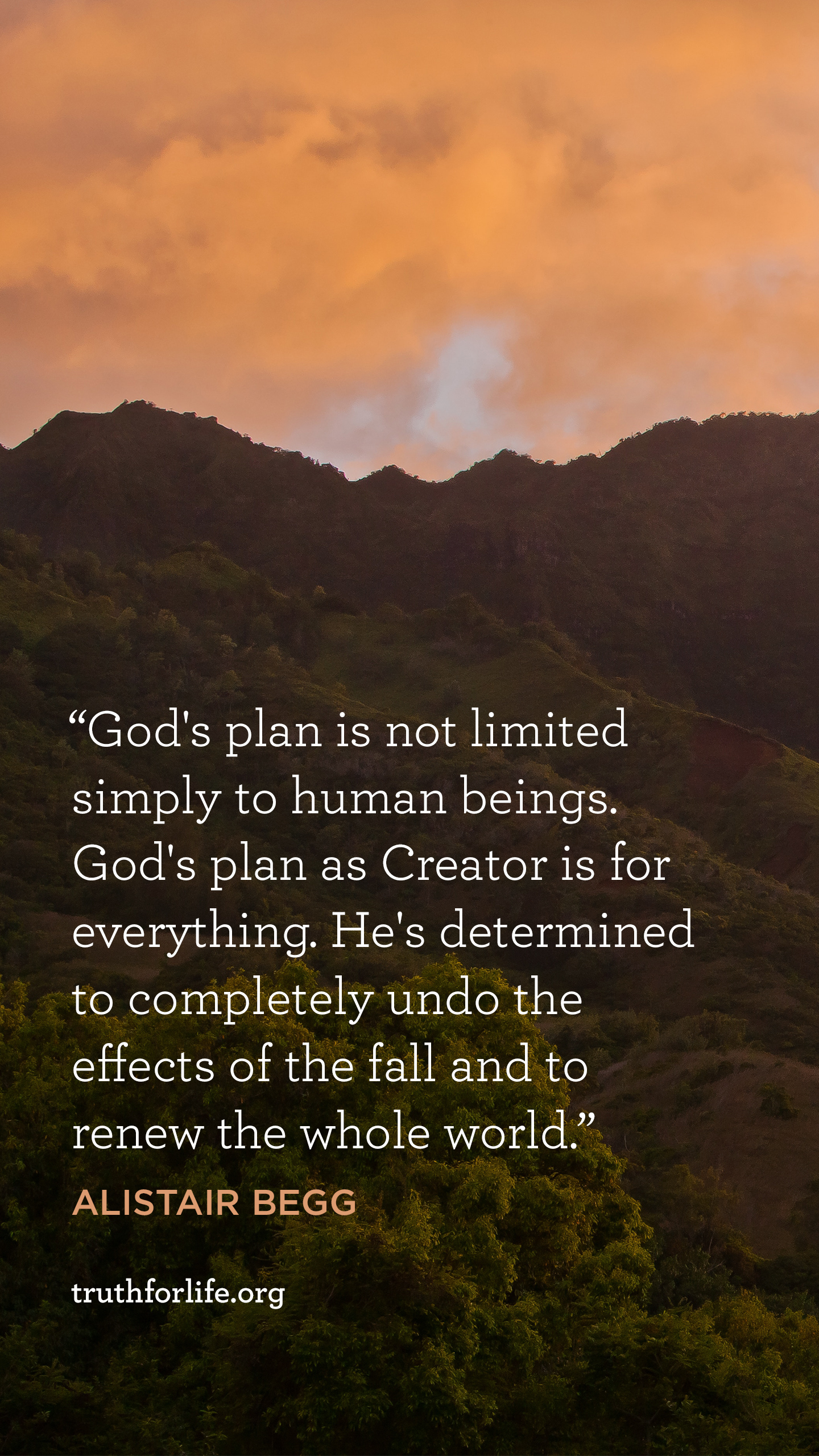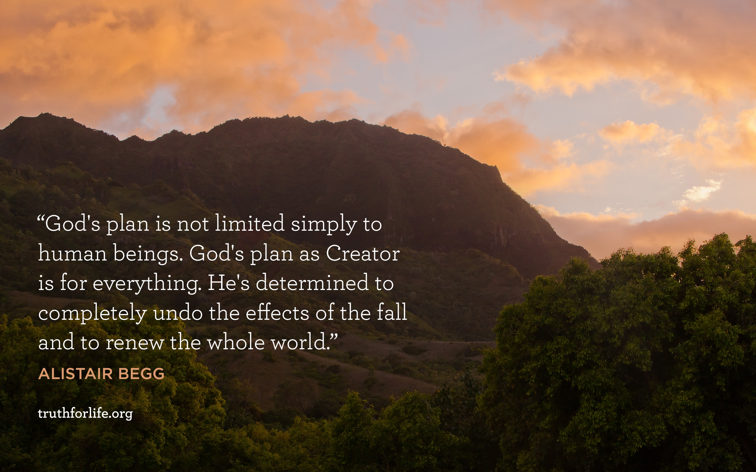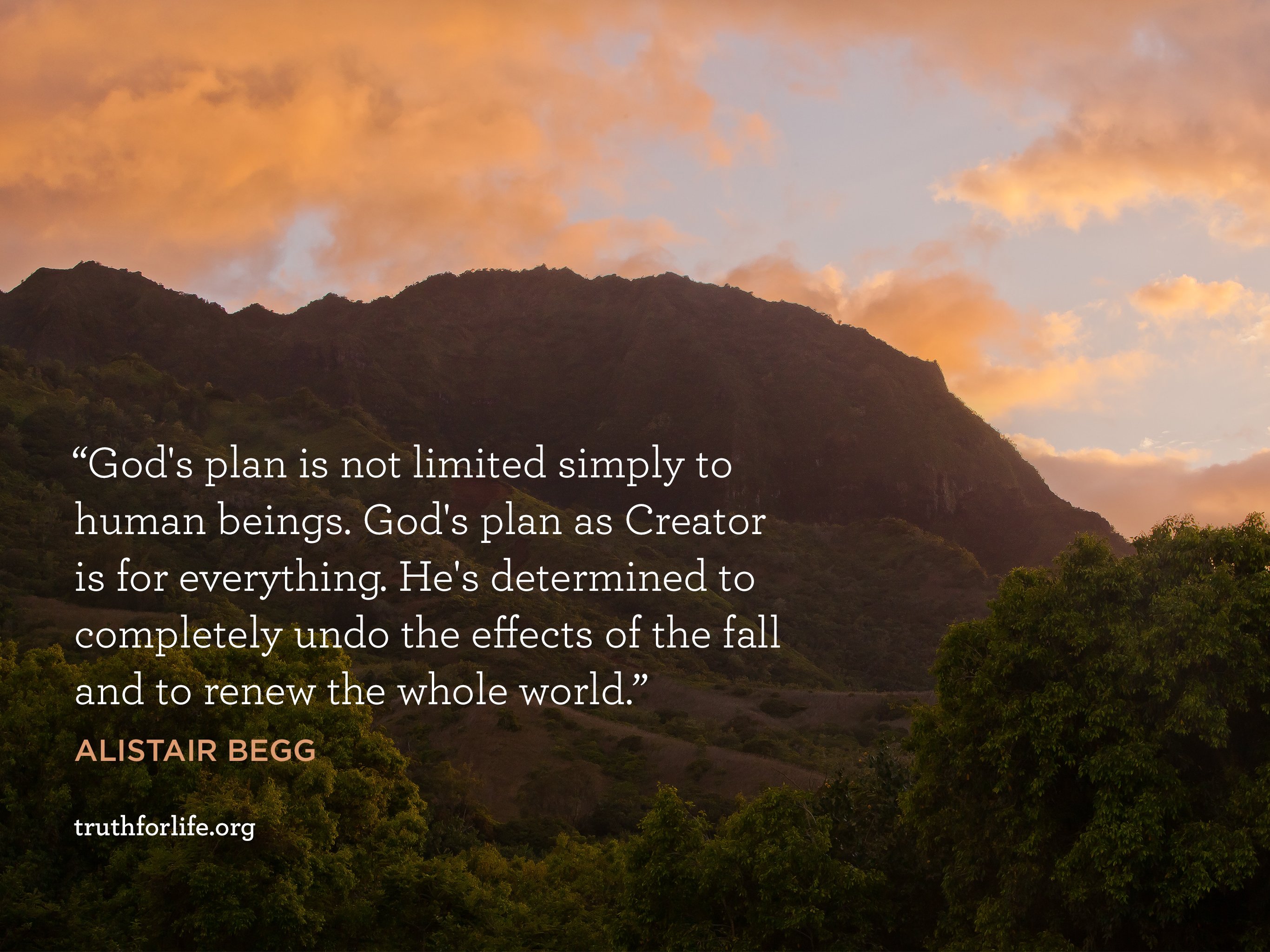 "God's plan is not limited simply to human beings. God's plan as Creator is for everything. He's determined to completely undo the effects of the fall and to renew the whole world."