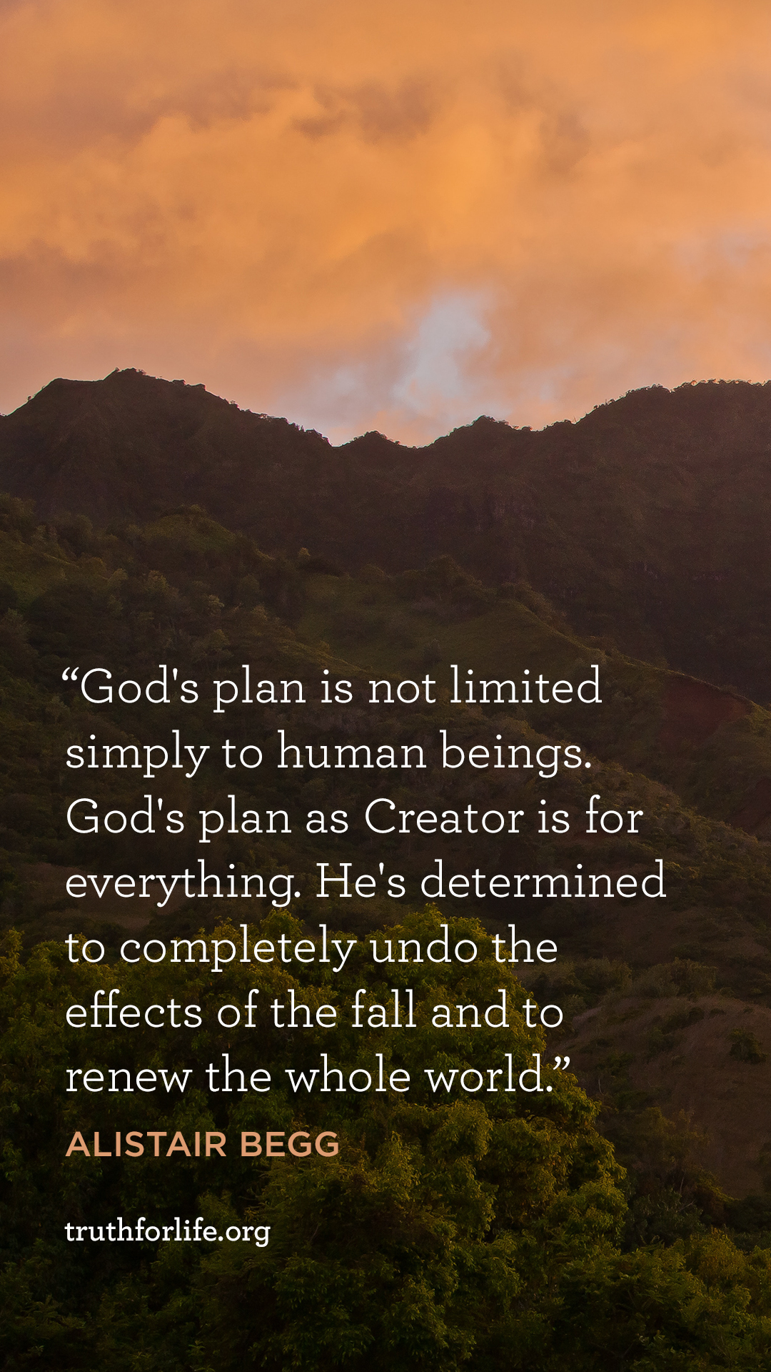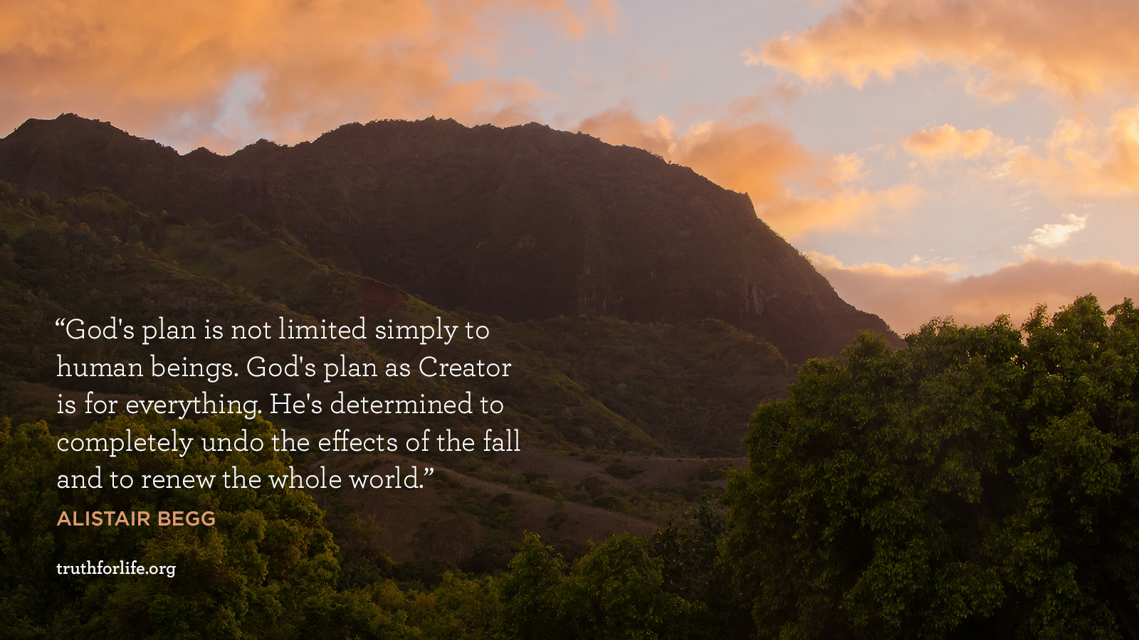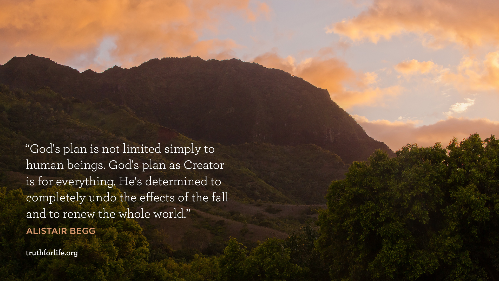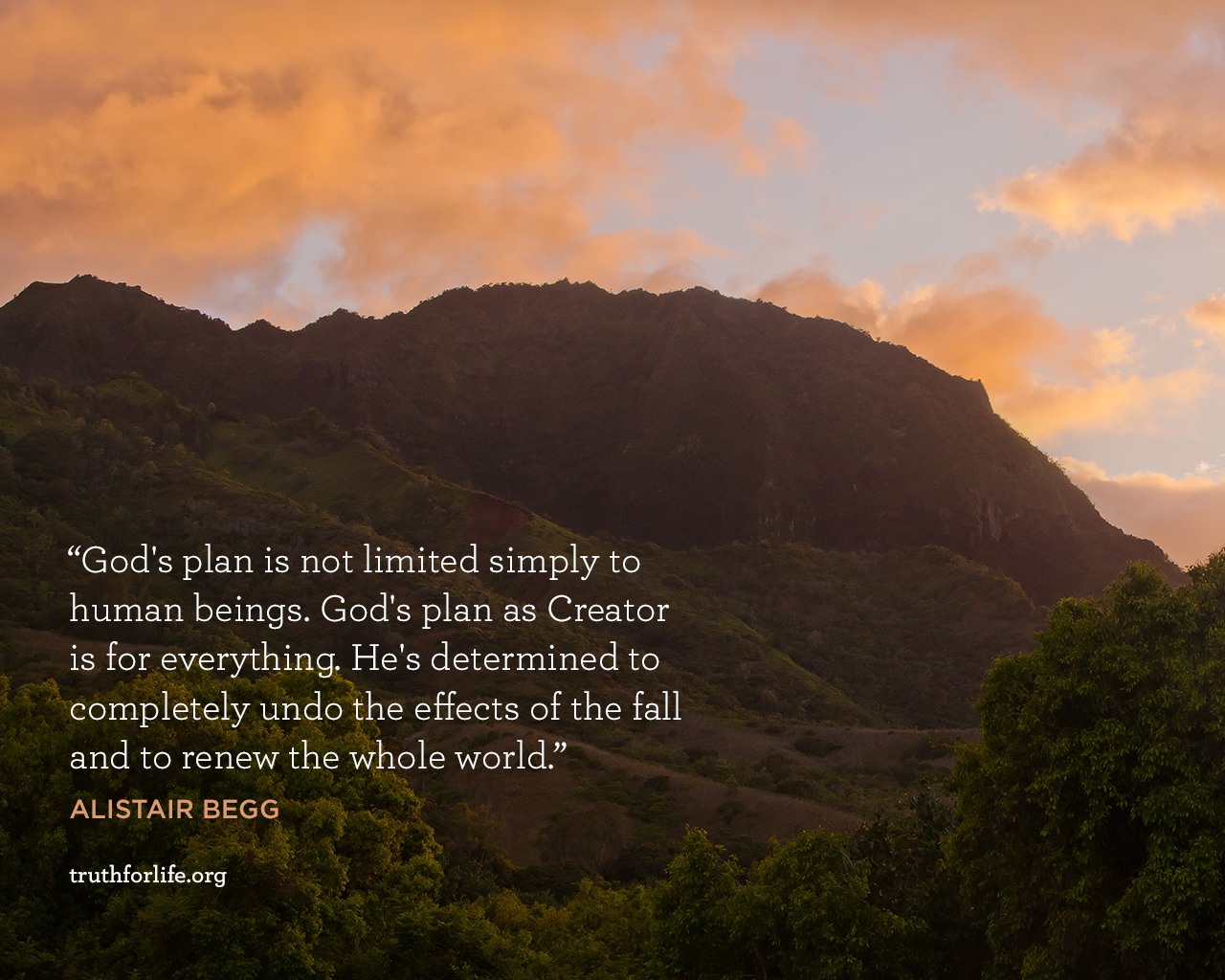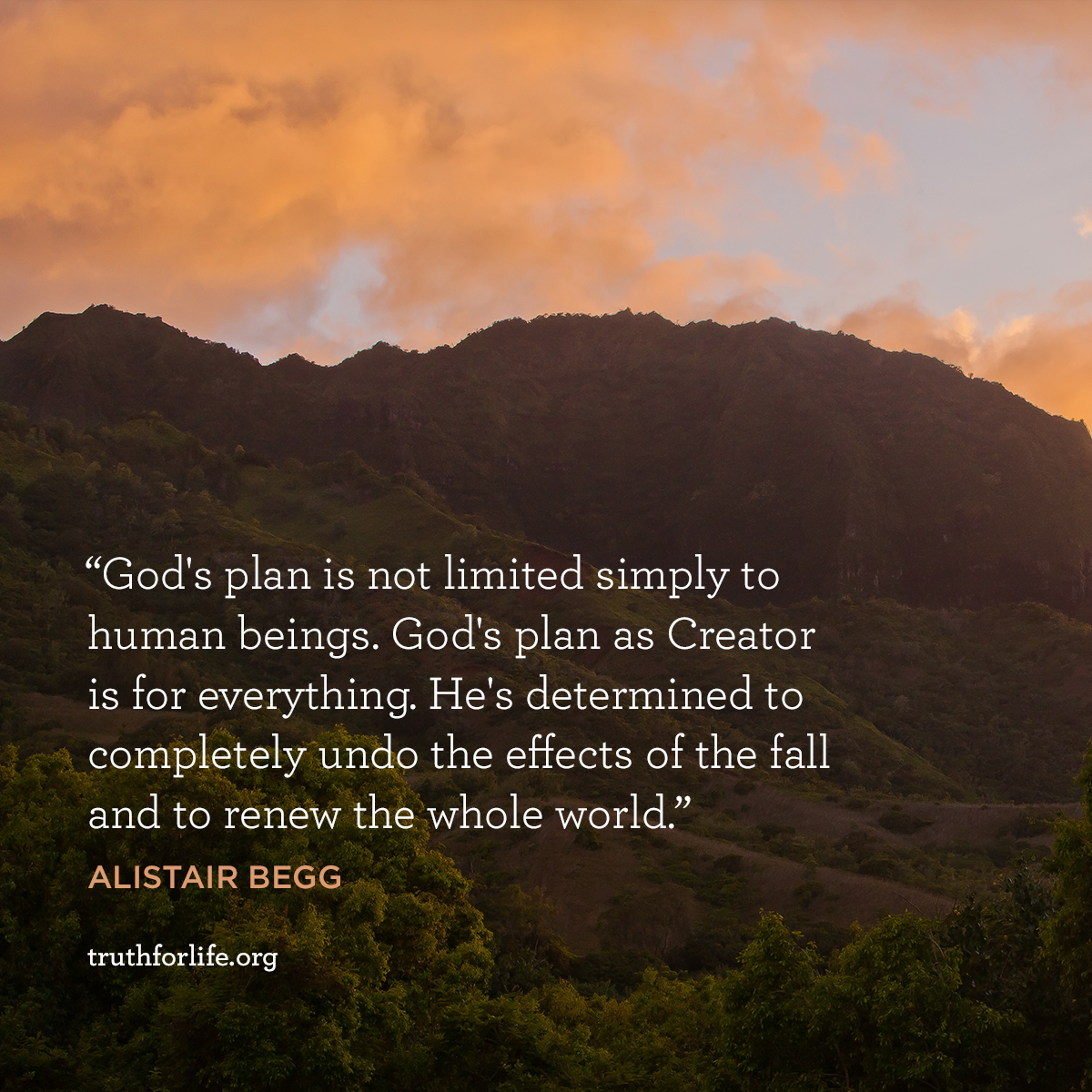 "God's plan is not limited simply to human beings. God's plan as Creator is for everything. He's determined to completely undo the effects of the fall and to renew the whole world."