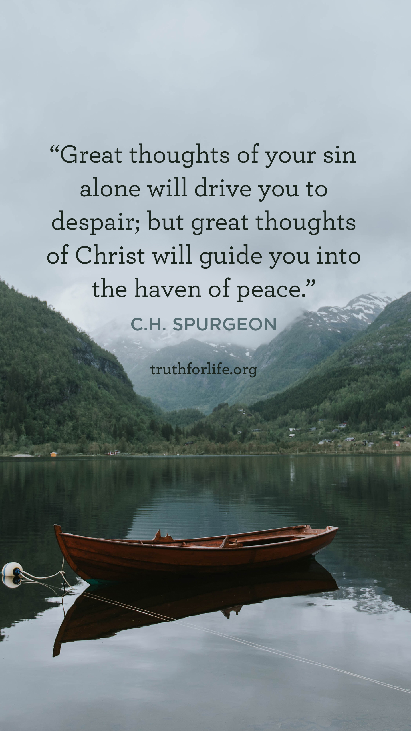 “Great thoughts of your sin alone will drive you to despair; but great thoughts of Christ will guide you into the haven of peace.”