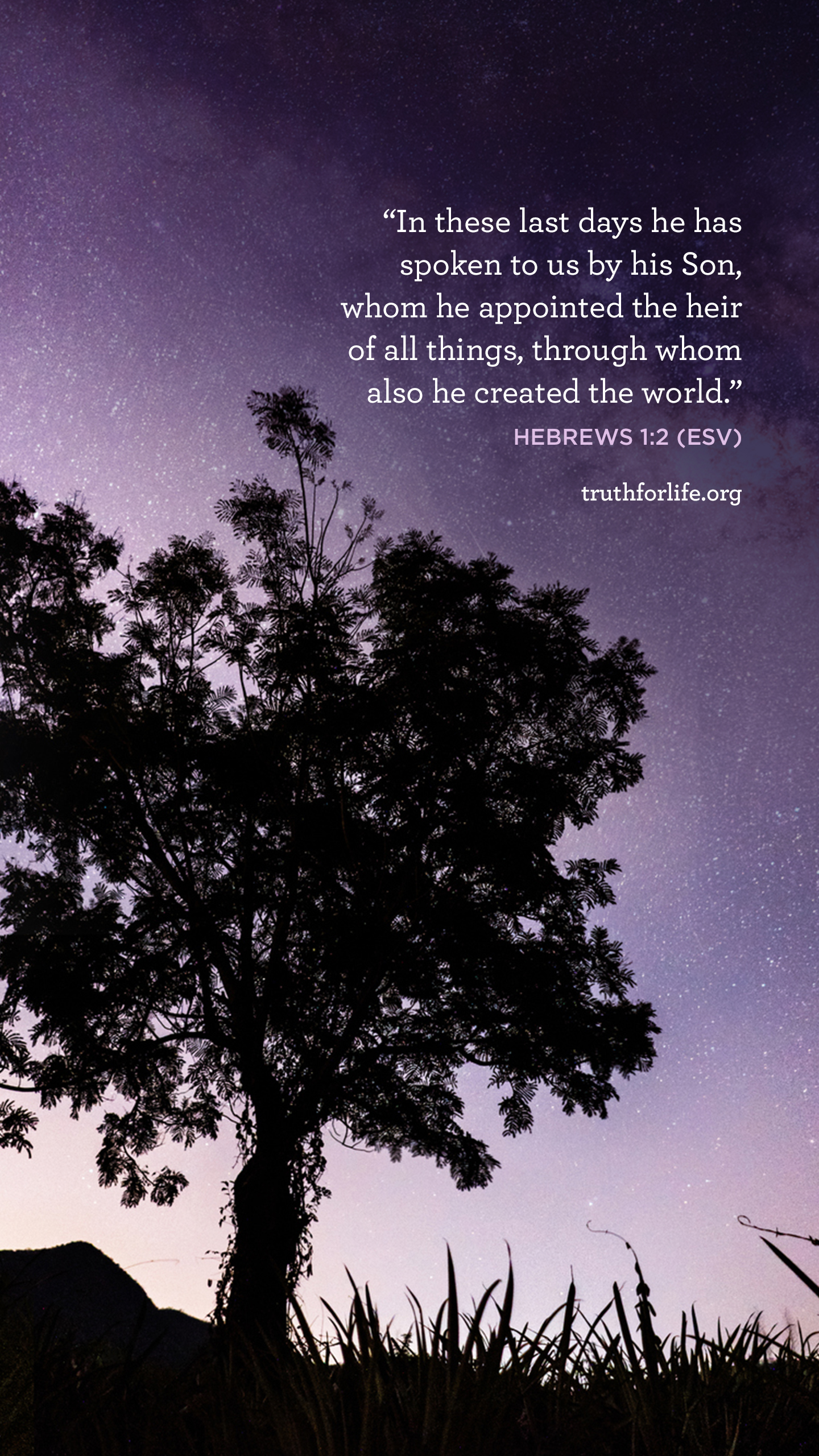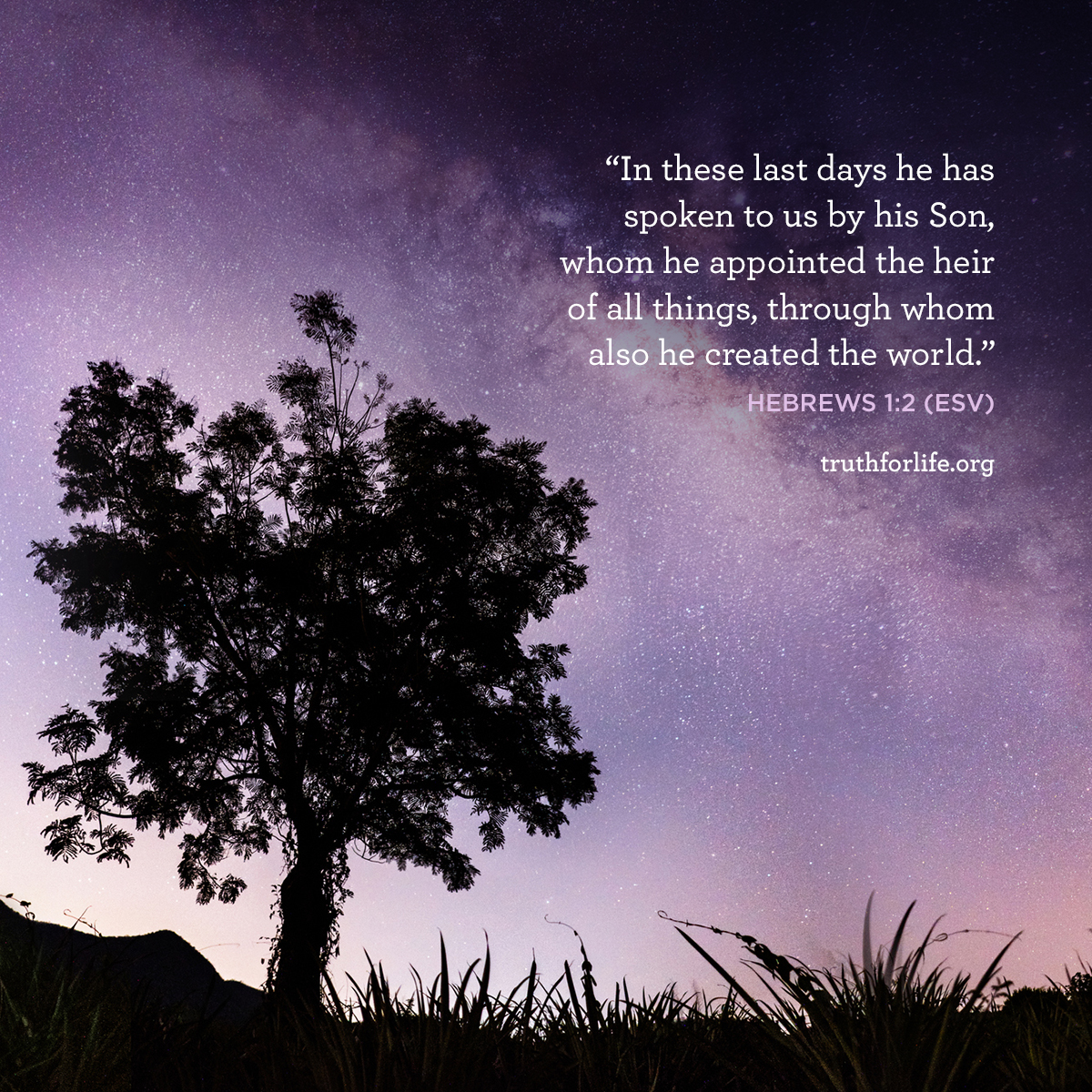 “In these last days he has spoken to us by his Son, whom he appointed the heir of all things, through whom also he created the world.”