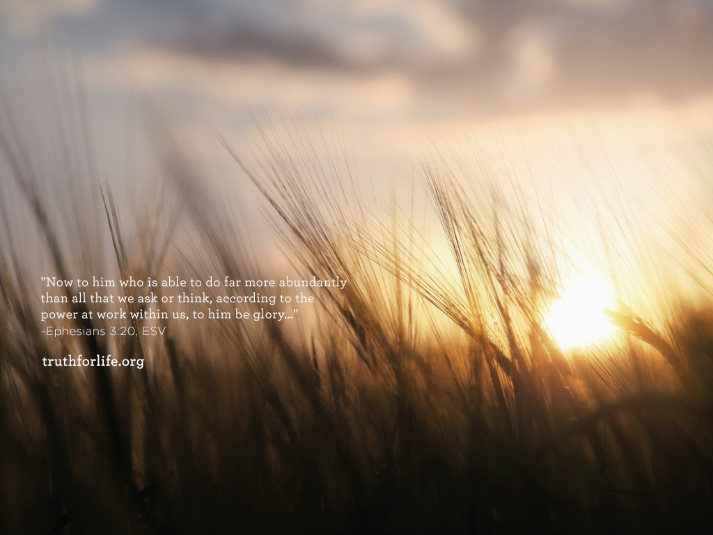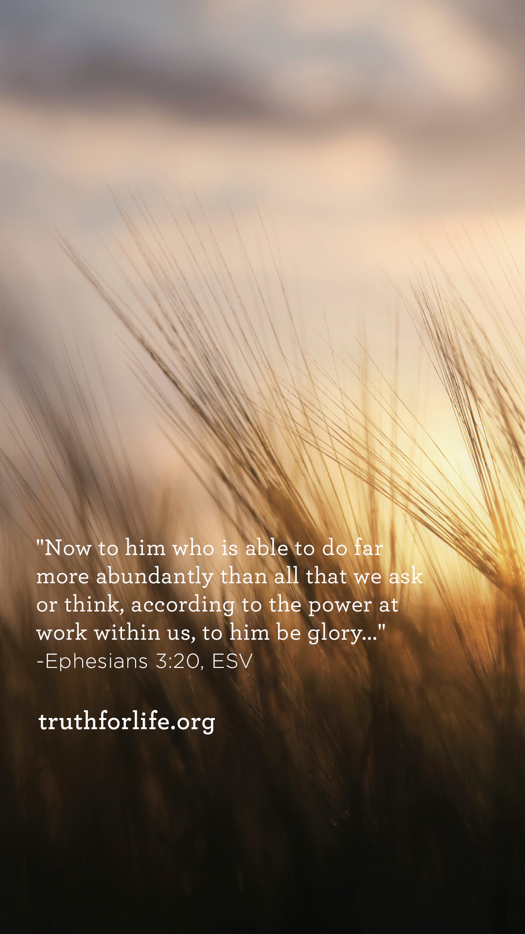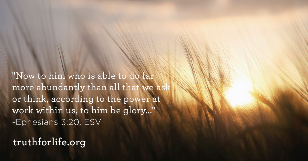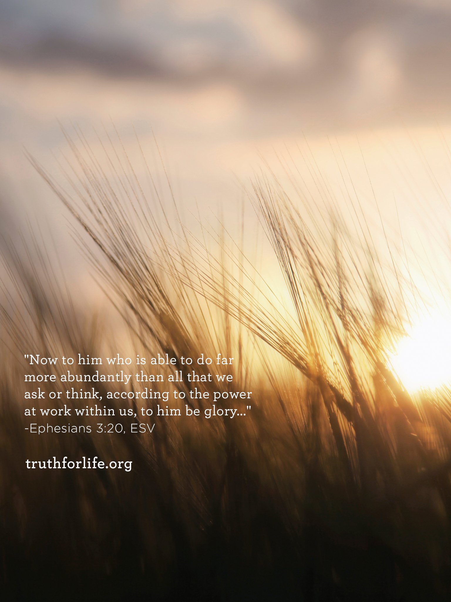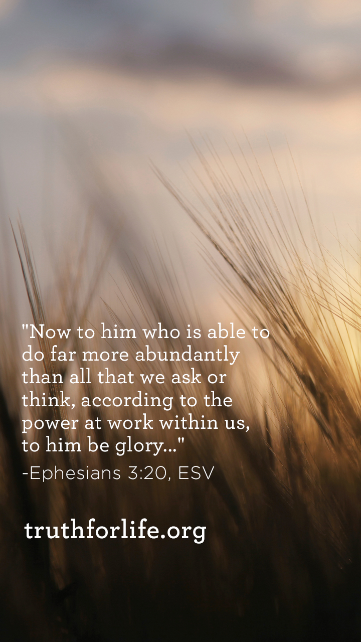 "Now to him who is able to do far more abundantly than all that we ask or think, according to the power at work within us, to him be glory..." -Ephesians 3:20, ESV
