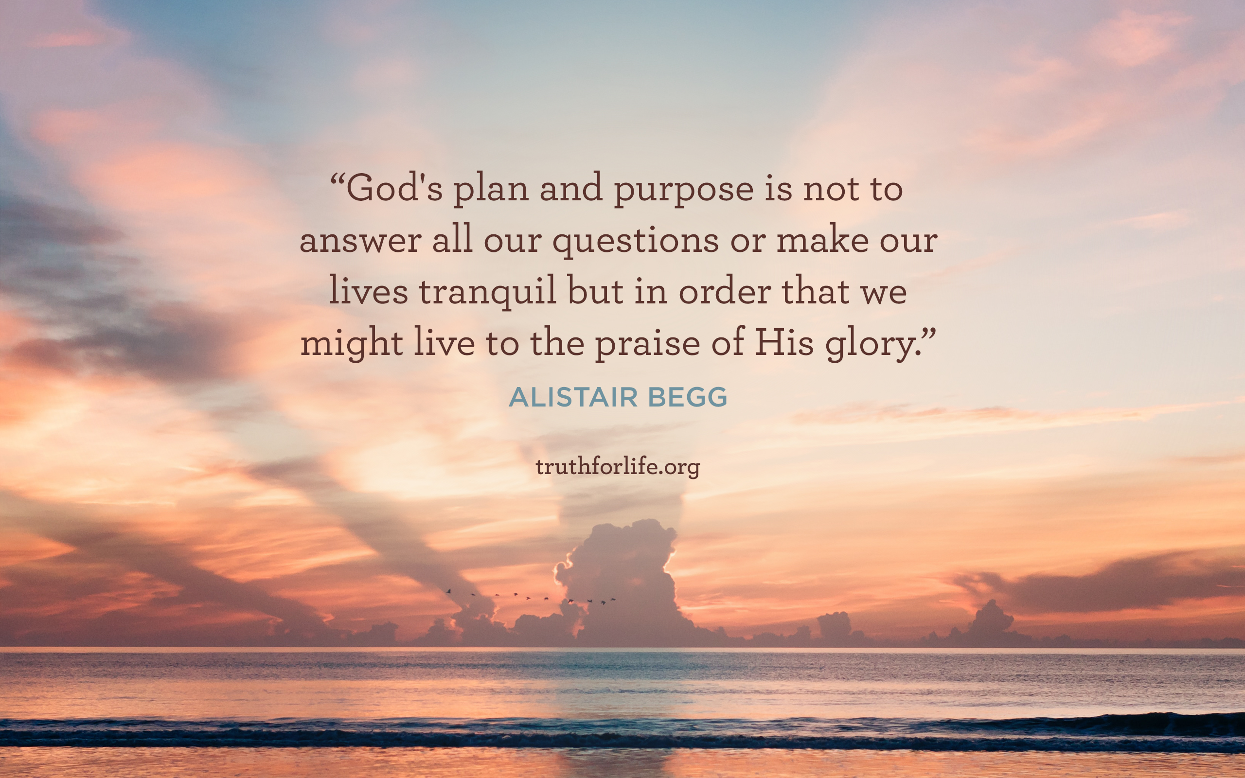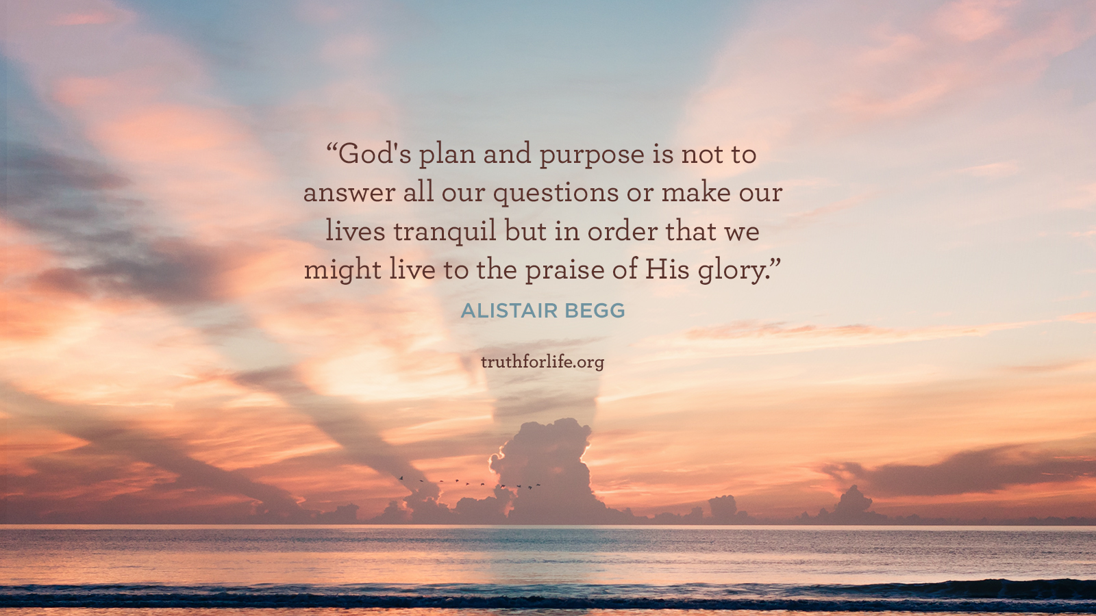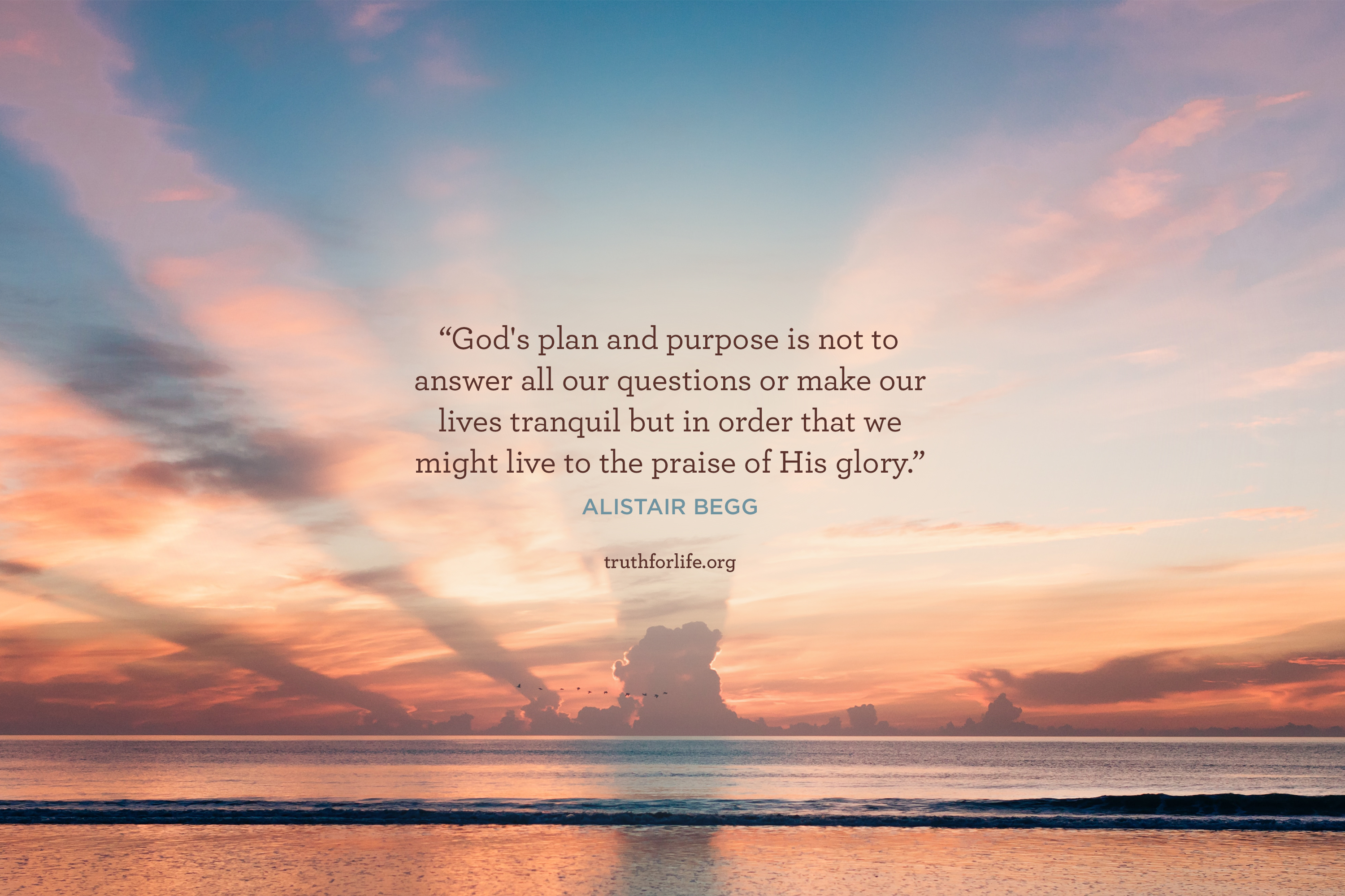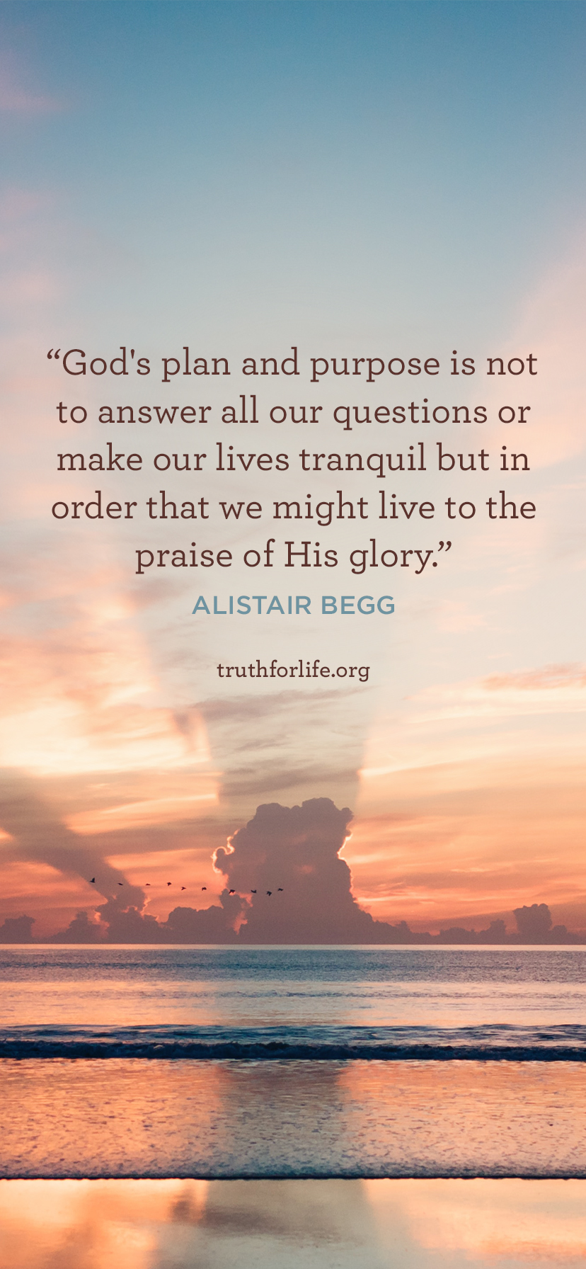 "God's plan and purpose is not to answer all our questions or make our lives tranquil but in order that we might live to the praise of His glory."