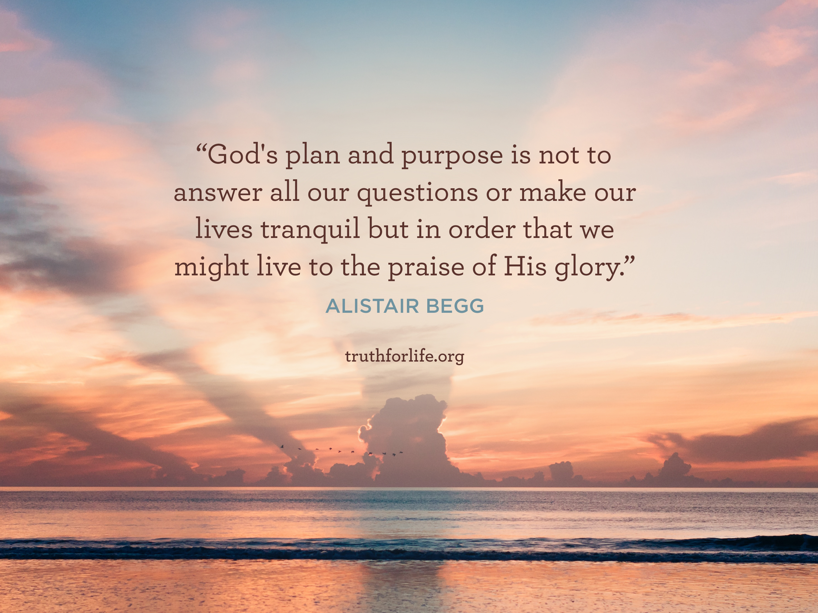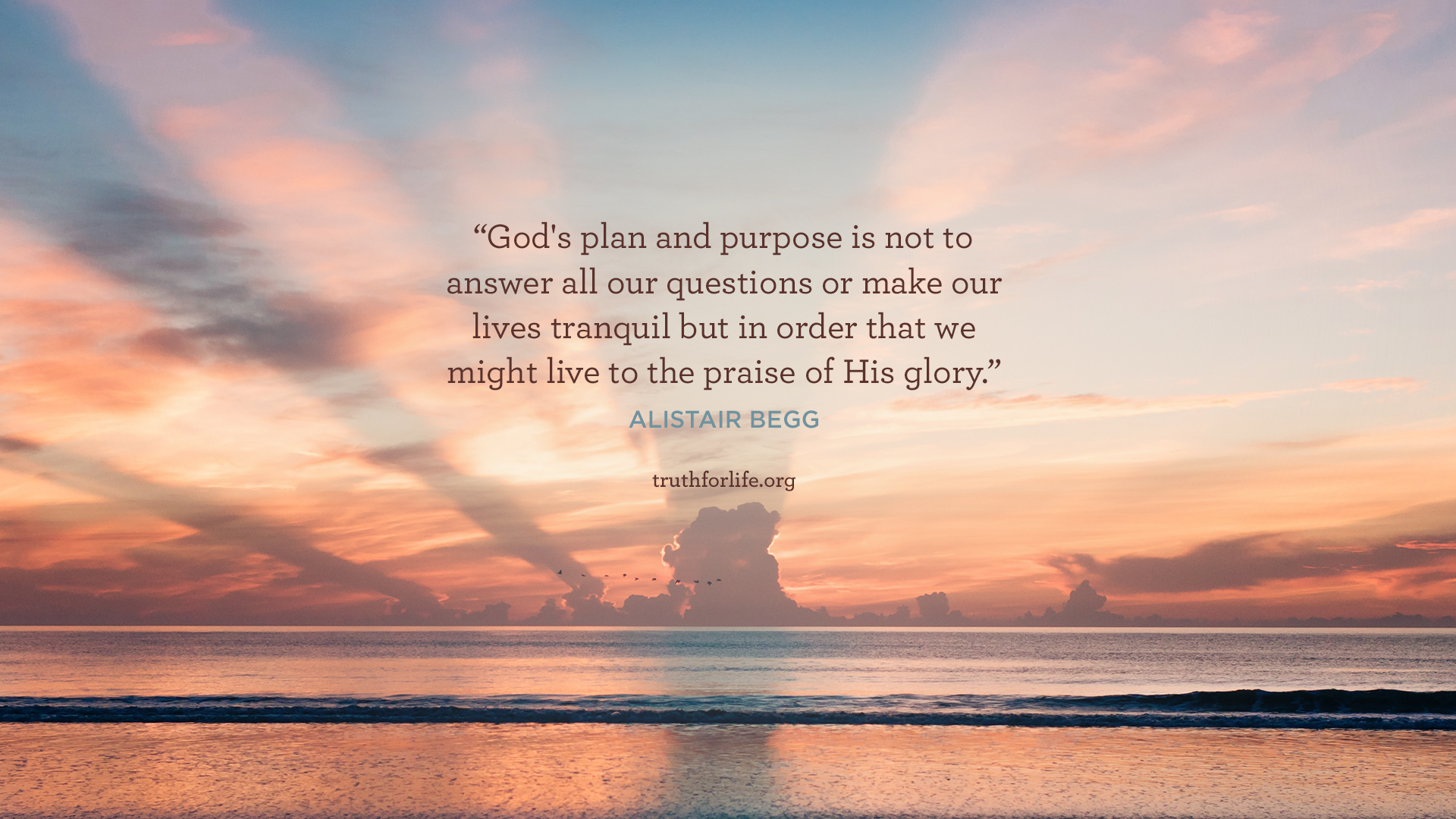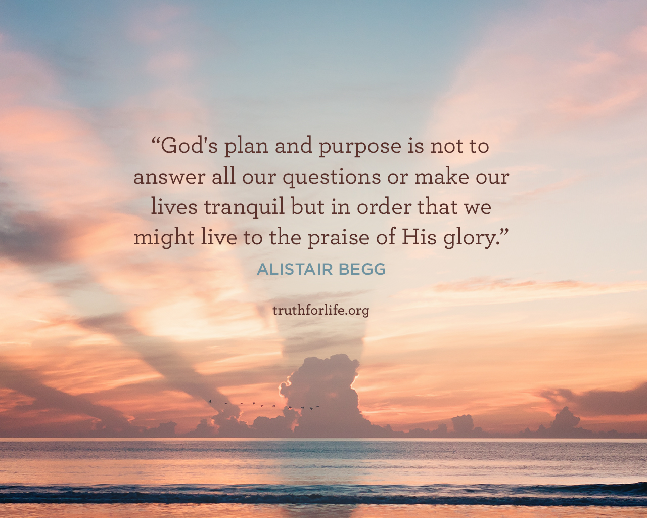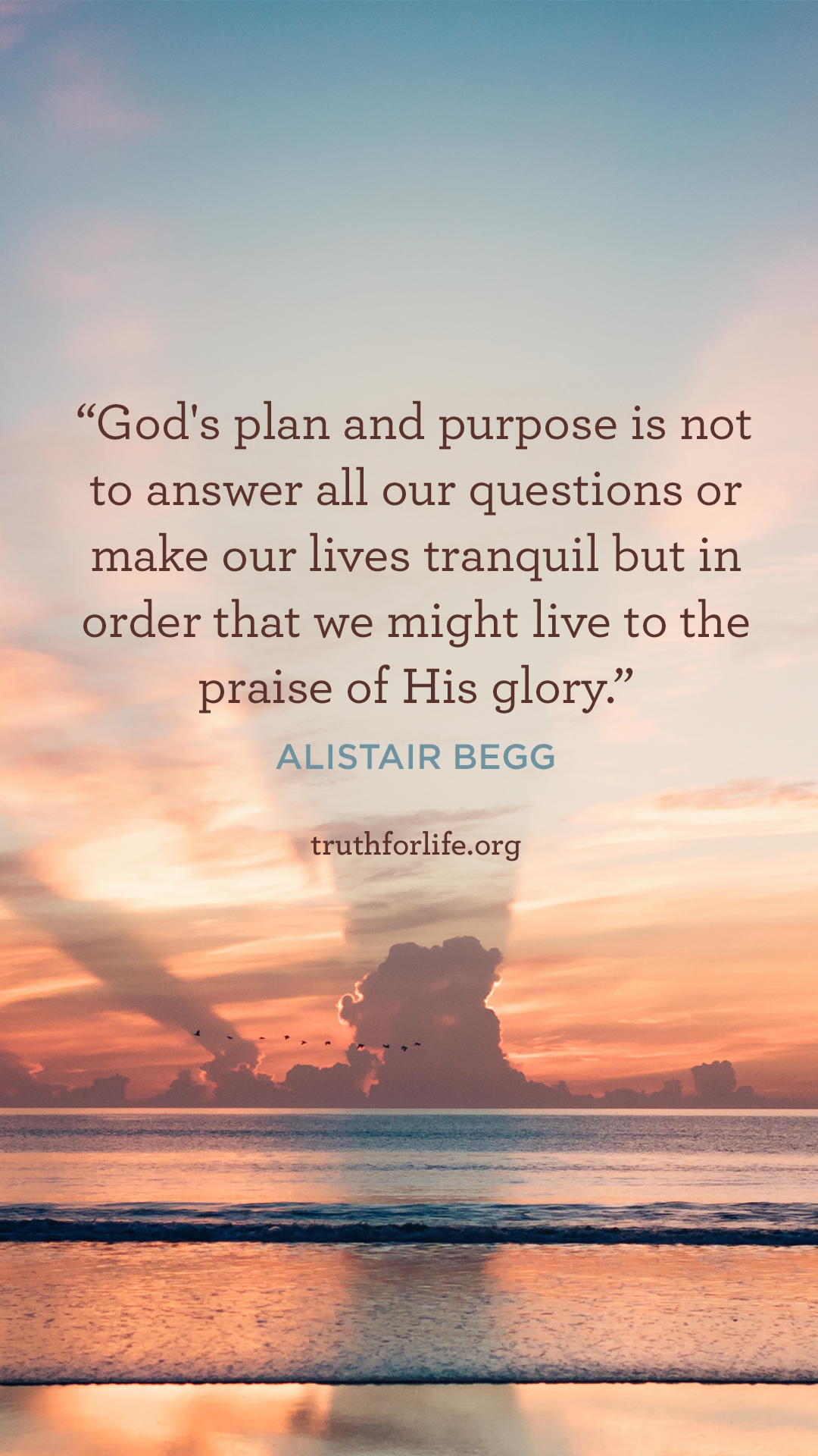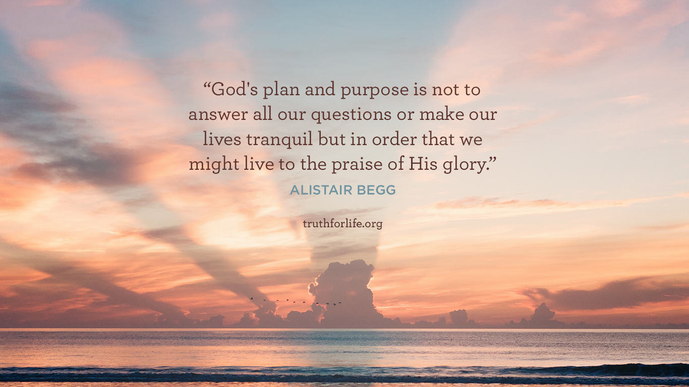 "God's plan and purpose is not to answer all our questions or make our lives tranquil but in order that we might live to the praise of His glory."