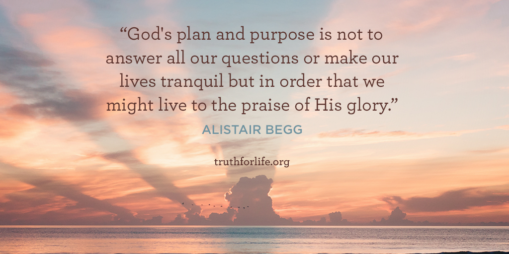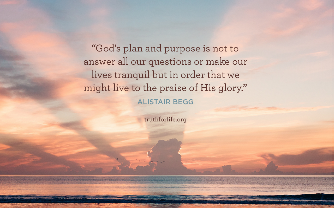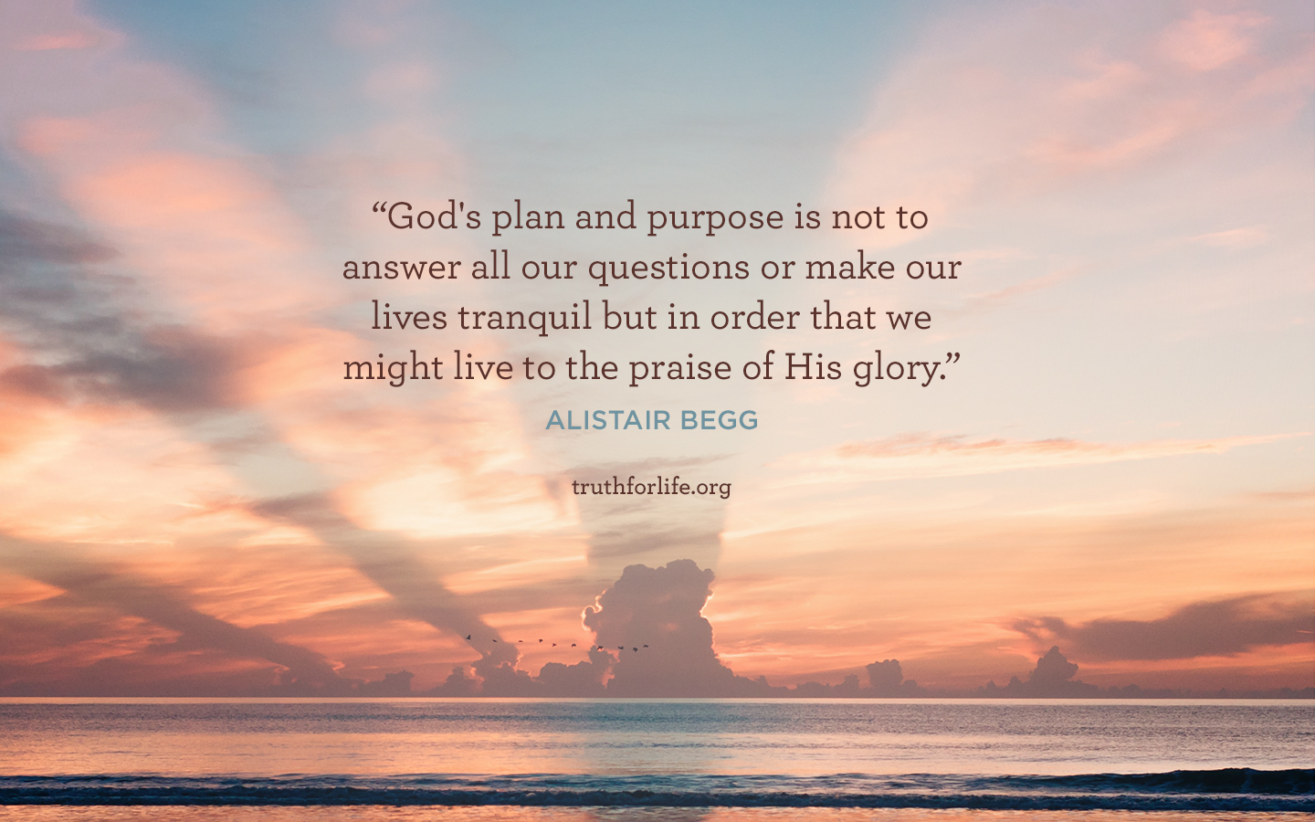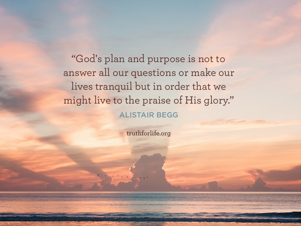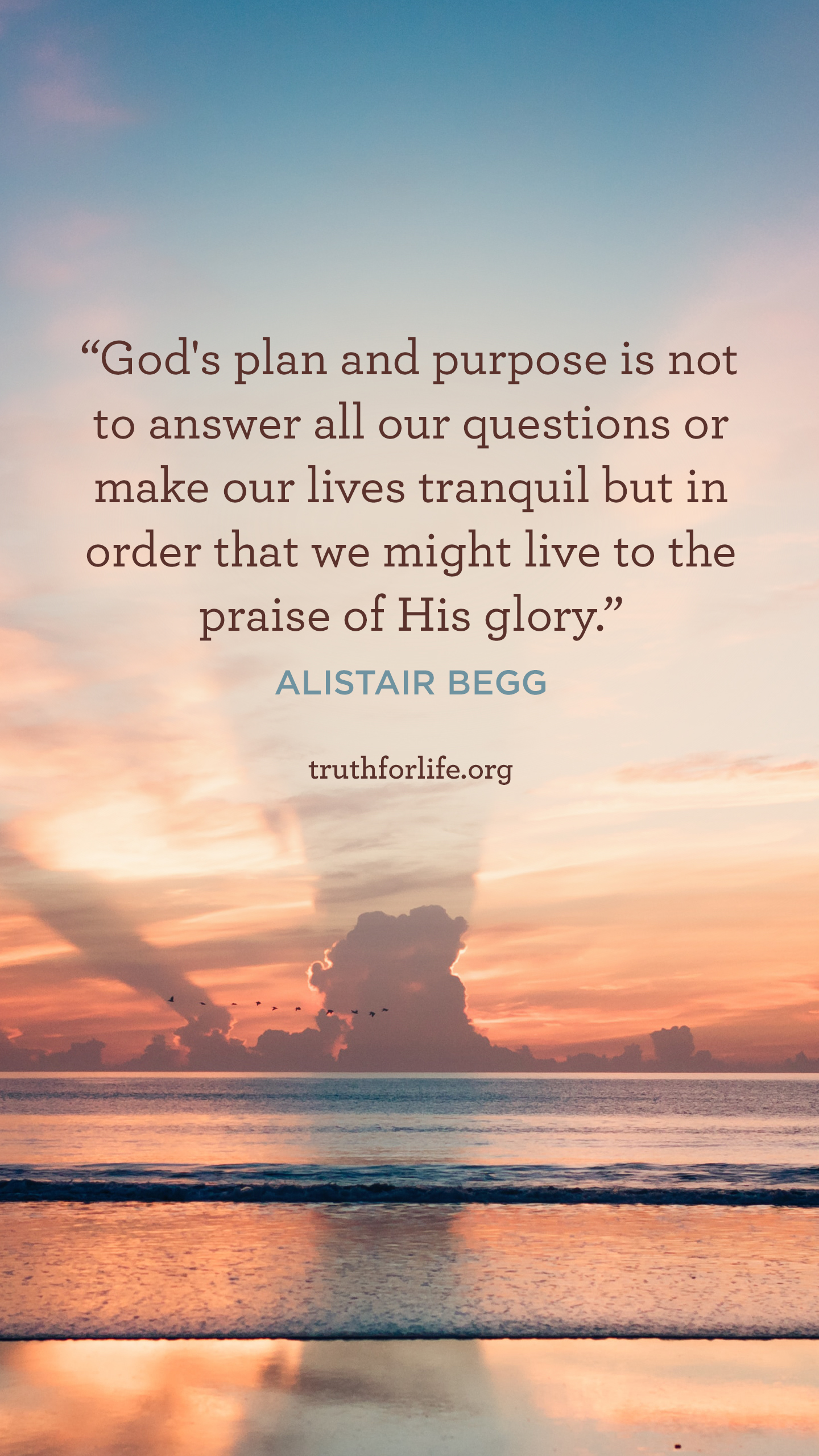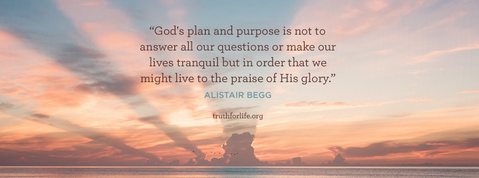 "God's plan and purpose is not to answer all our questions or make our lives tranquil but in order that we might live to the praise of His glory."
