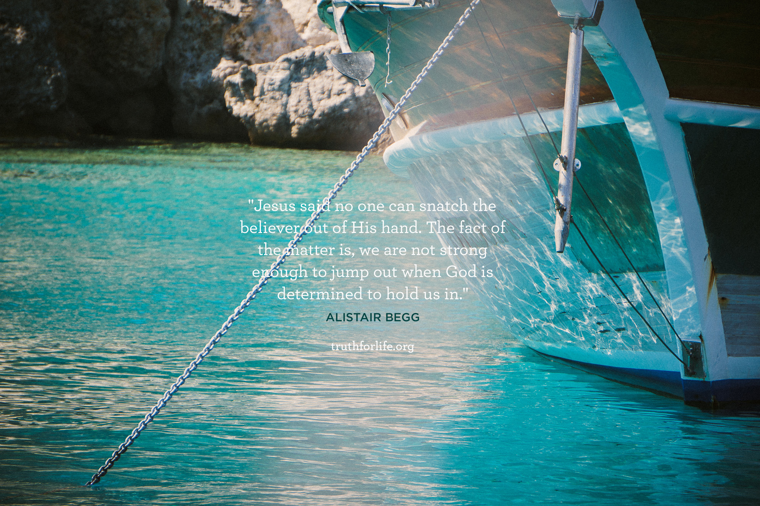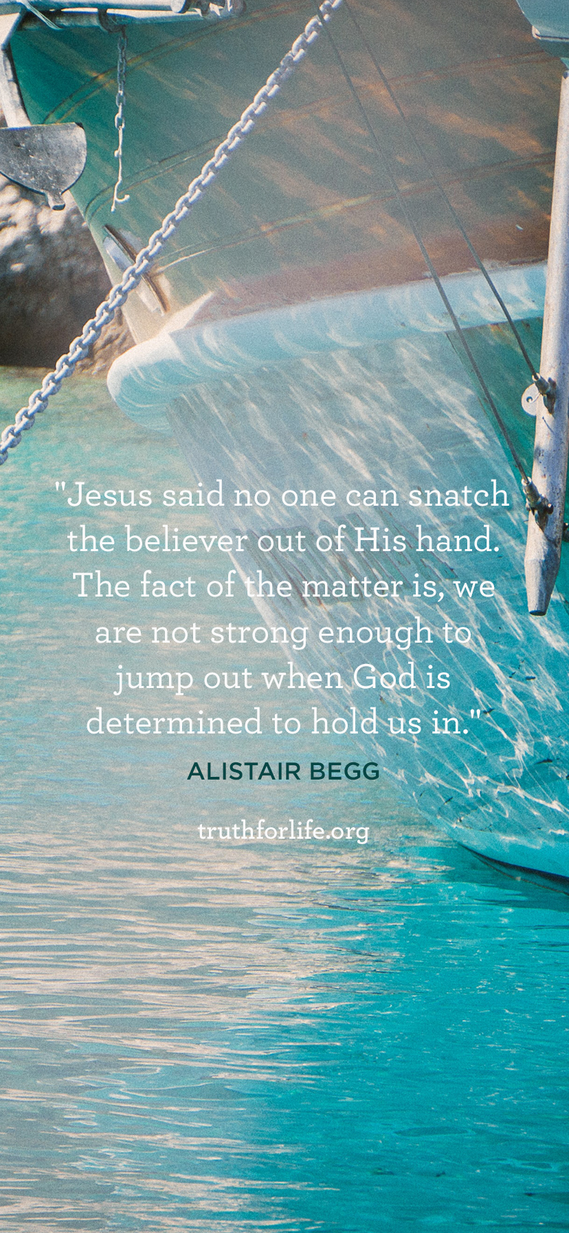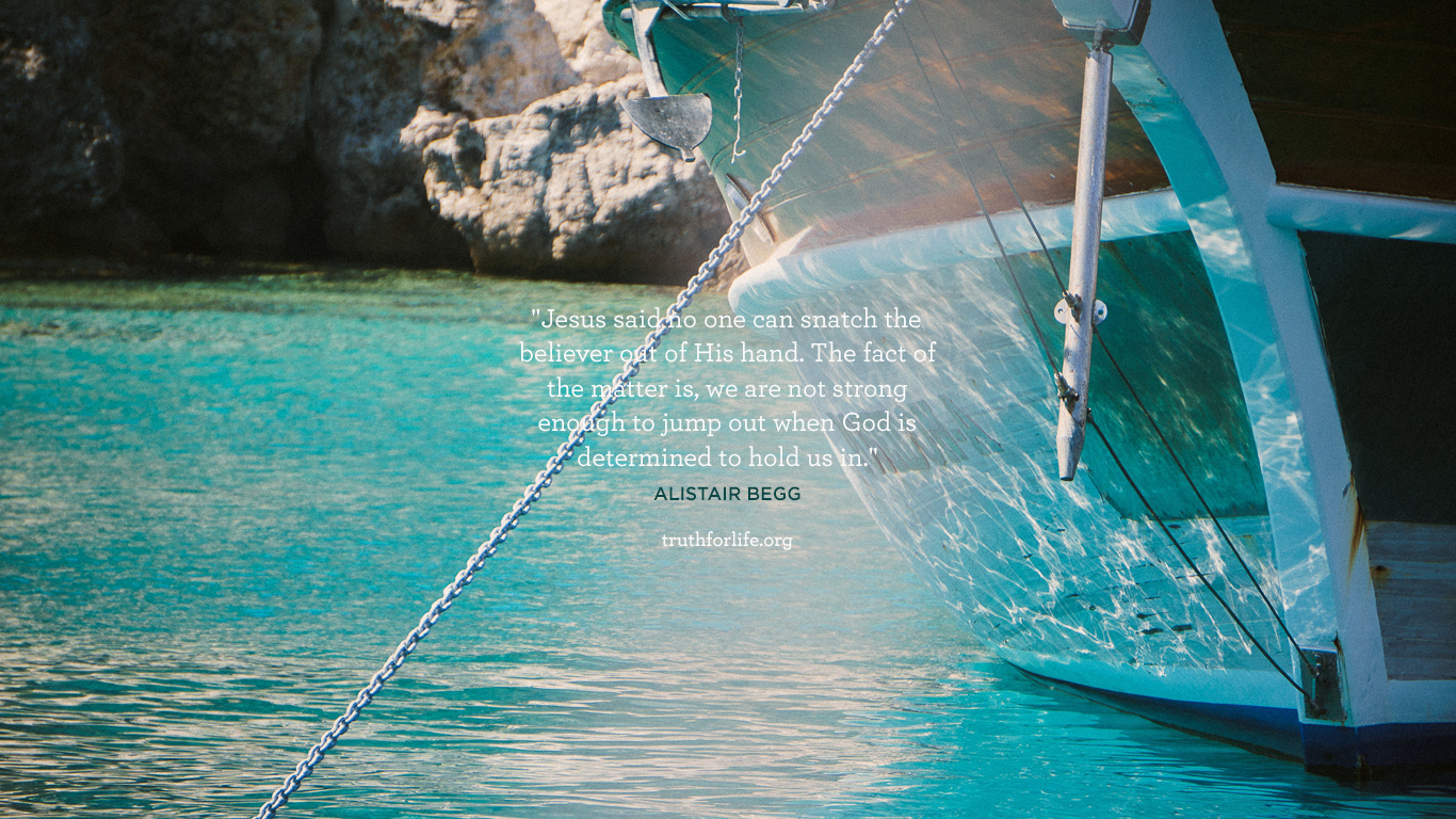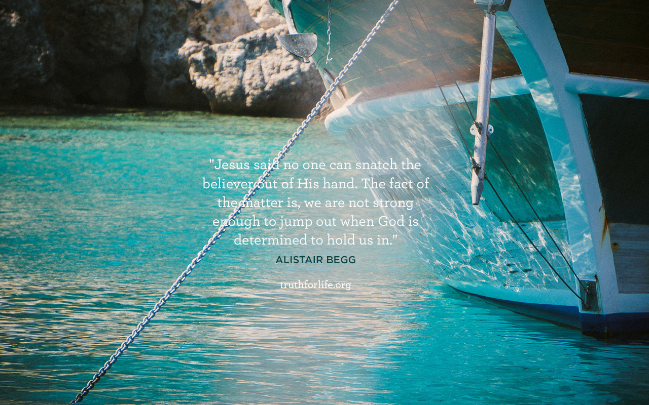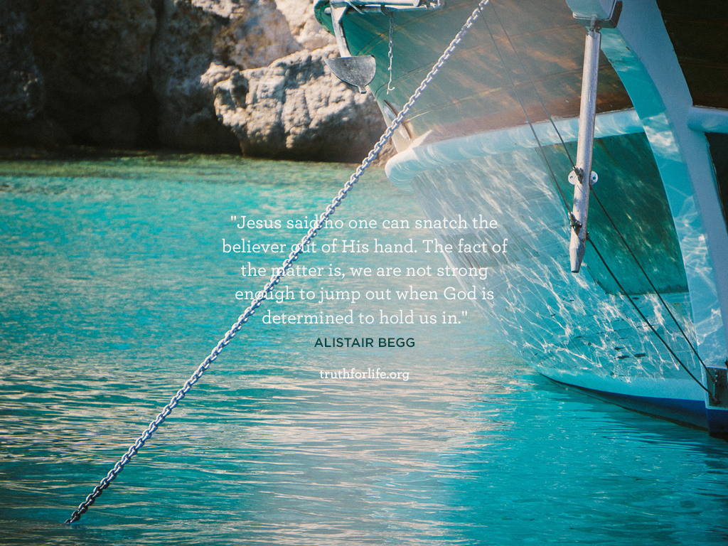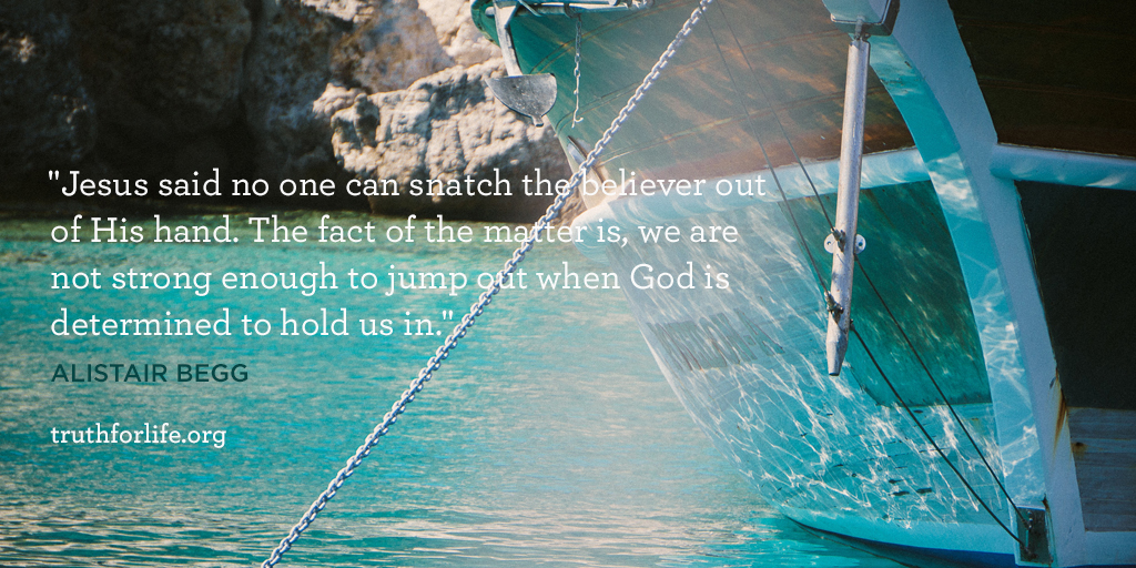“Jesus said no one can snatch the believer out of His hand. The fact of the matter is, we are not strong enough to jump out when God is determined to hold us in.”