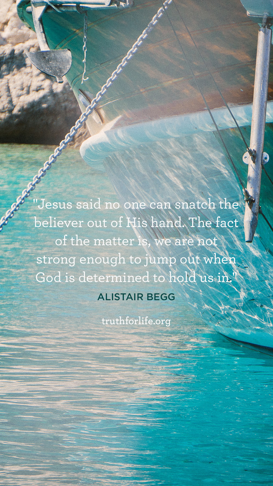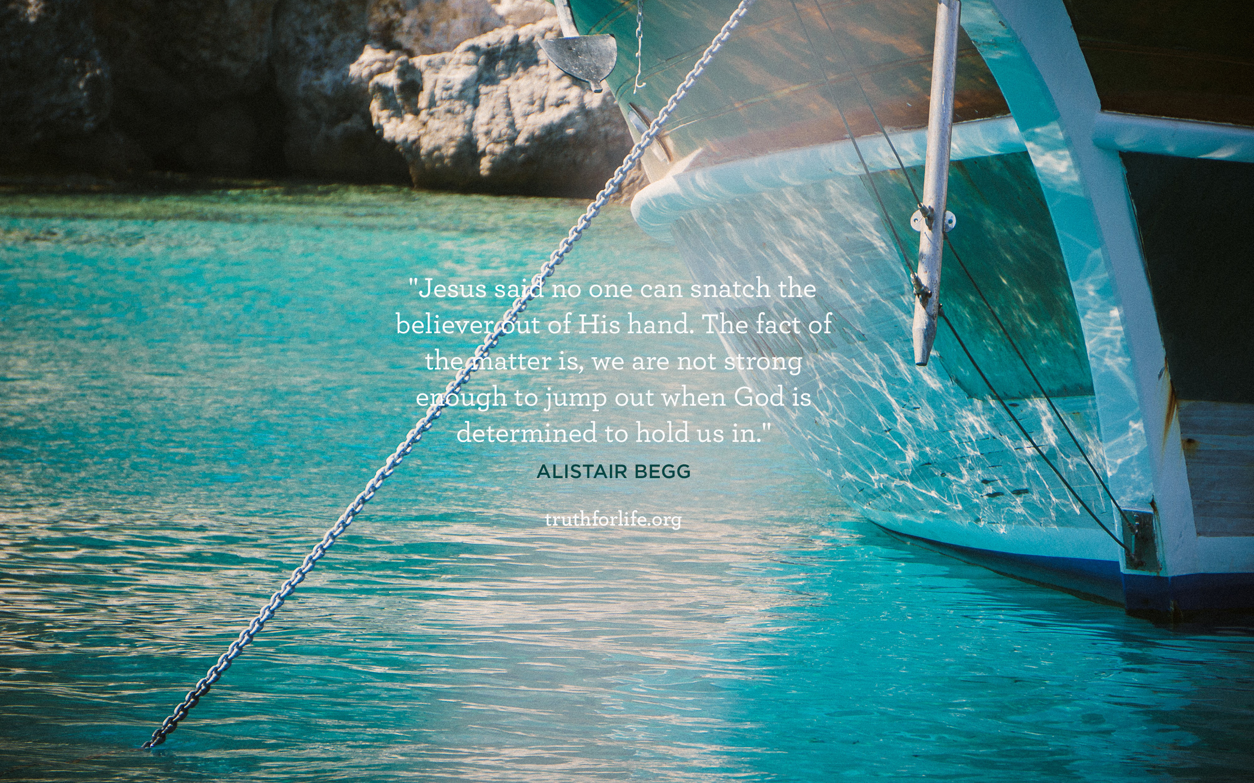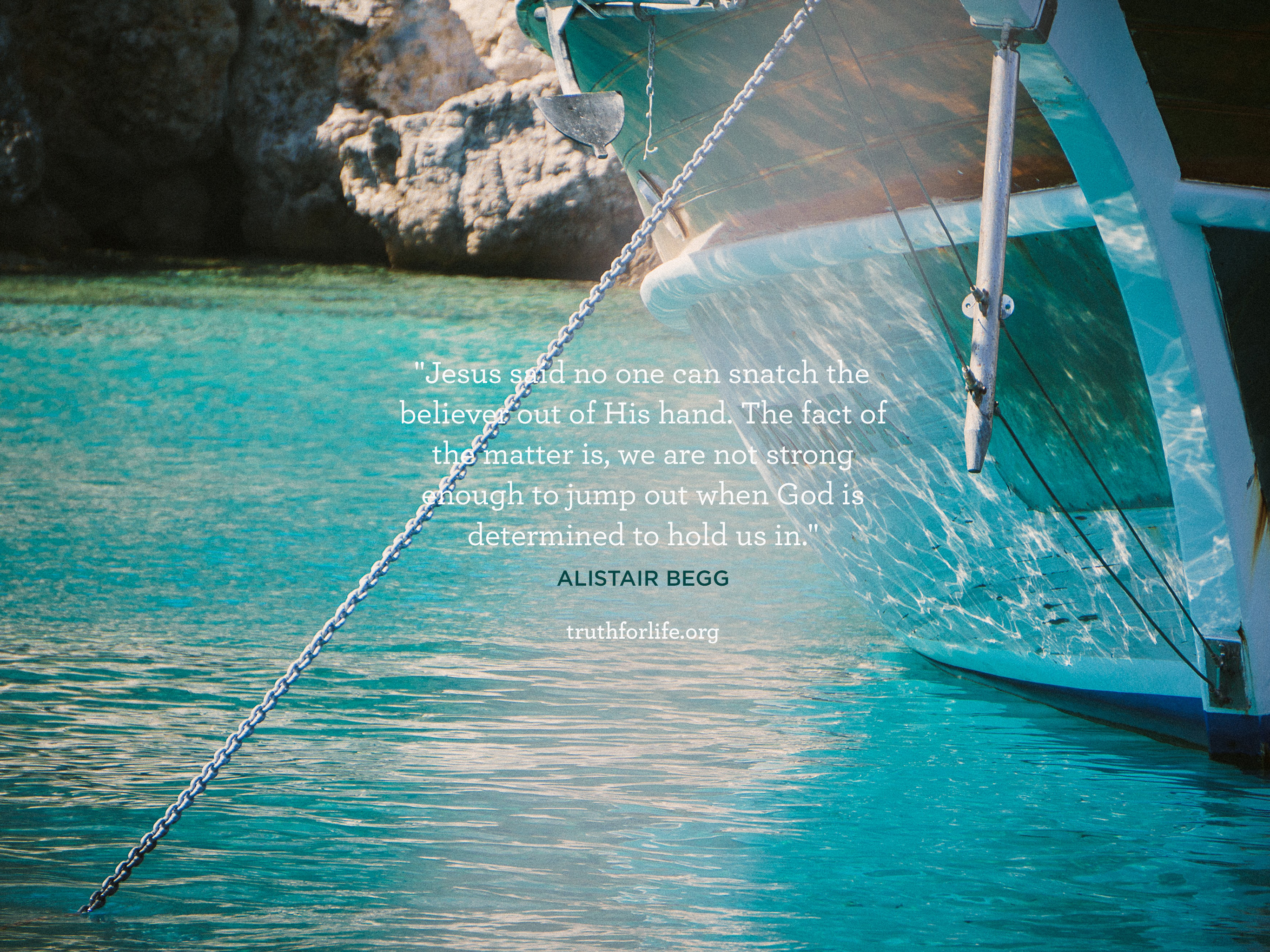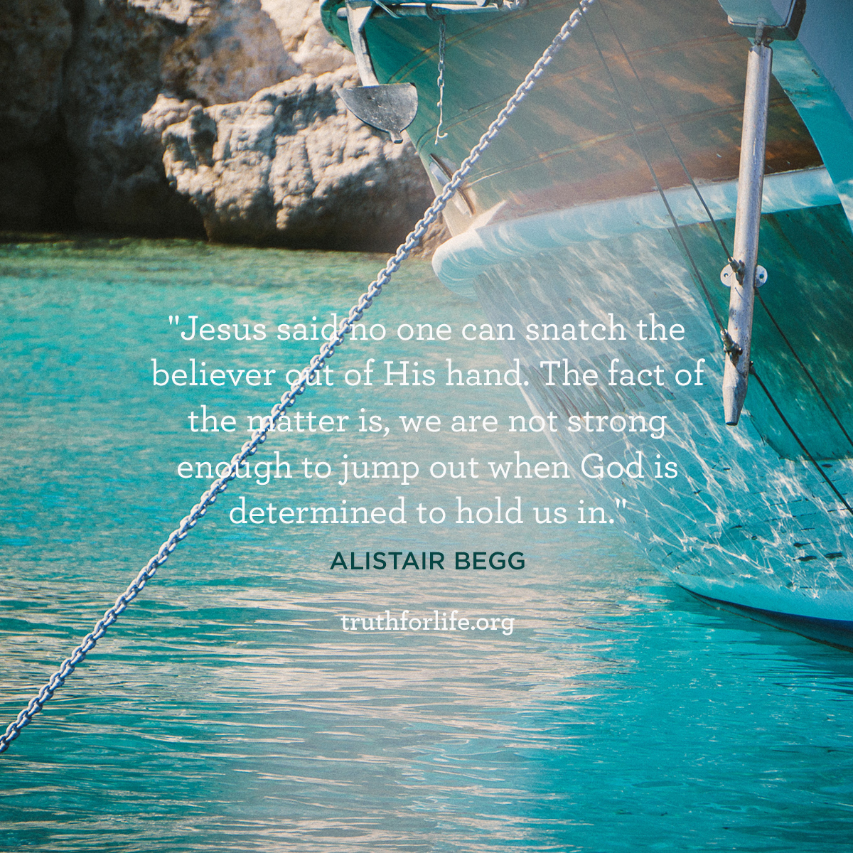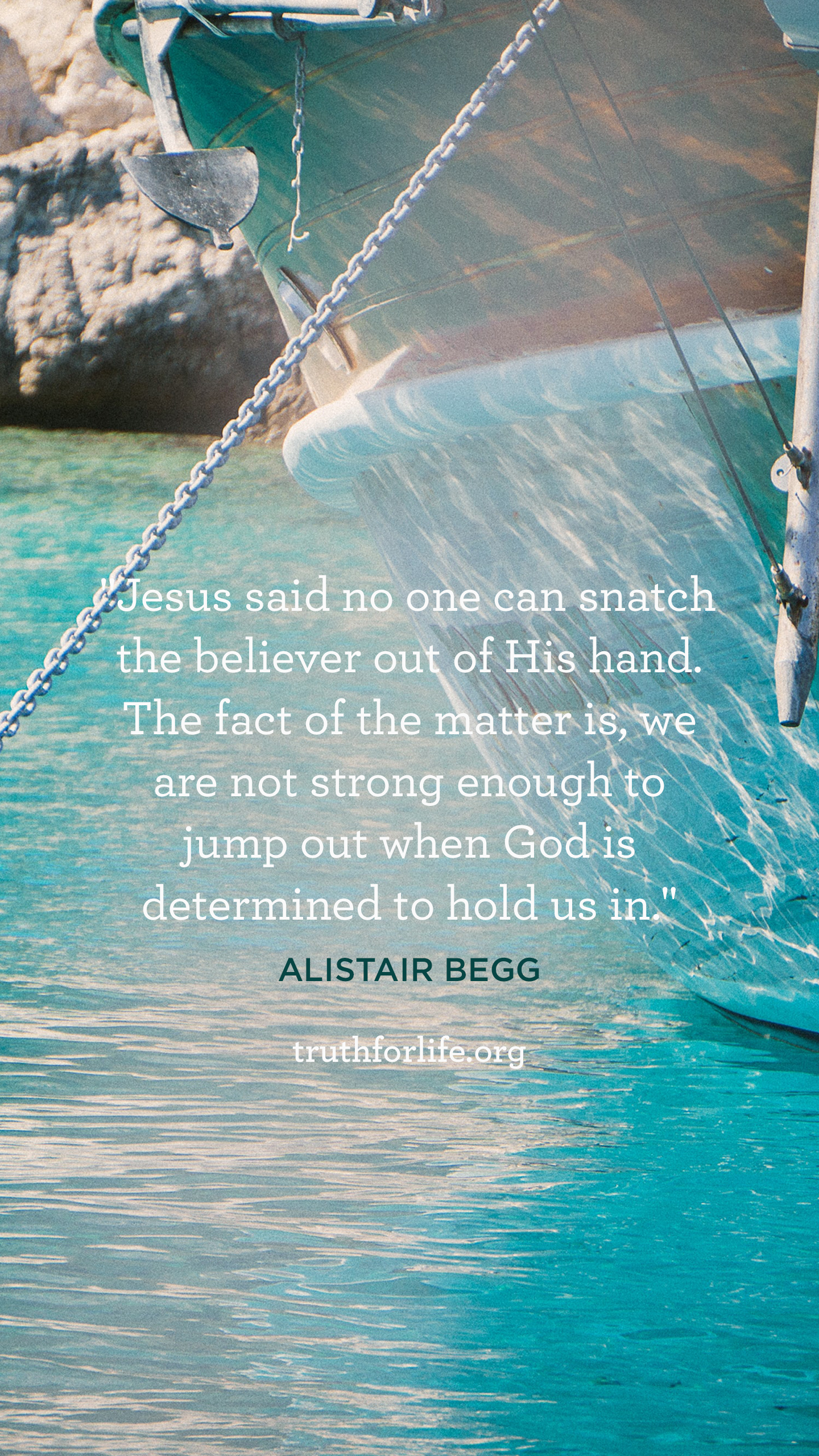 “Jesus said no one can snatch the believer out of His hand. The fact of the matter is, we are not strong enough to jump out when God is determined to hold us in.”