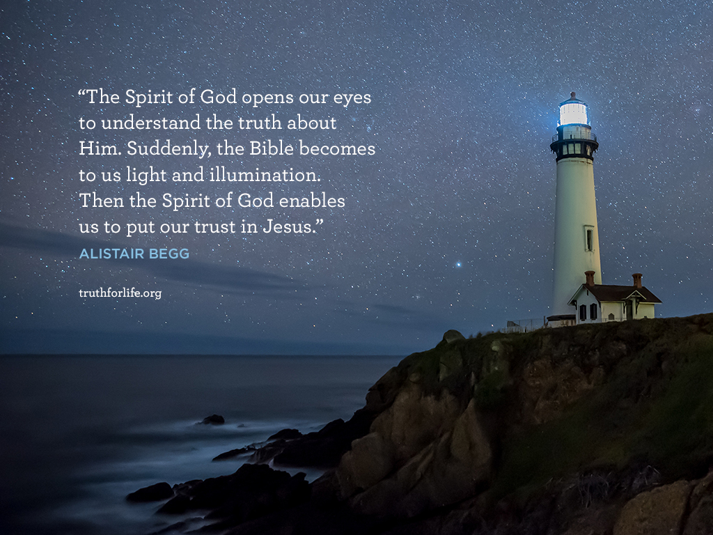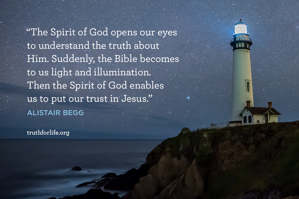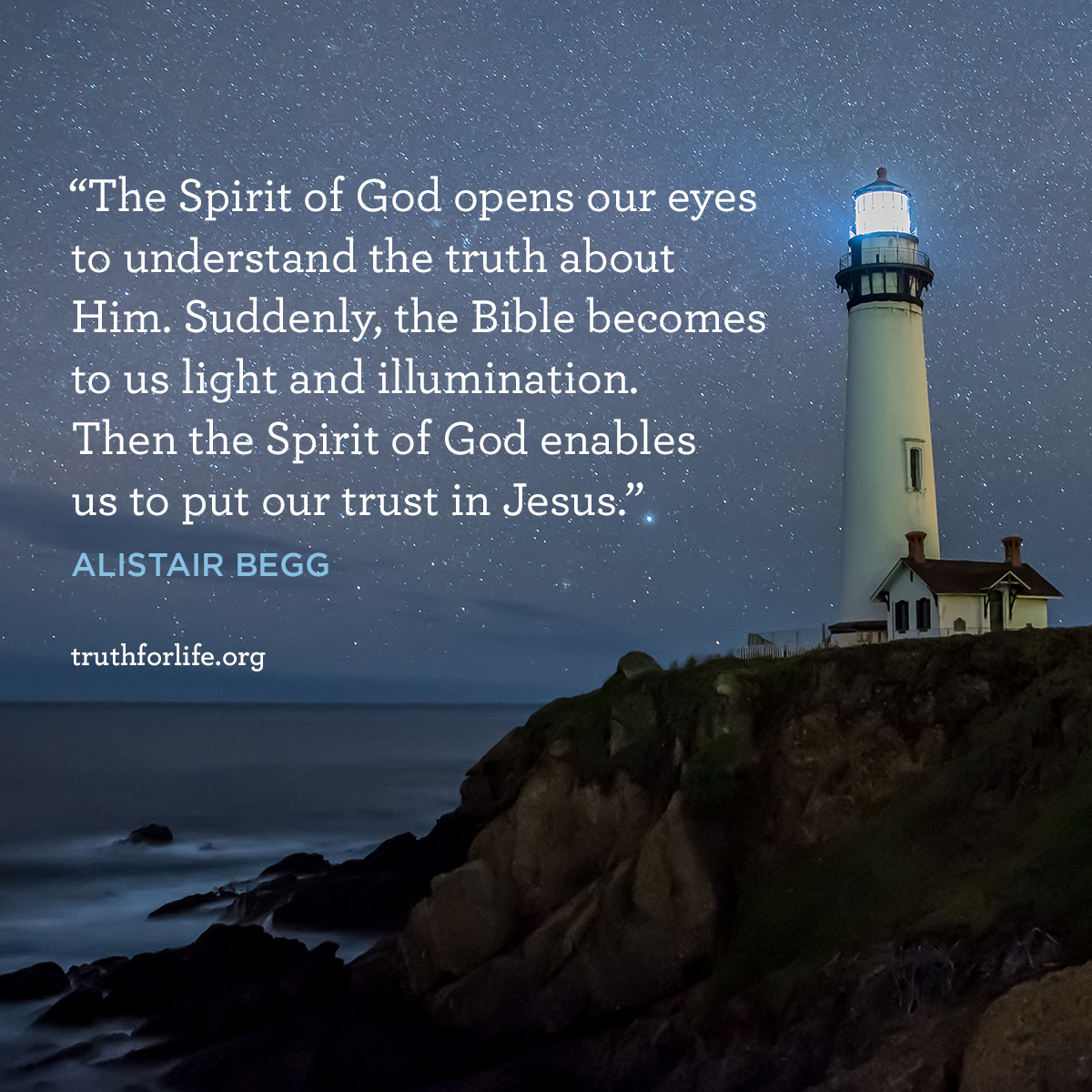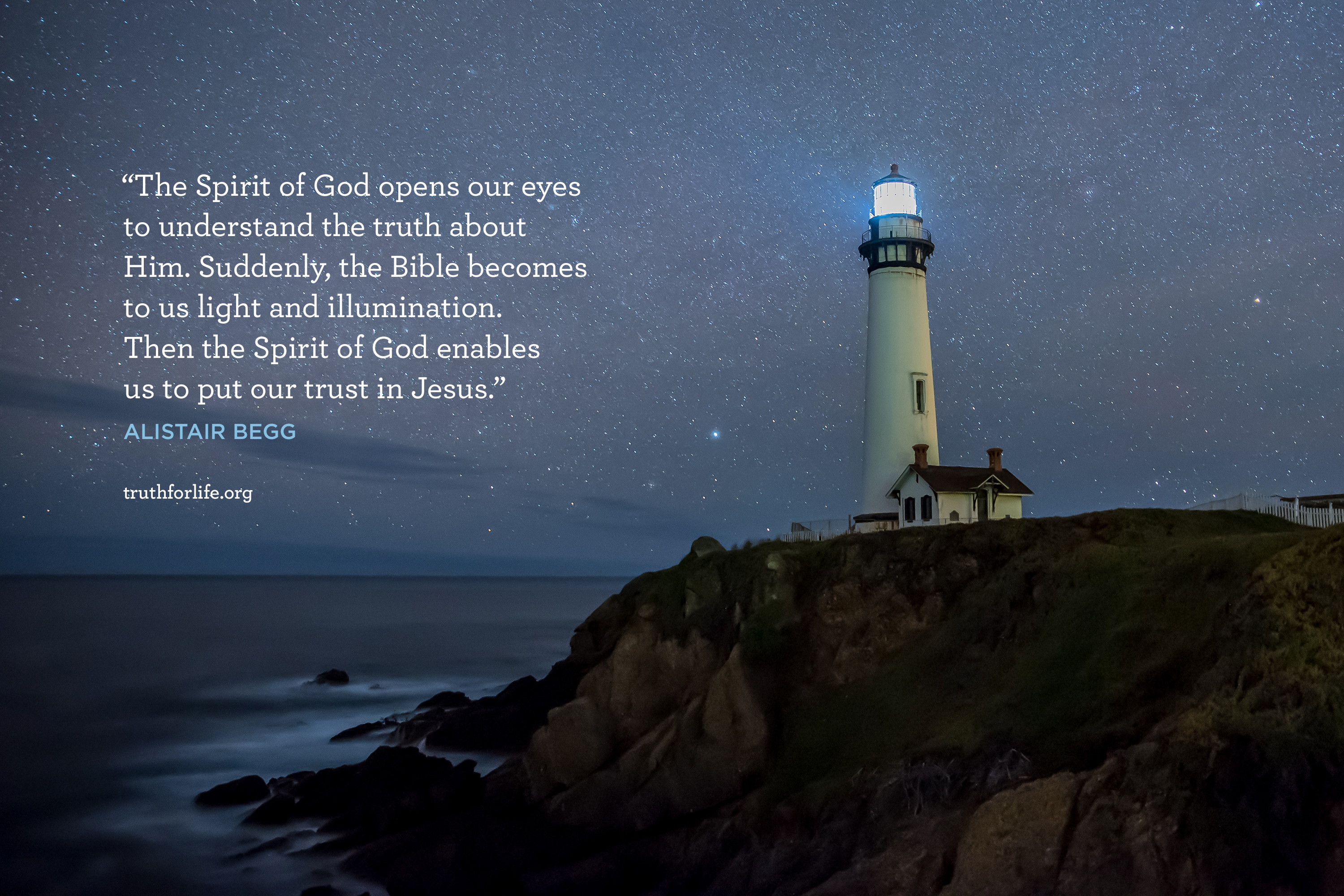 "The Spirit of God opens our eyes to understand the truth about Him. Suddenly, the Bible becomes to us light and illumination. Then the Spirit of God enables us to put our trust in Jesus."