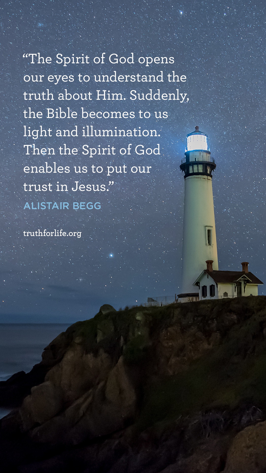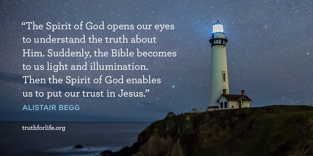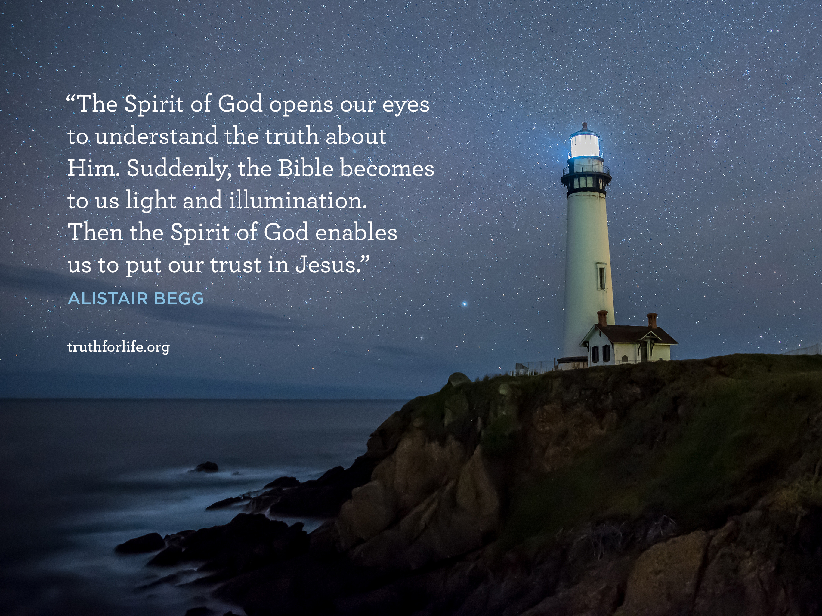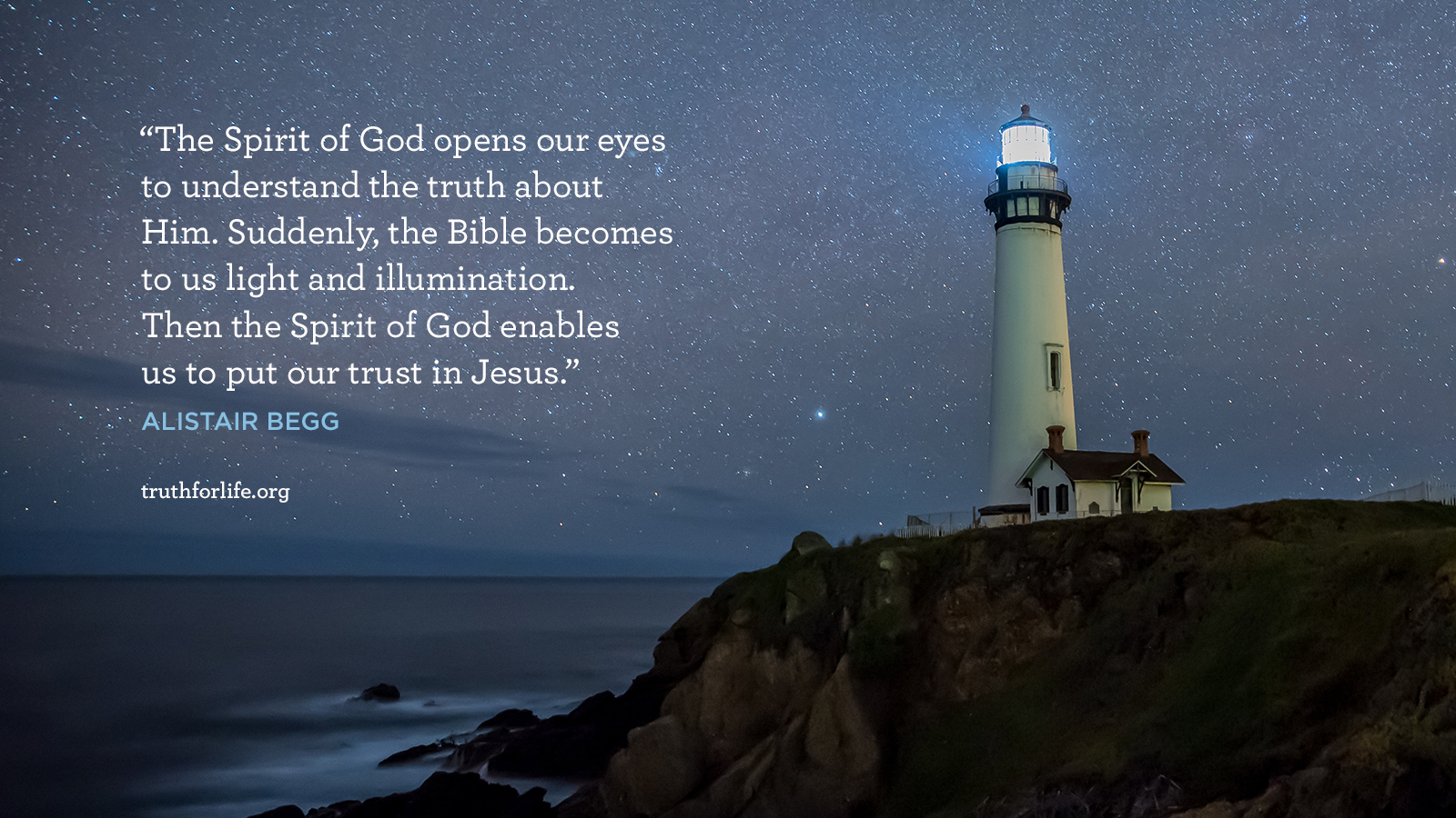 "The Spirit of God opens our eyes to understand the truth about Him. Suddenly, the Bible becomes to us light and illumination. Then the Spirit of God enables us to put our trust in Jesus."