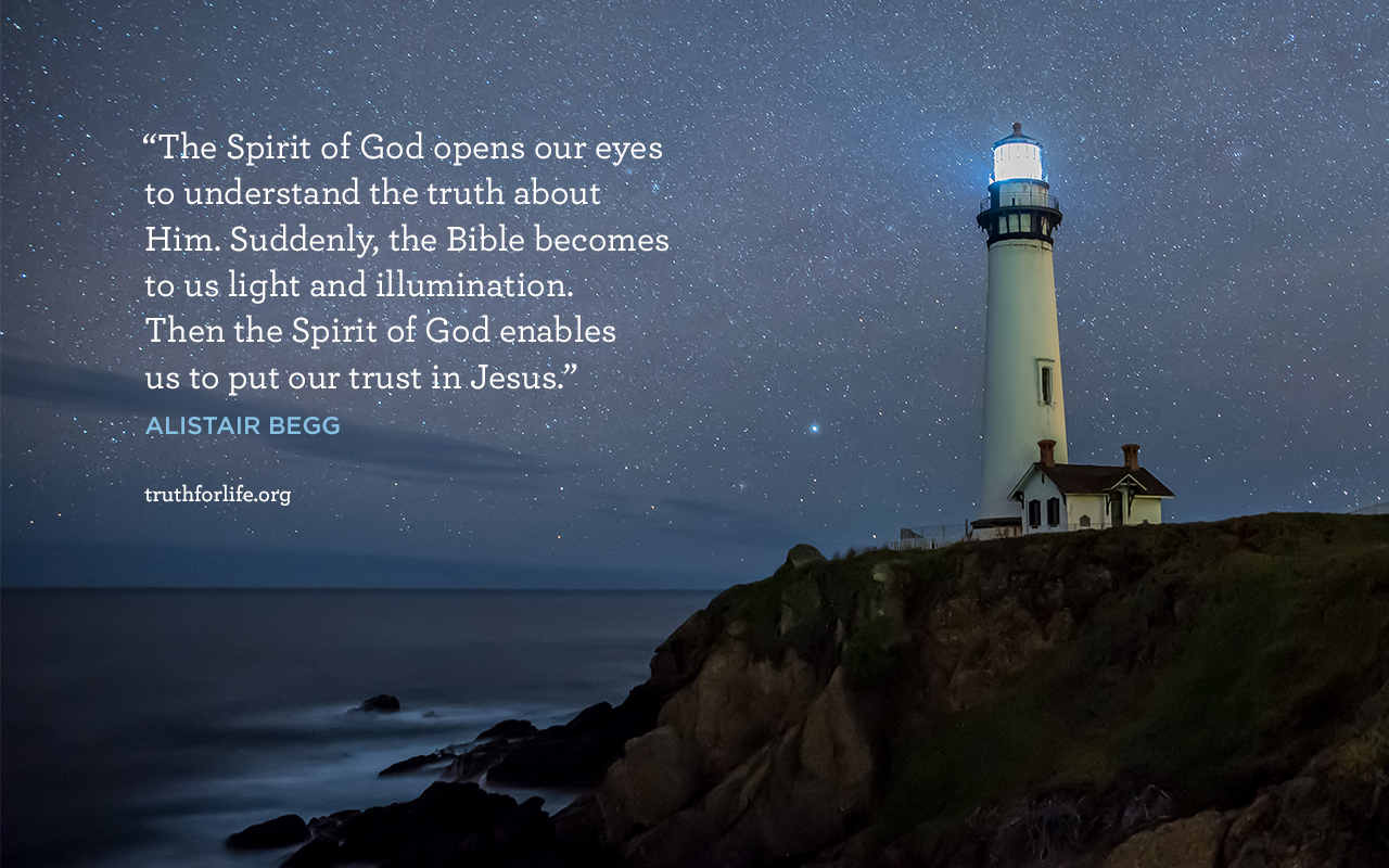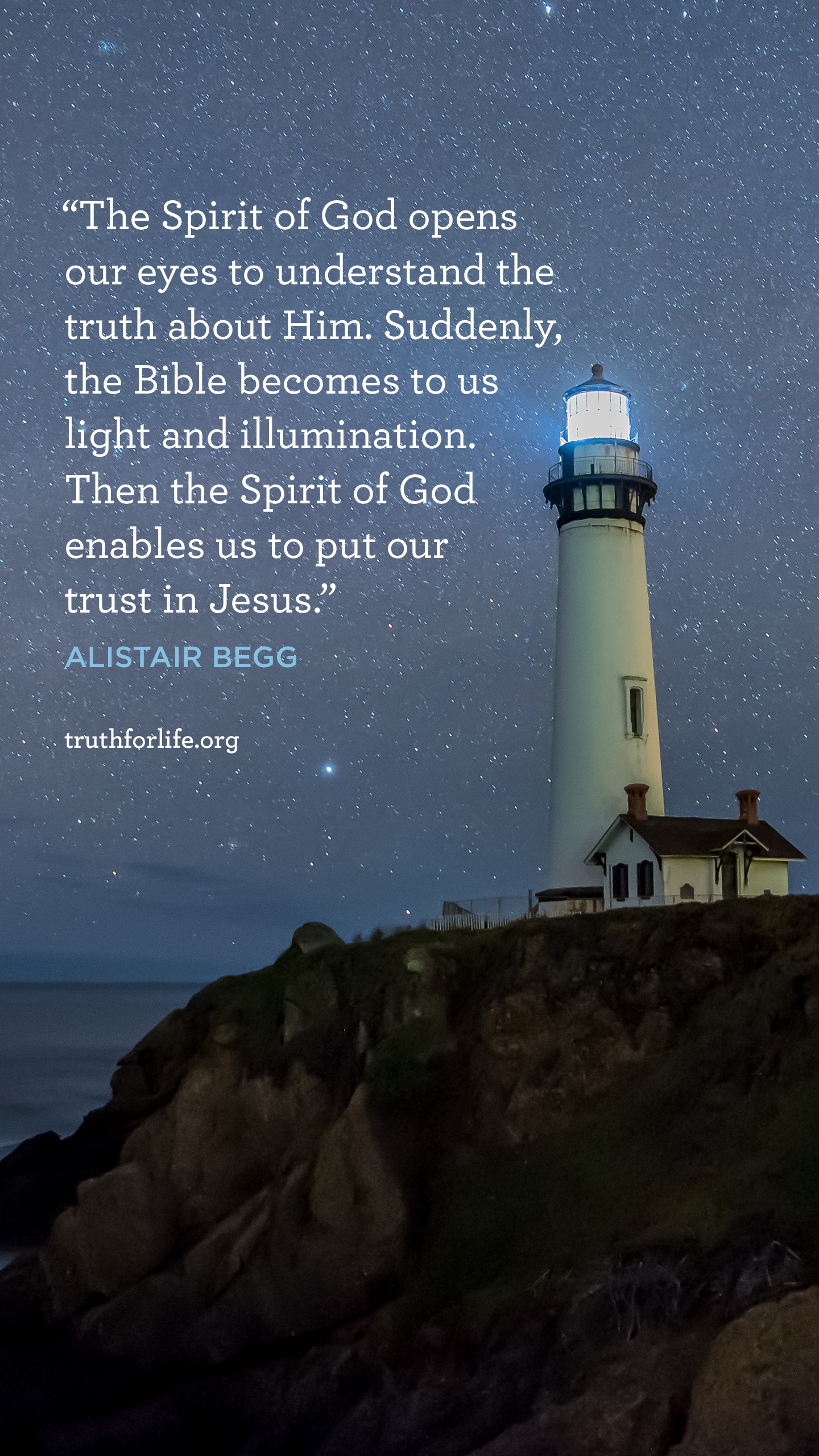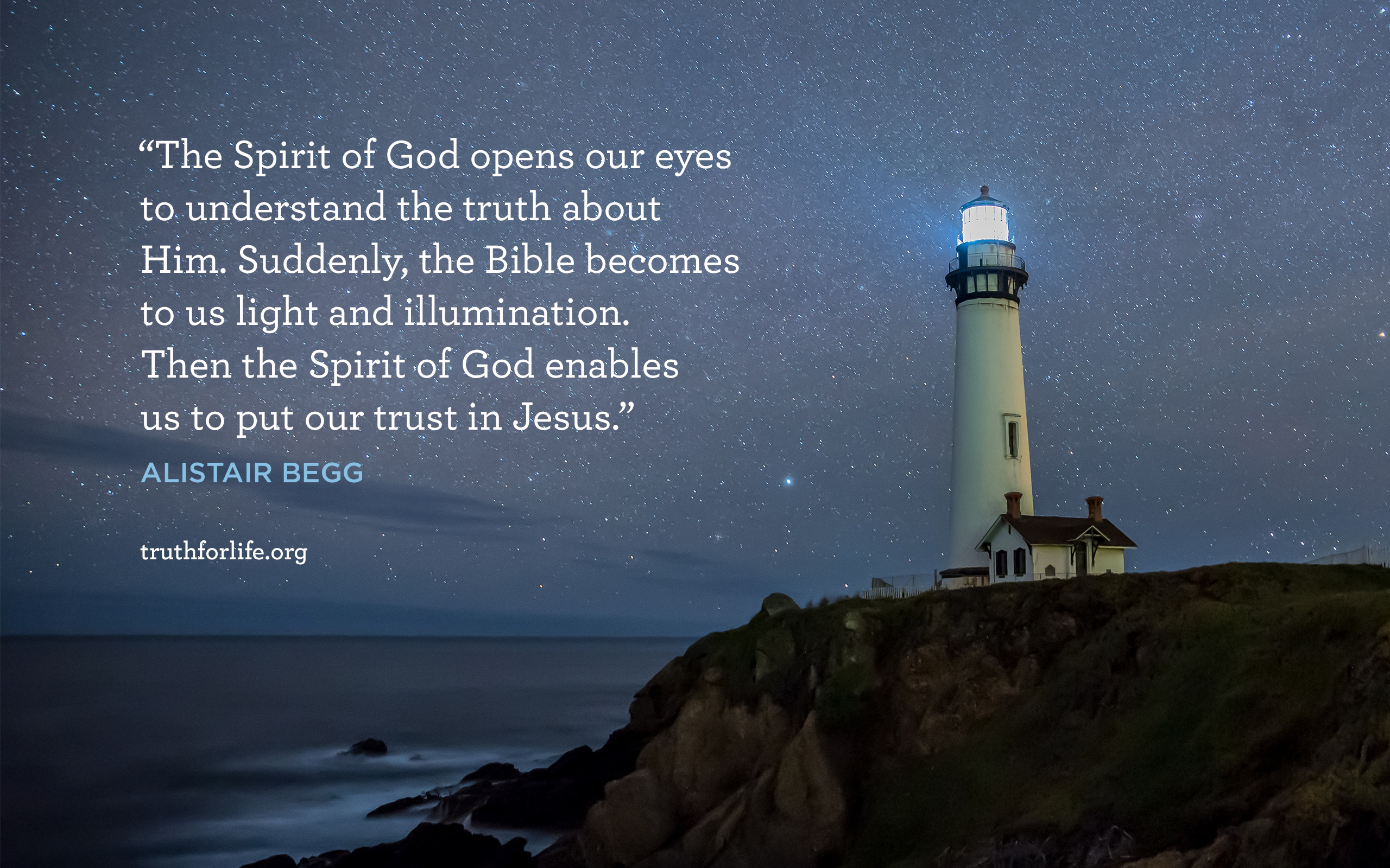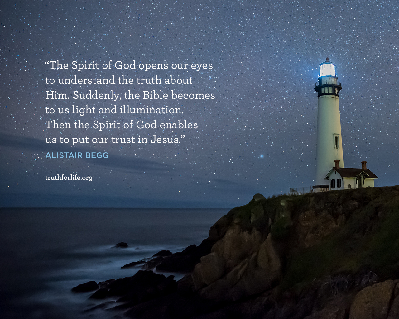 "The Spirit of God opens our eyes to understand the truth about Him. Suddenly, the Bible becomes to us light and illumination. Then the Spirit of God enables us to put our trust in Jesus."