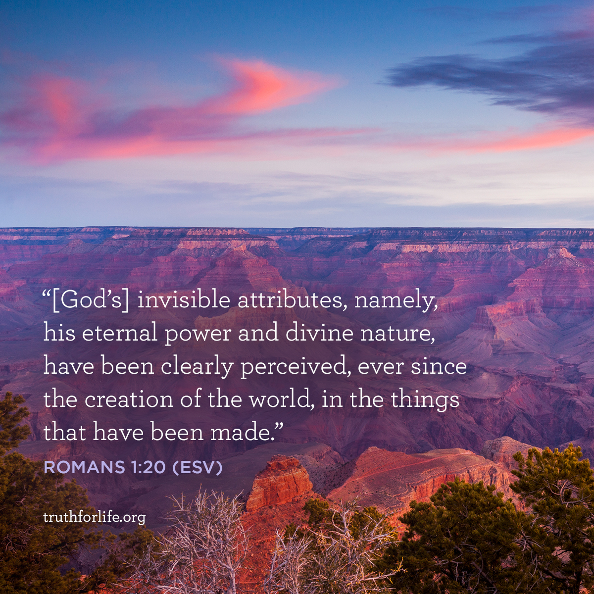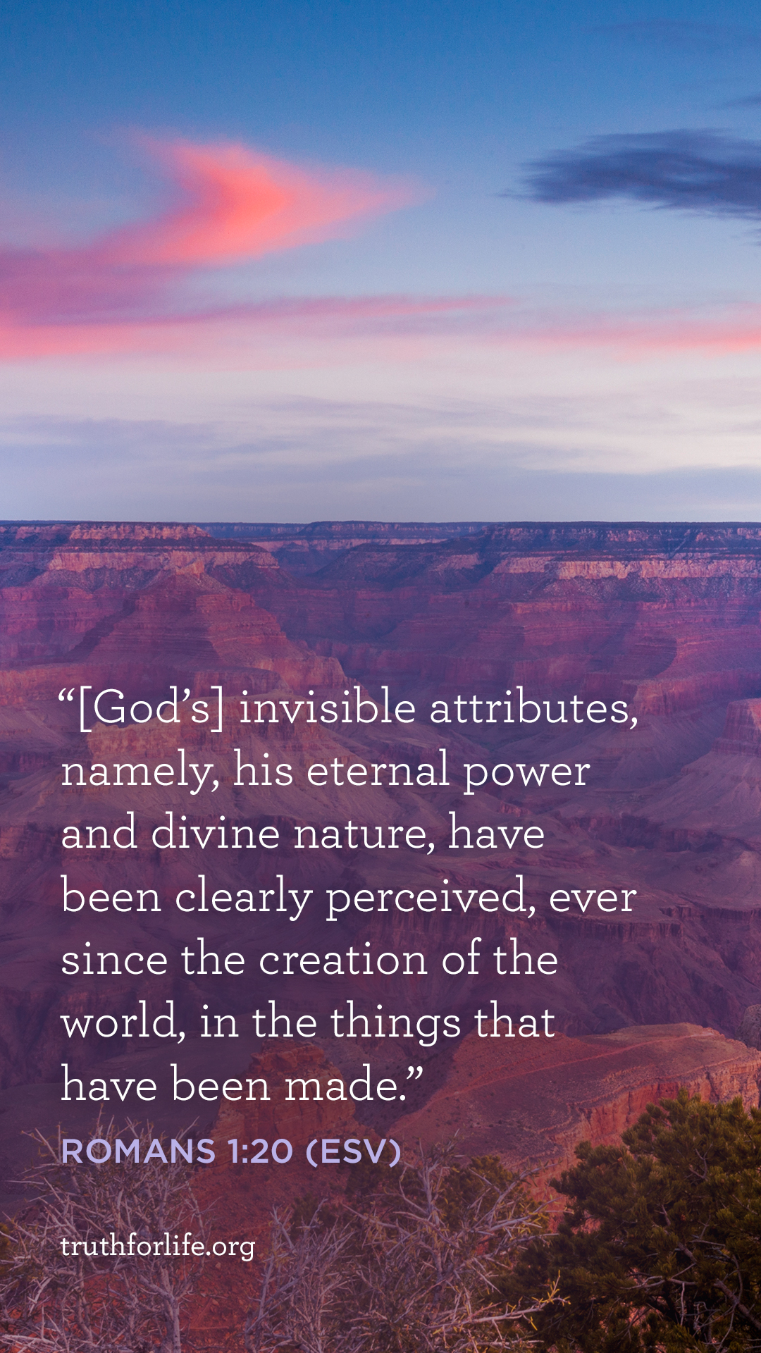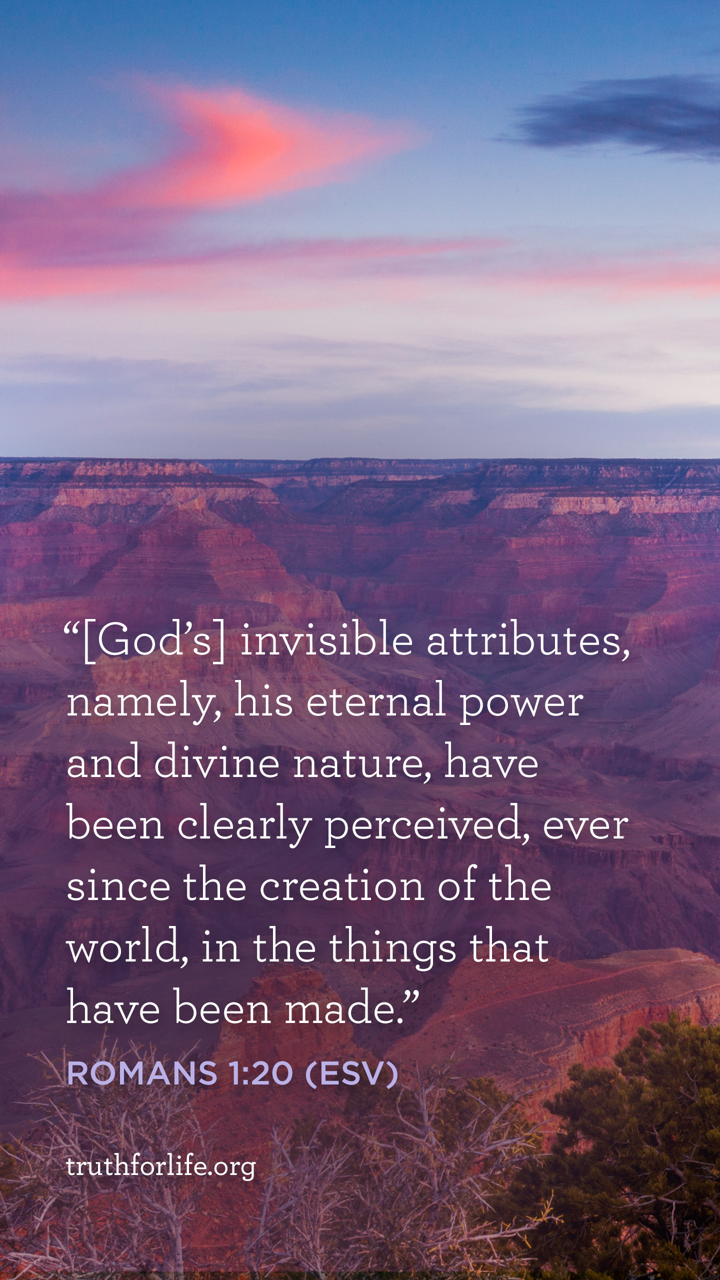 ![[God’s] invisible attributes, namely, his eternal power and divine nature, have been clearly perceived, ever since the creation of the world, in the things that have been made. - Romans 1:20 [God’s] invisible attributes, namely, his eternal power and divine nature, have been clearly perceived, ever since the creation of the world, in the things that have been made. - Romans 1:20](https://blog.truthforlife.org/hs-fs/hubfs/_Wallpaper/_Invisible/Invisible_Facebook_BlogPost.jpg?width=817&name=Invisible_Facebook_BlogPost.jpg)