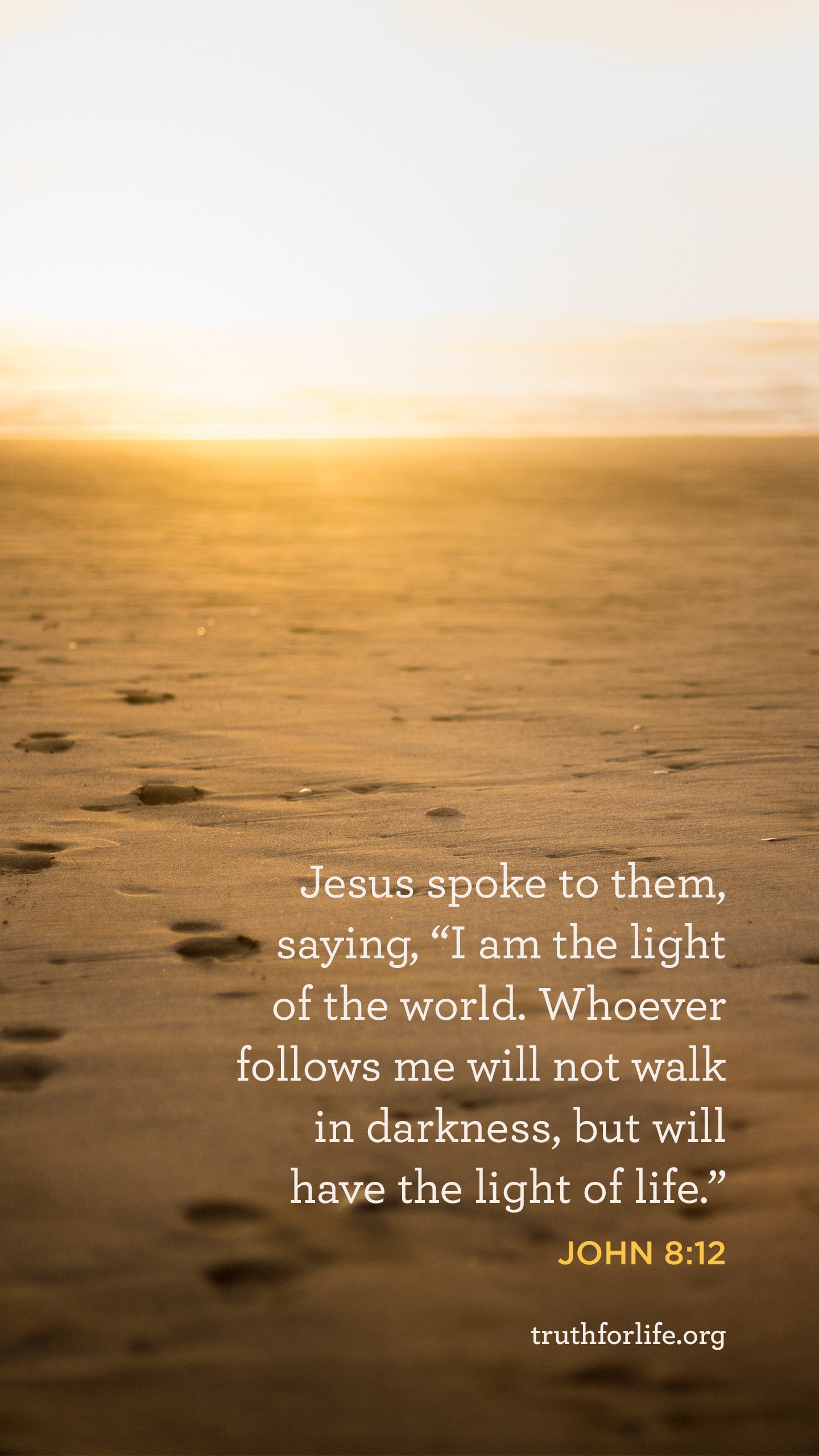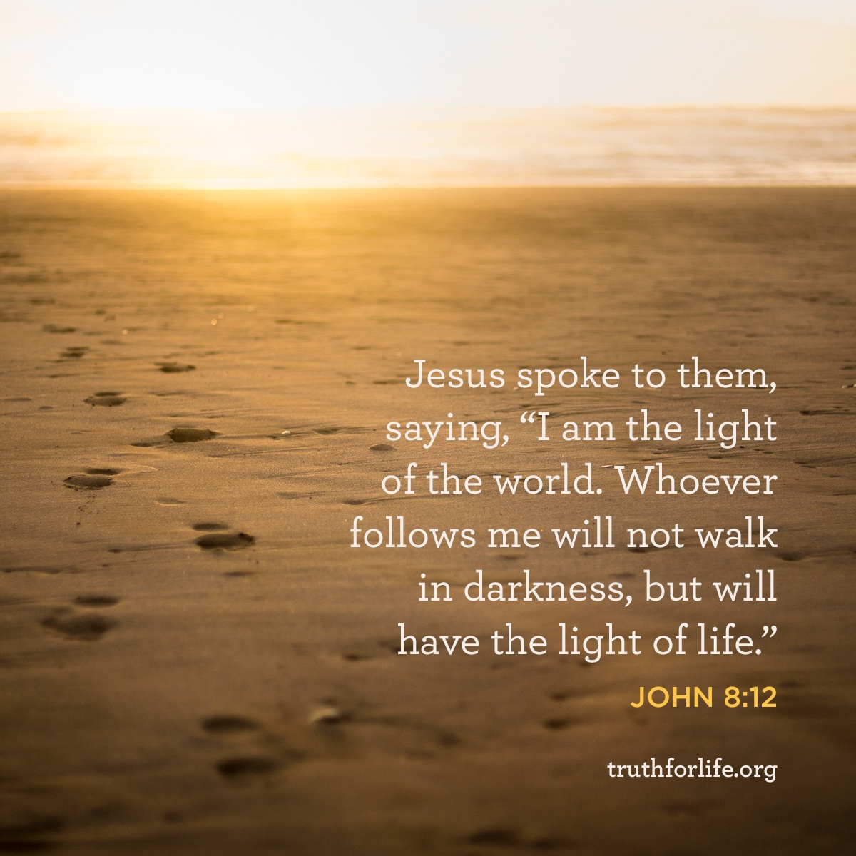 "Jesus spoke to them, saying, "I am the light of the world. Whoever follows me will not walk in darkness, but will have the light of life." "