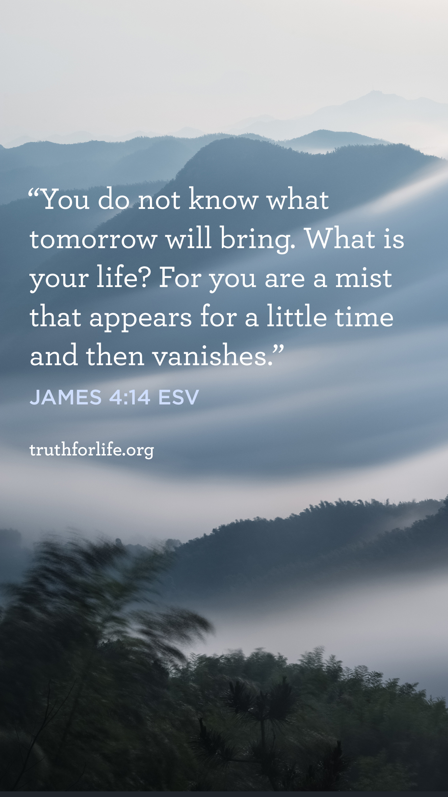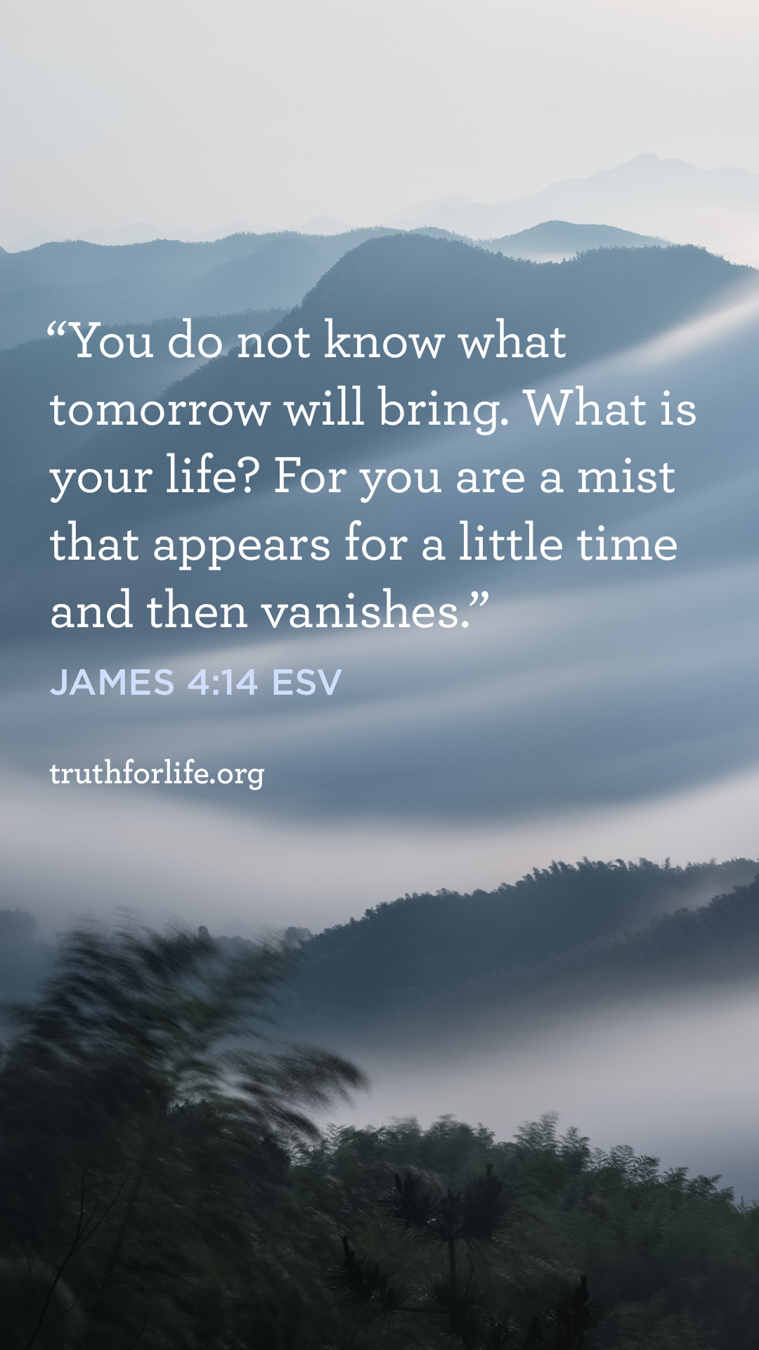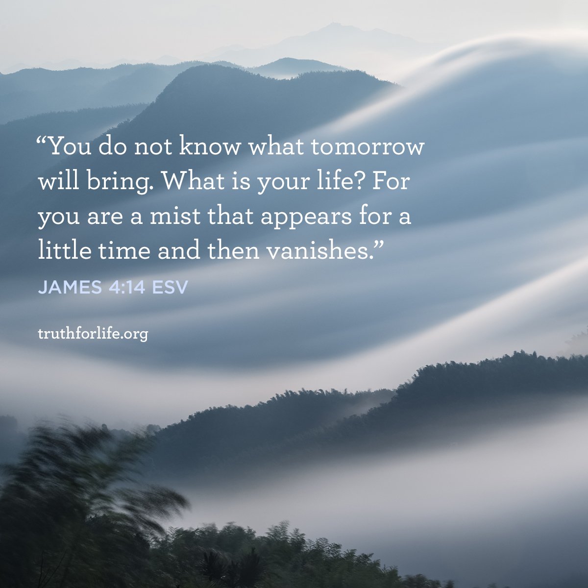 "You do not know what tomorrow will bring. What is your life? For you are a mist that appears for a little time and then vanishes."