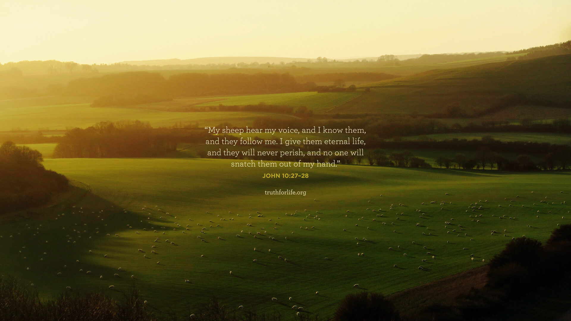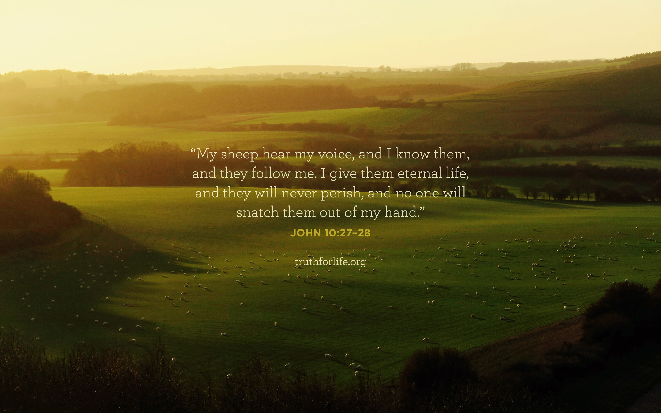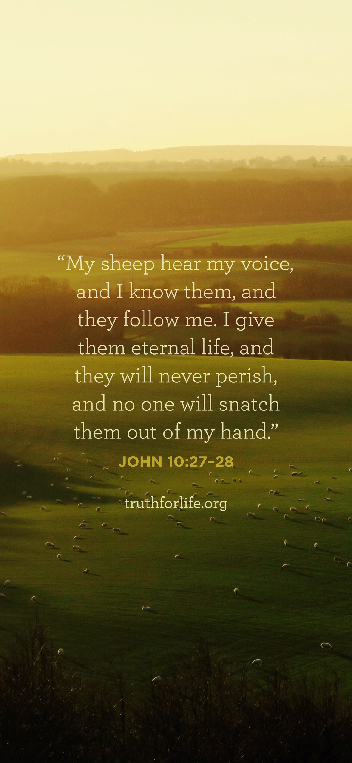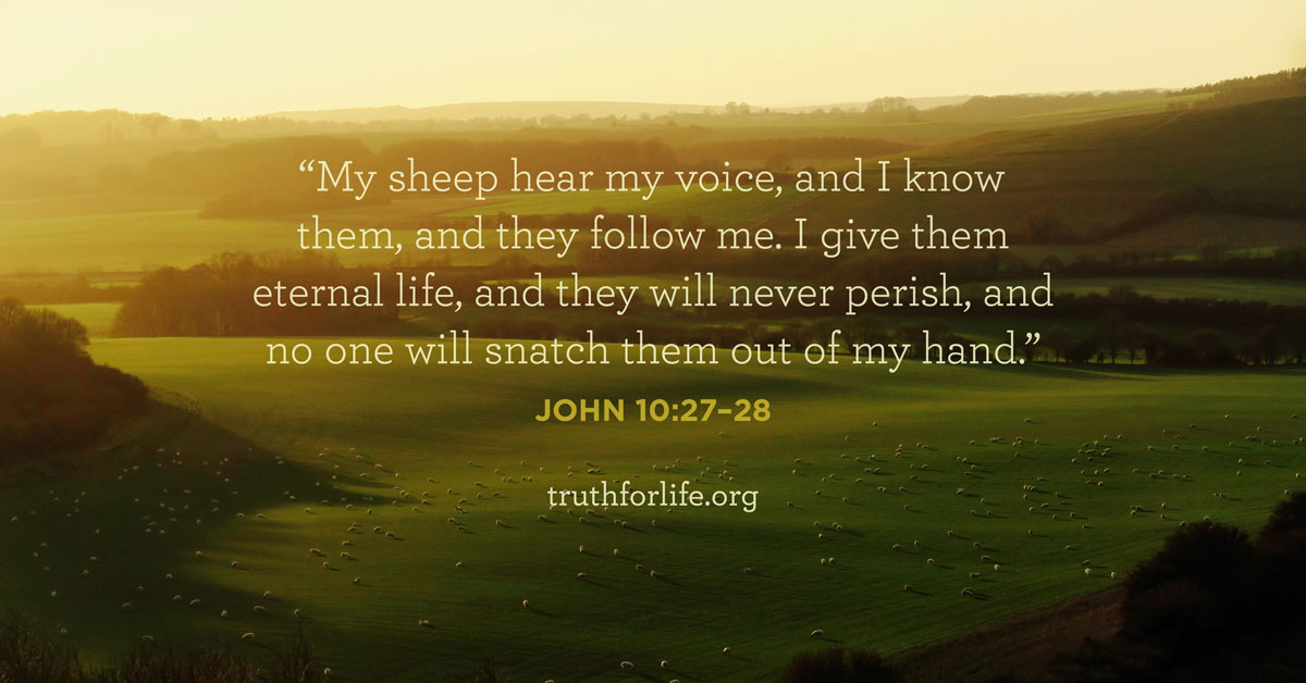 “My sheep hear my voice, and I know them, and they follow me. I give them eternal life, and they will never perish, and no one will snatch them out of my hand.”