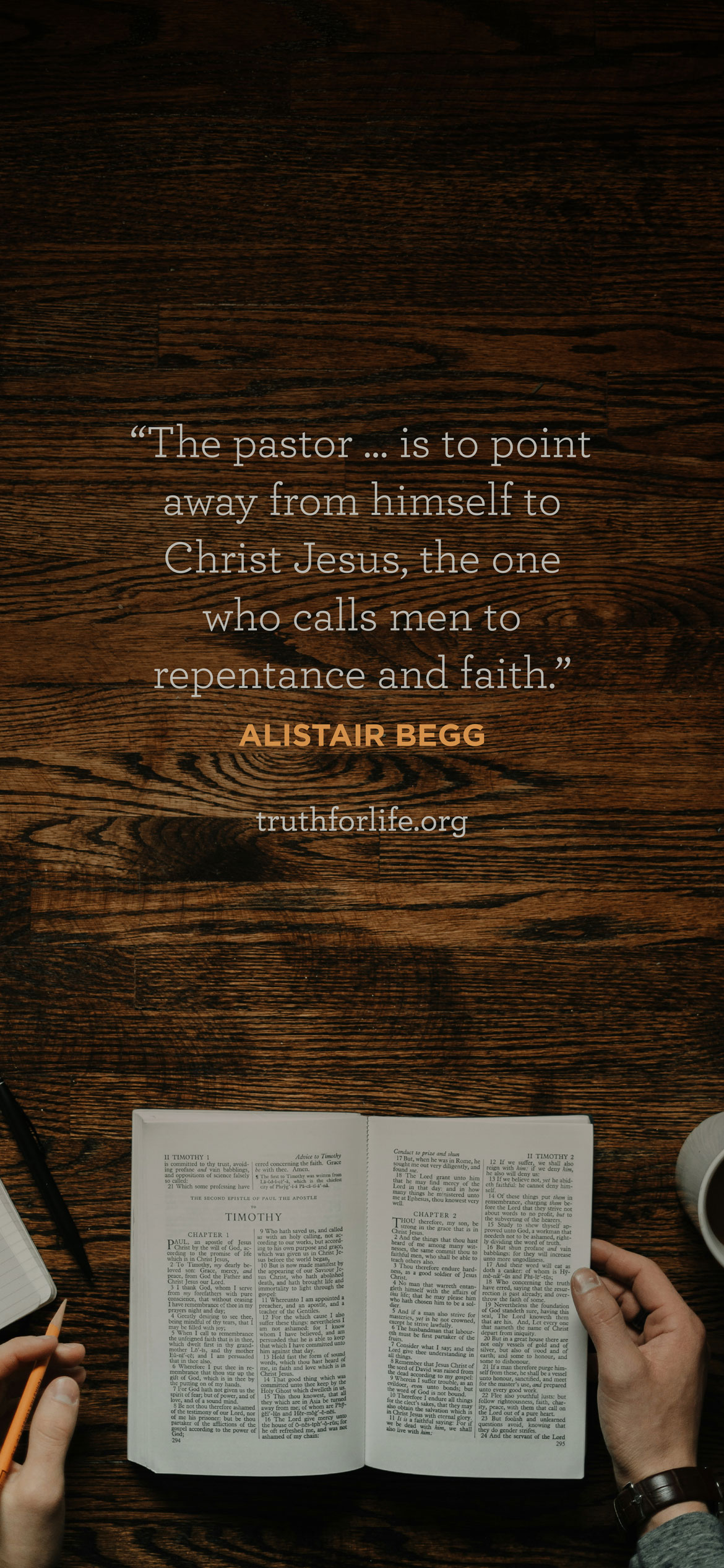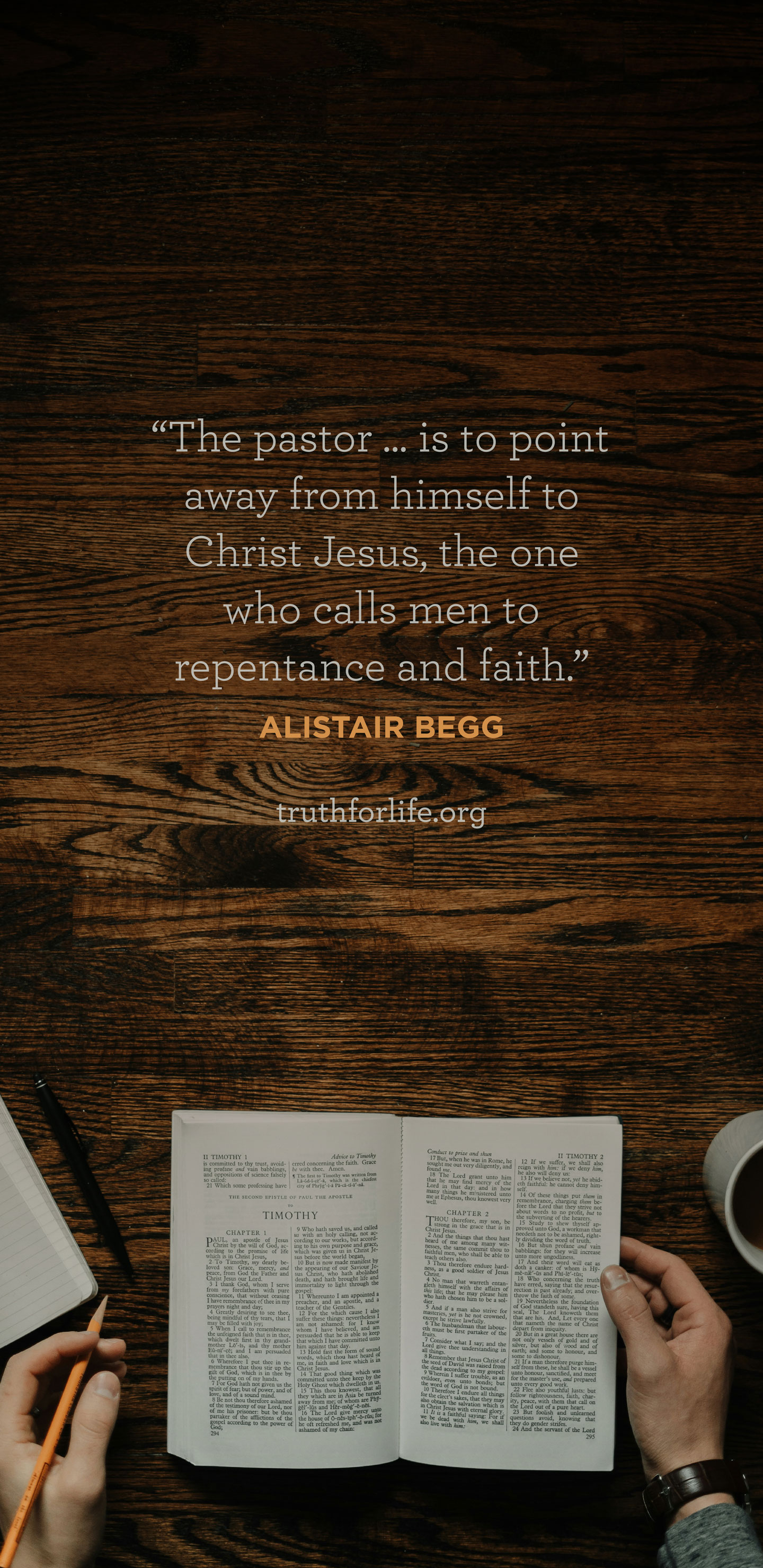 “The pastor ... is to point away from himself to Christ Jesus, the one who calls men to repentance and faith.”