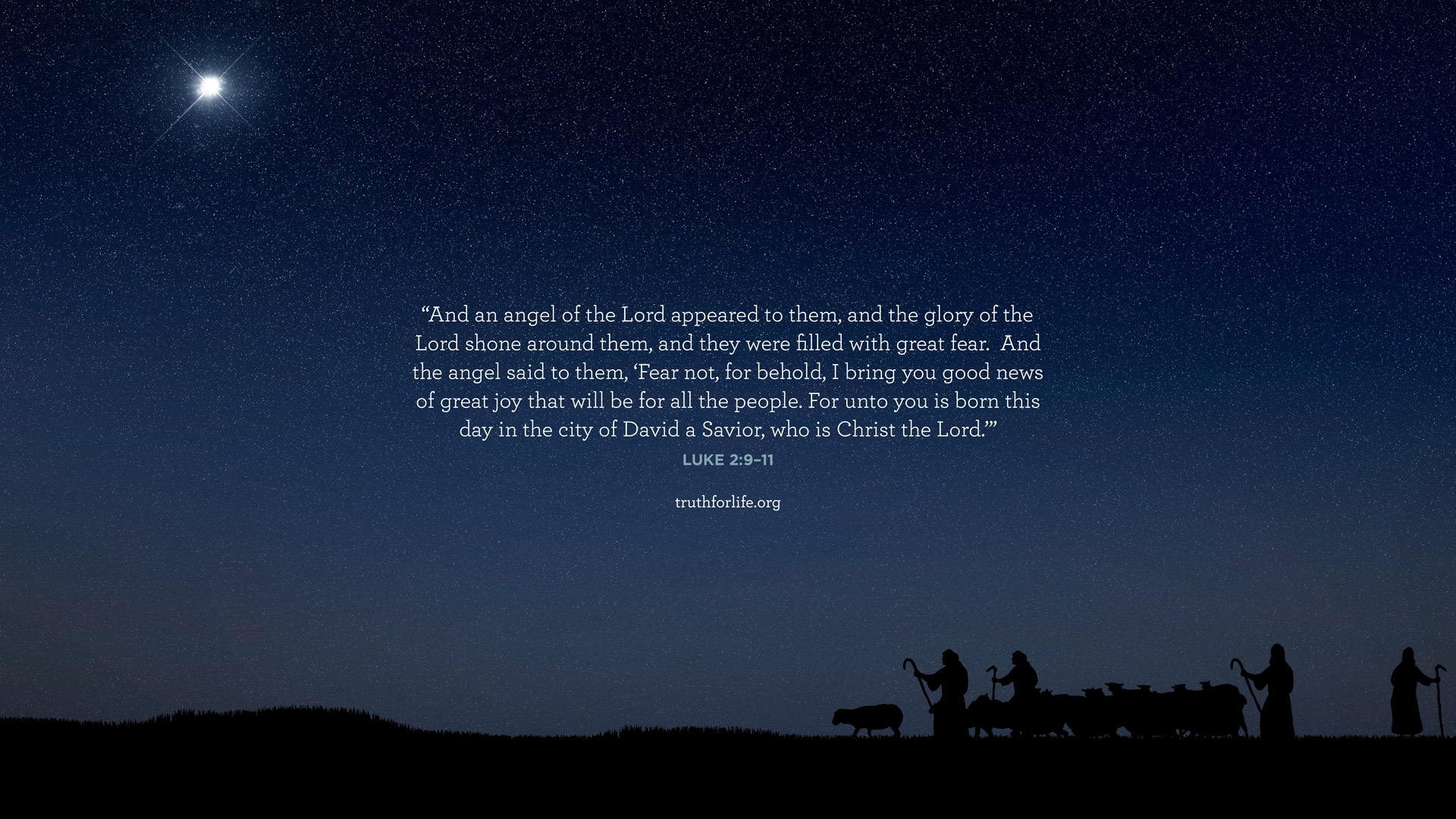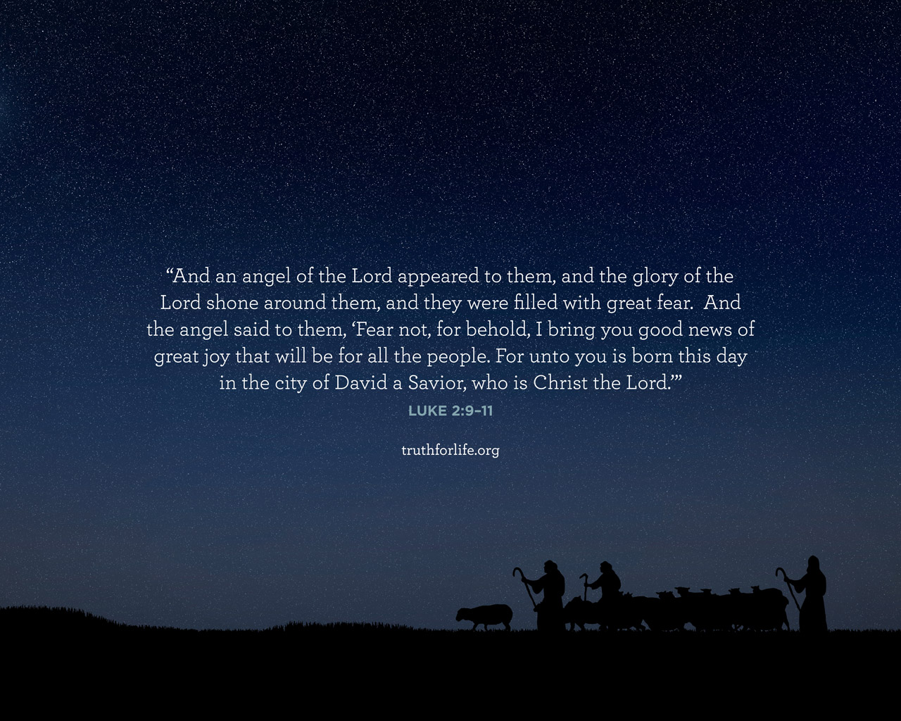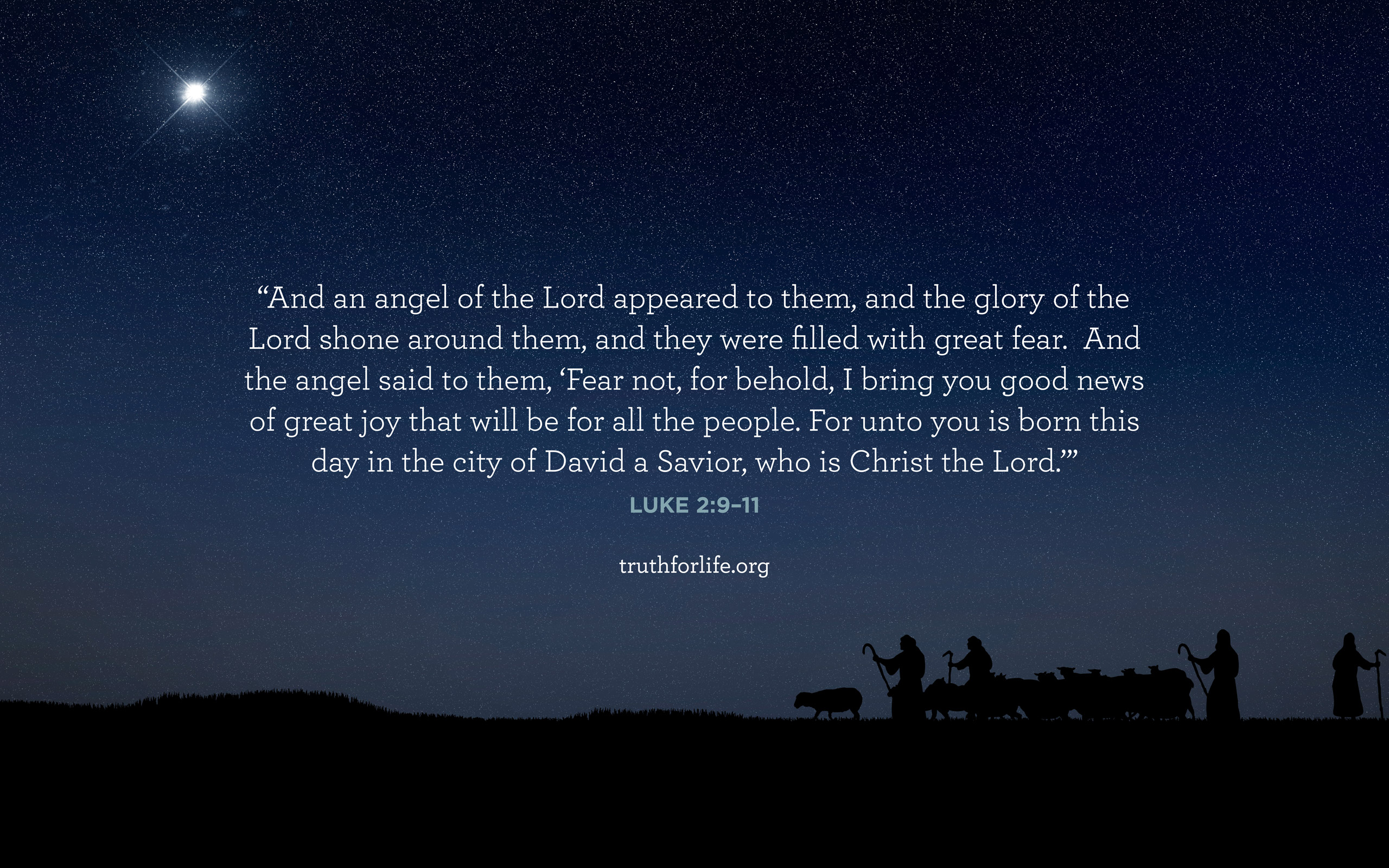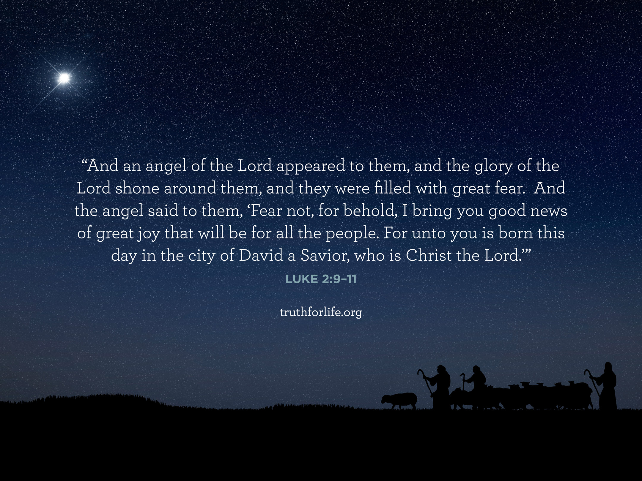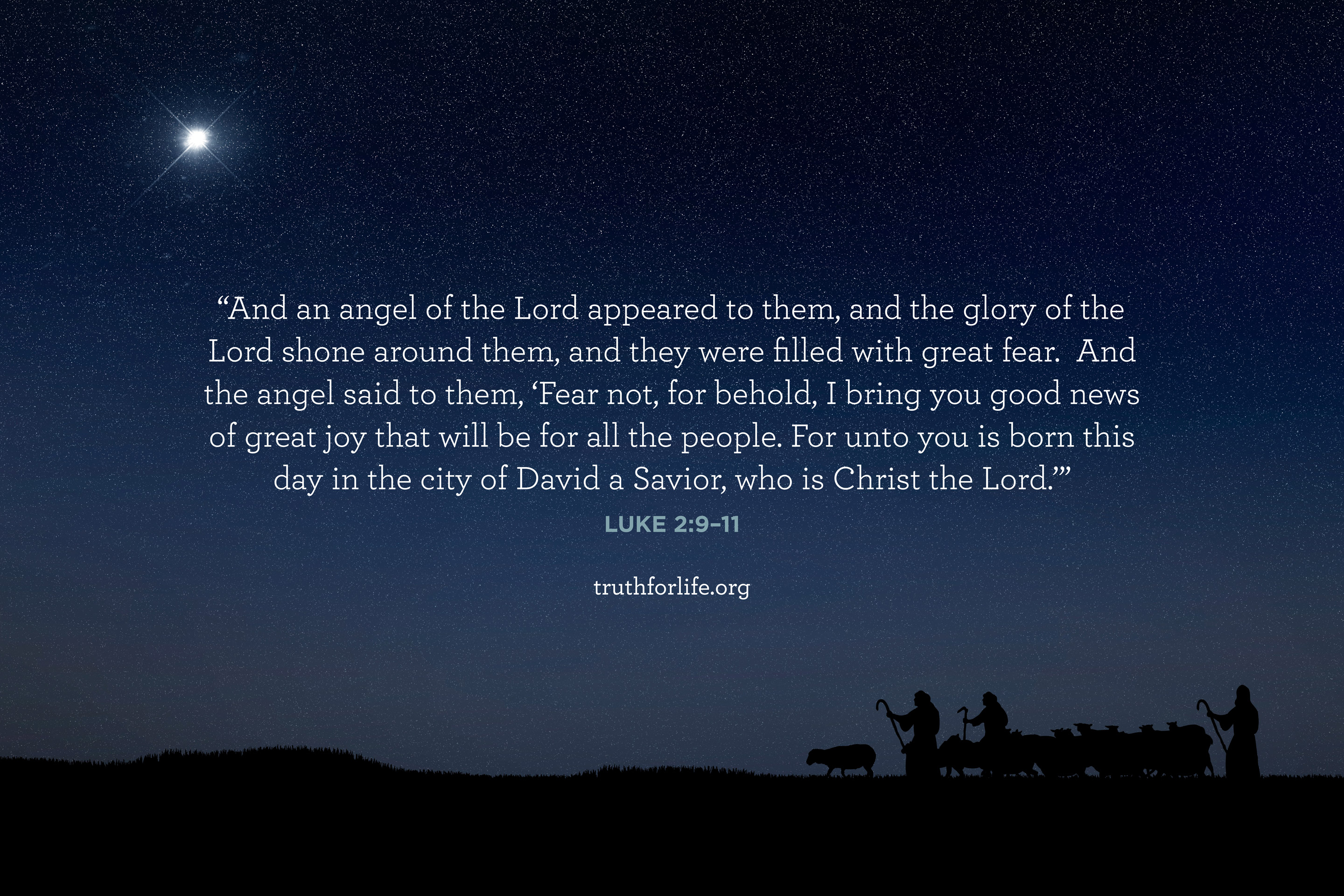 “And an angel of the Lord appeared to them, and the glory of the Lord shone around them, and they were filled with great fear. And the angel said to them, ‘Fear not, for behold, I bring you good news of great joy that will be for all the people. For unto you is born this day in the city of David a Savior, who is Christ the Lord.’”