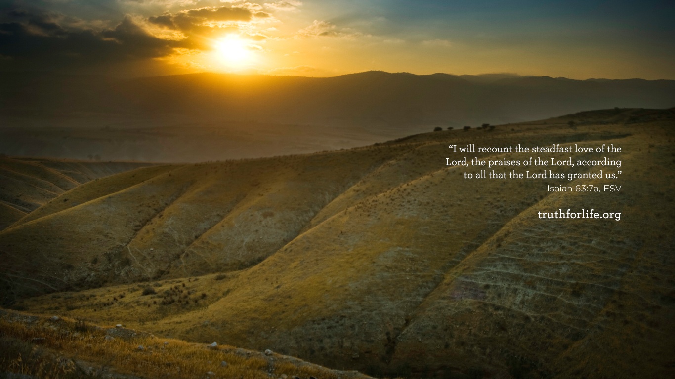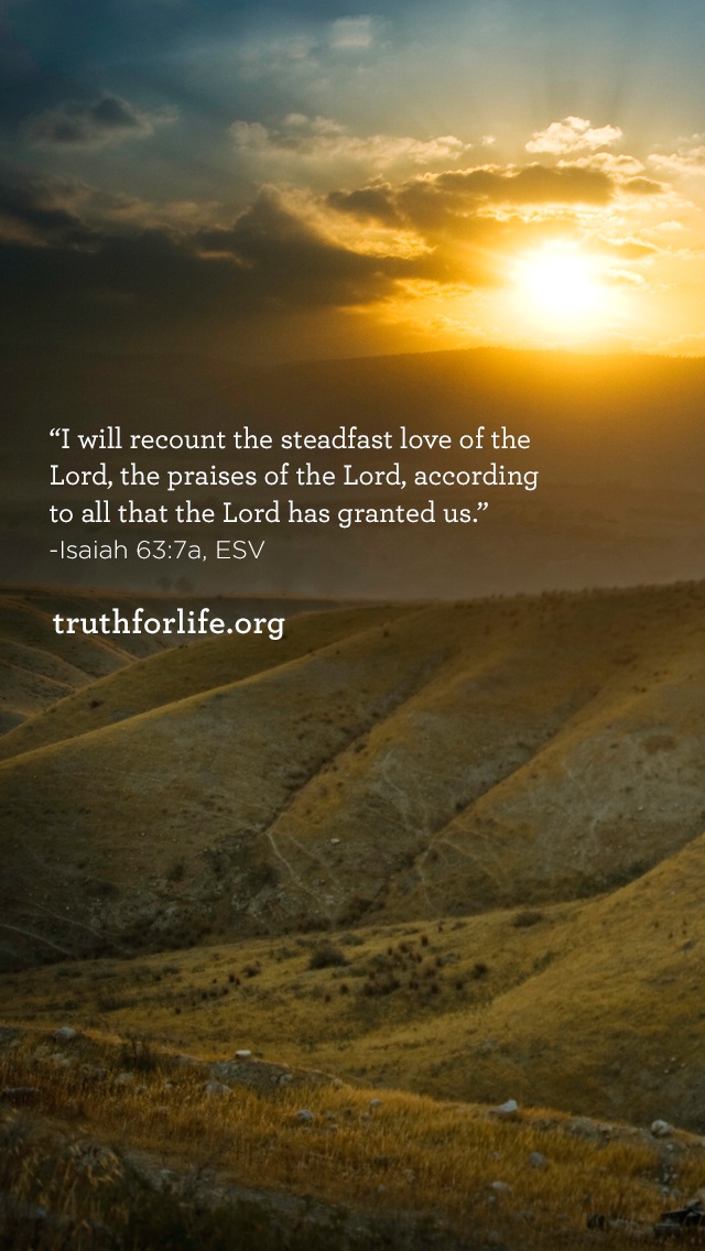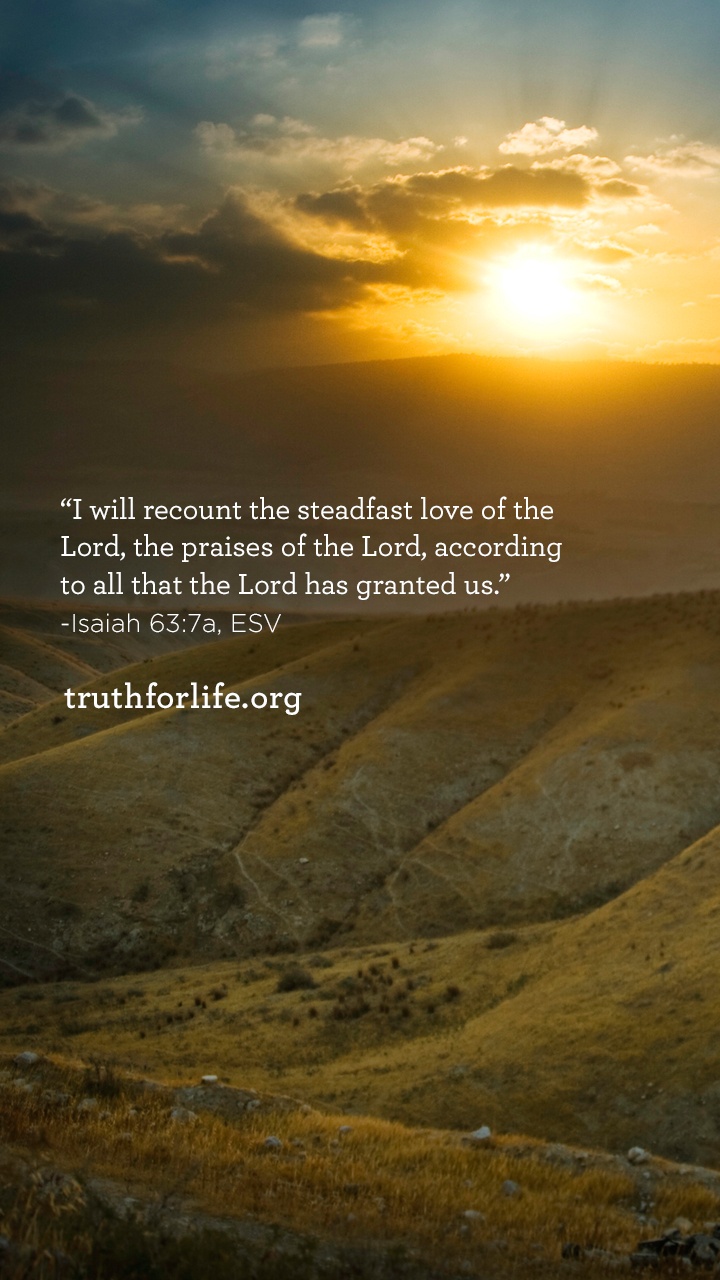 "I will recount the steadfast love of the Lord, the praises of the Lord, according to all that the Lord has granted us." -Isaiah 63:7a