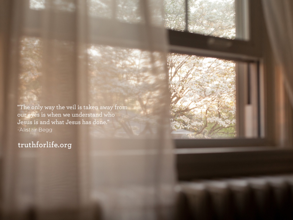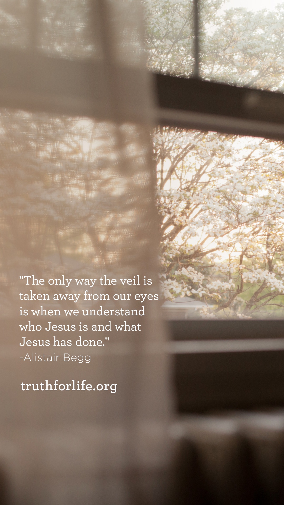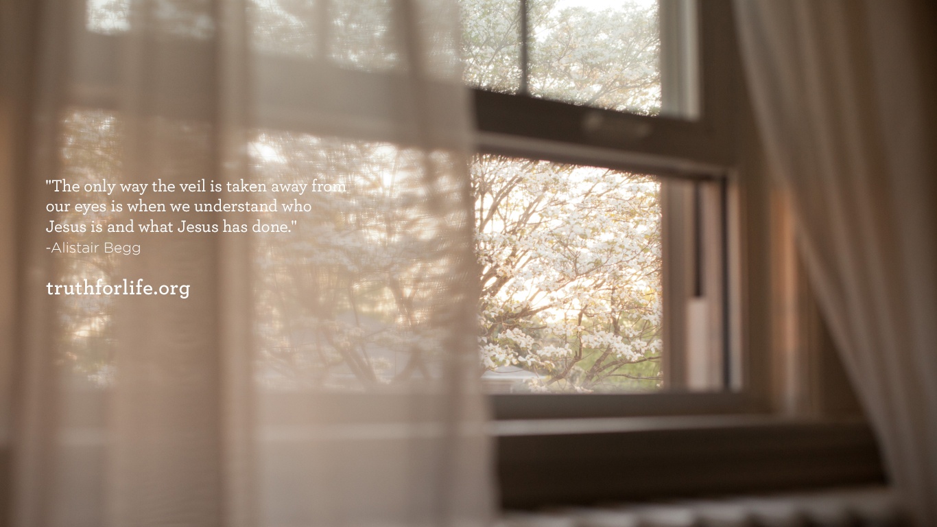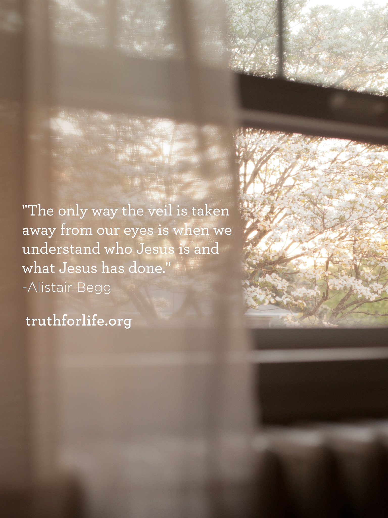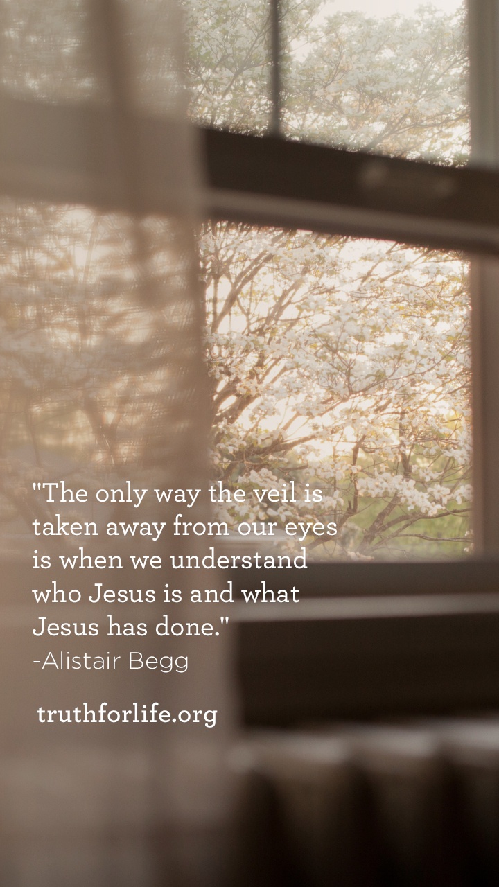 "The only way the veil is taken away from our eyes is when we understand who Jesus is and what Jesus has done." -Alistair Begg