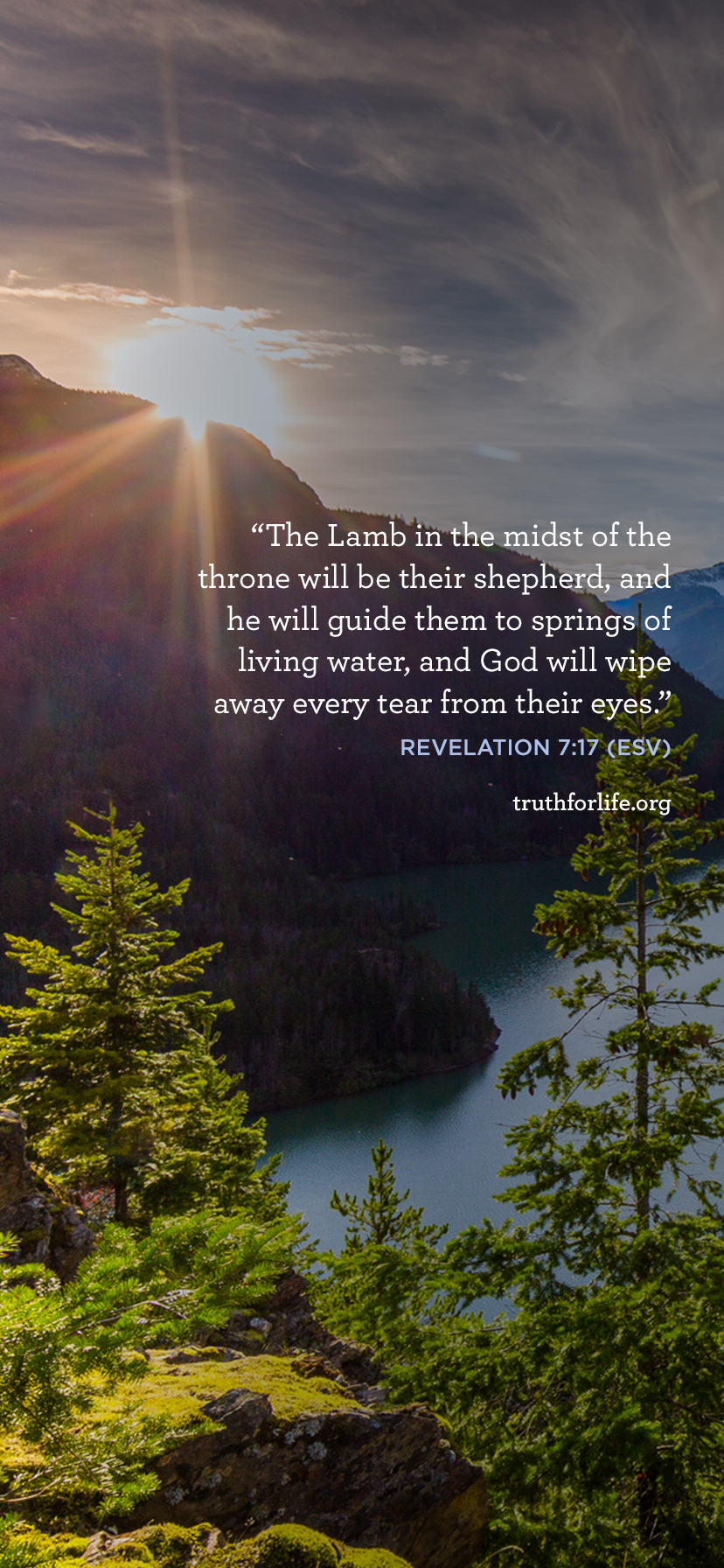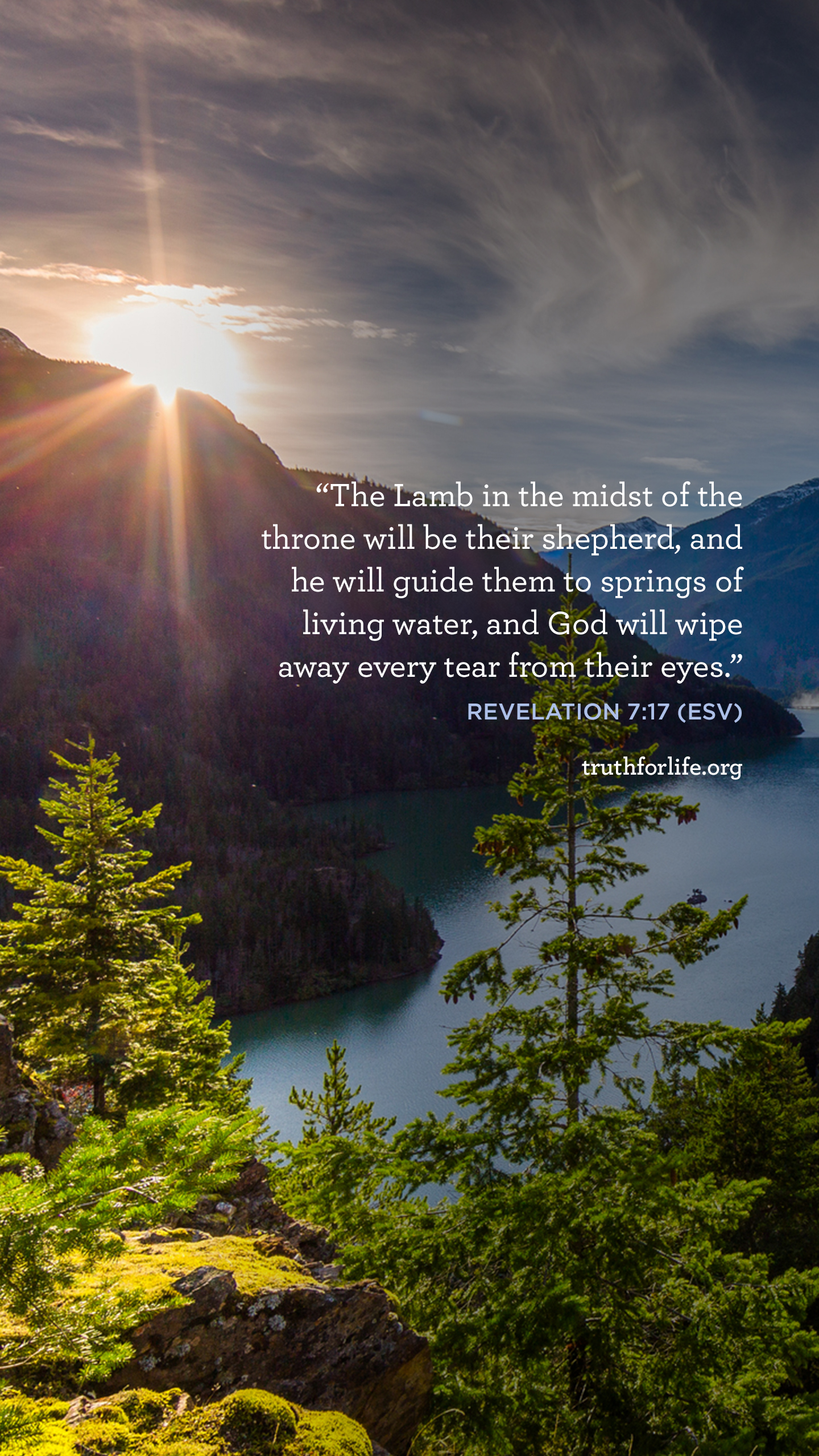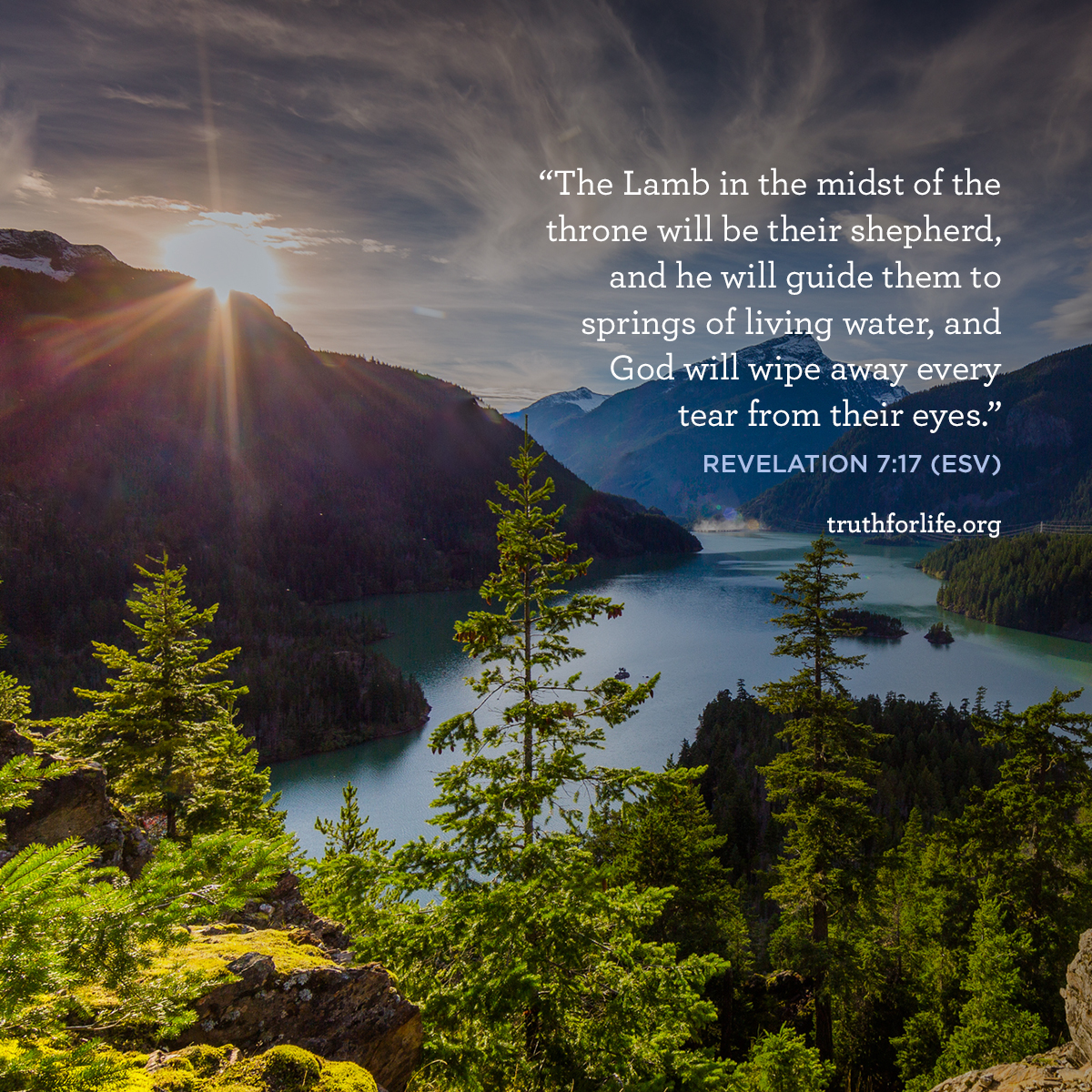 “The Lamb in the midst of the throne will be their shepherd, and he will guide them to springs of living water, and God will wipe away every tear from their eyes.” (Revelation 7:17 ESV)