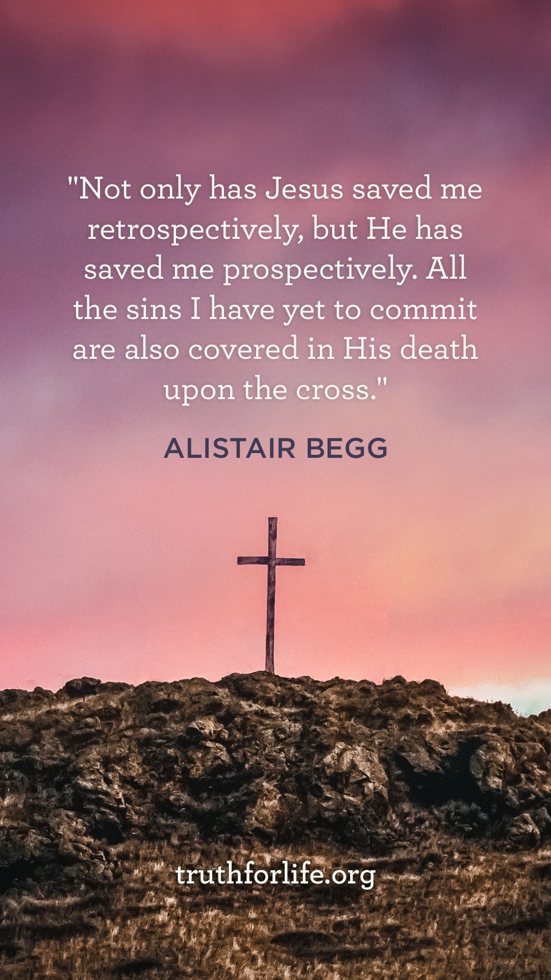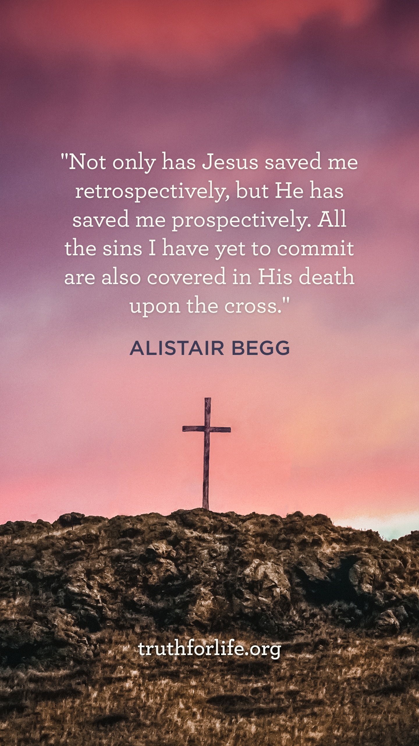 "Not only has Jesus saved me retrospectively, but He has saved me prospectively. All the sins I have yet to commit are also covered in His death upon the cross."