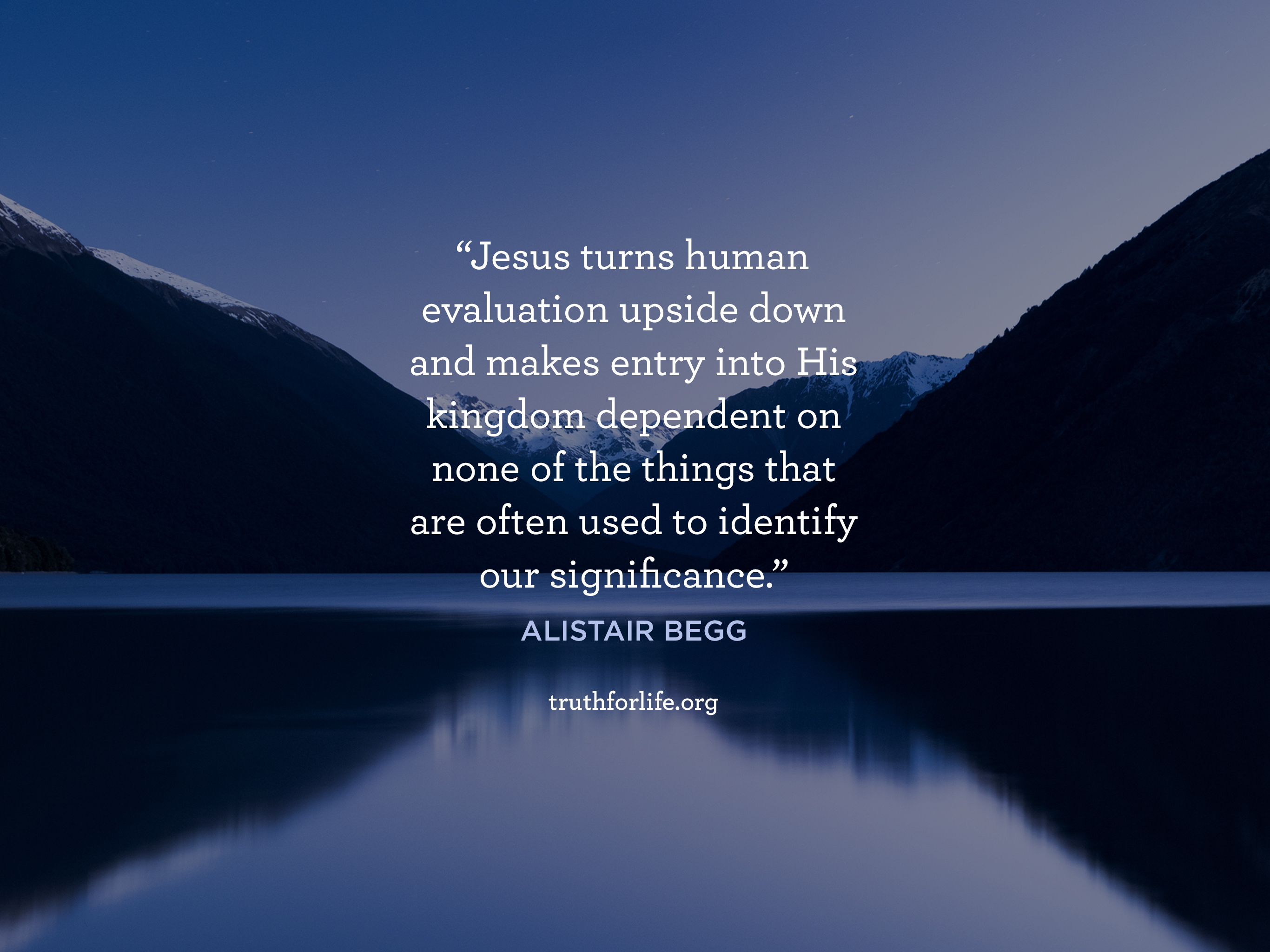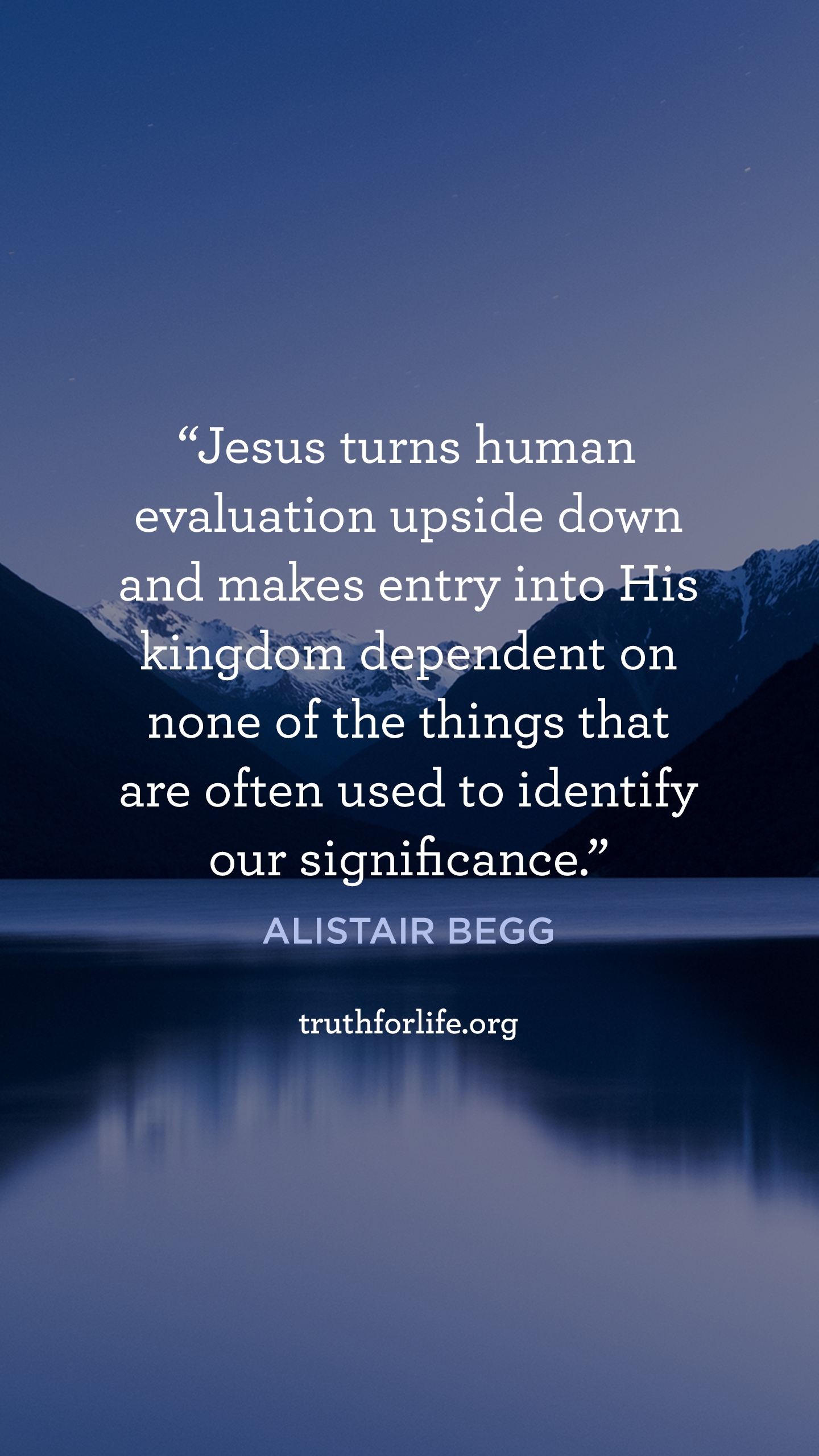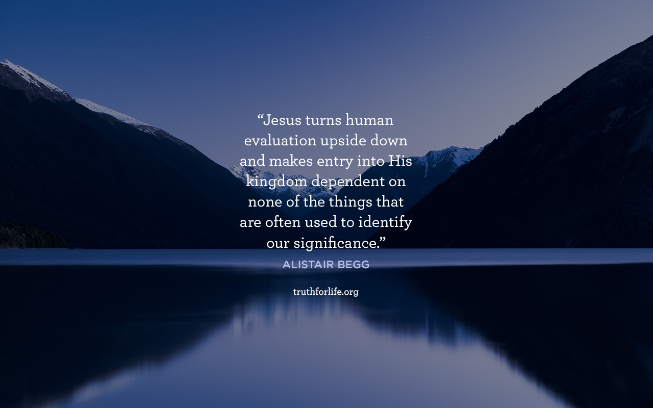 "Jesus turns human evaluation upside down and makes entry into His kingdom dependent on none of the things that are often used to identify our significance."