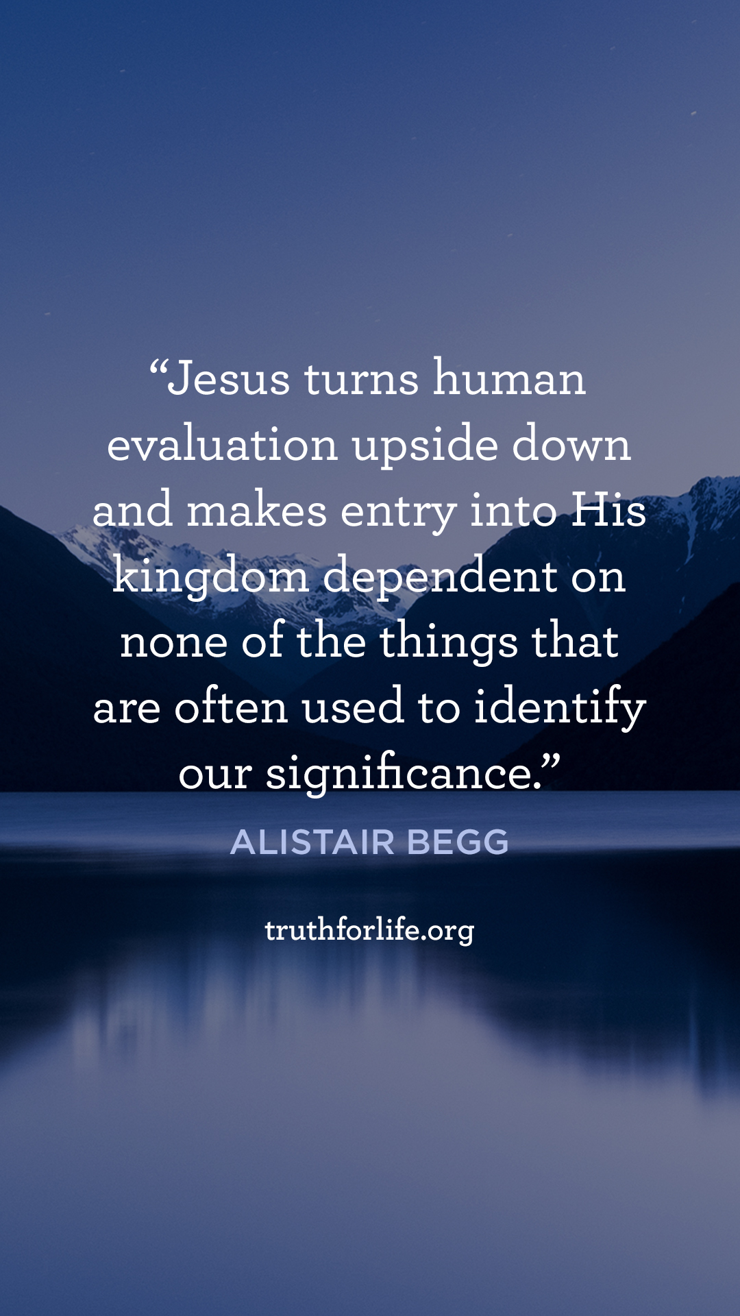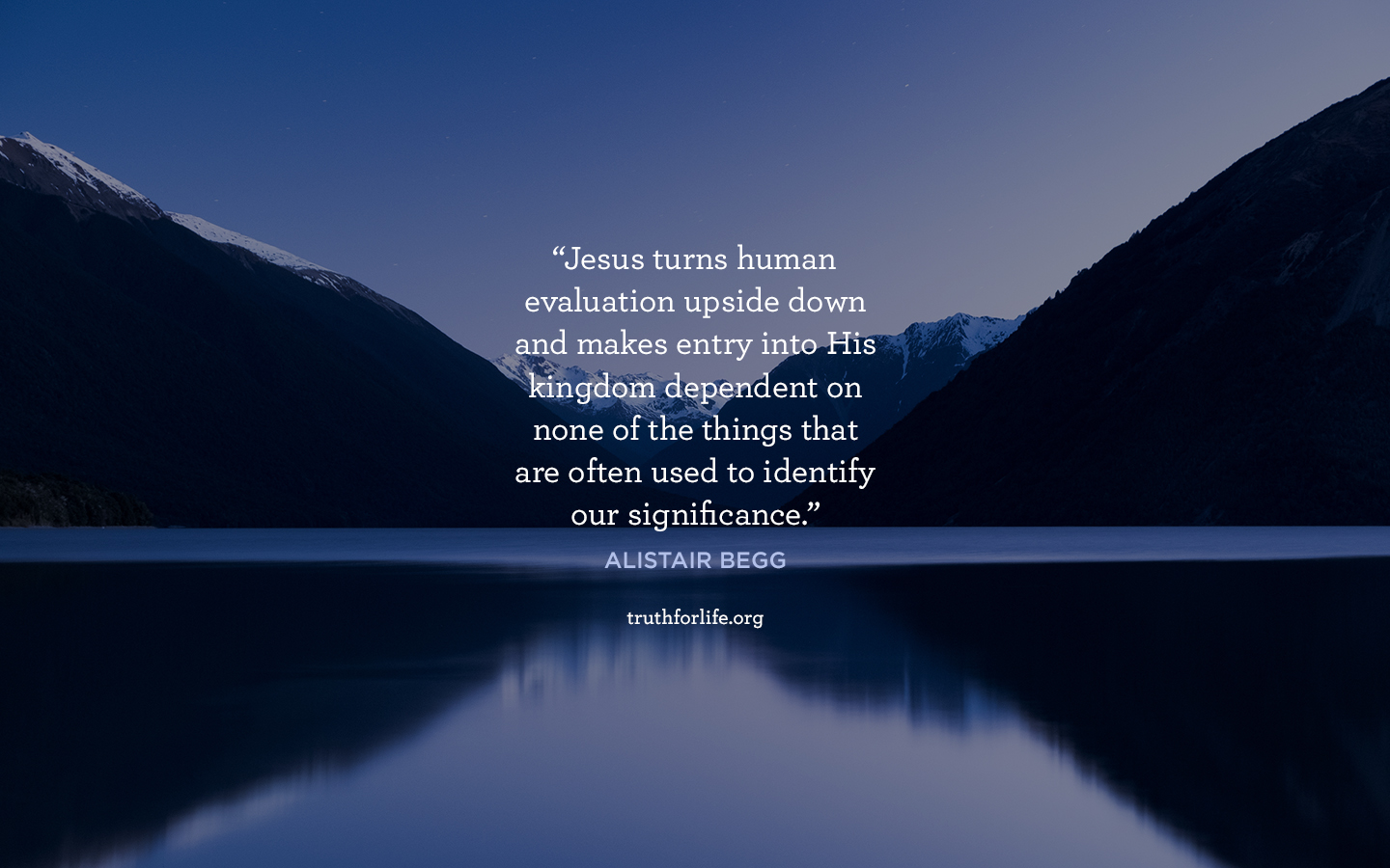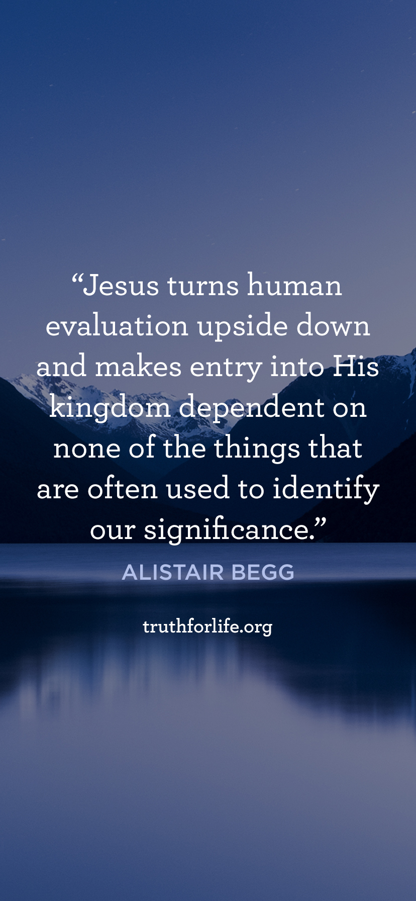 "Jesus turns human evaluation upside down and makes entry into His kingdom dependent on none of the things that are often used to identify our significance."
