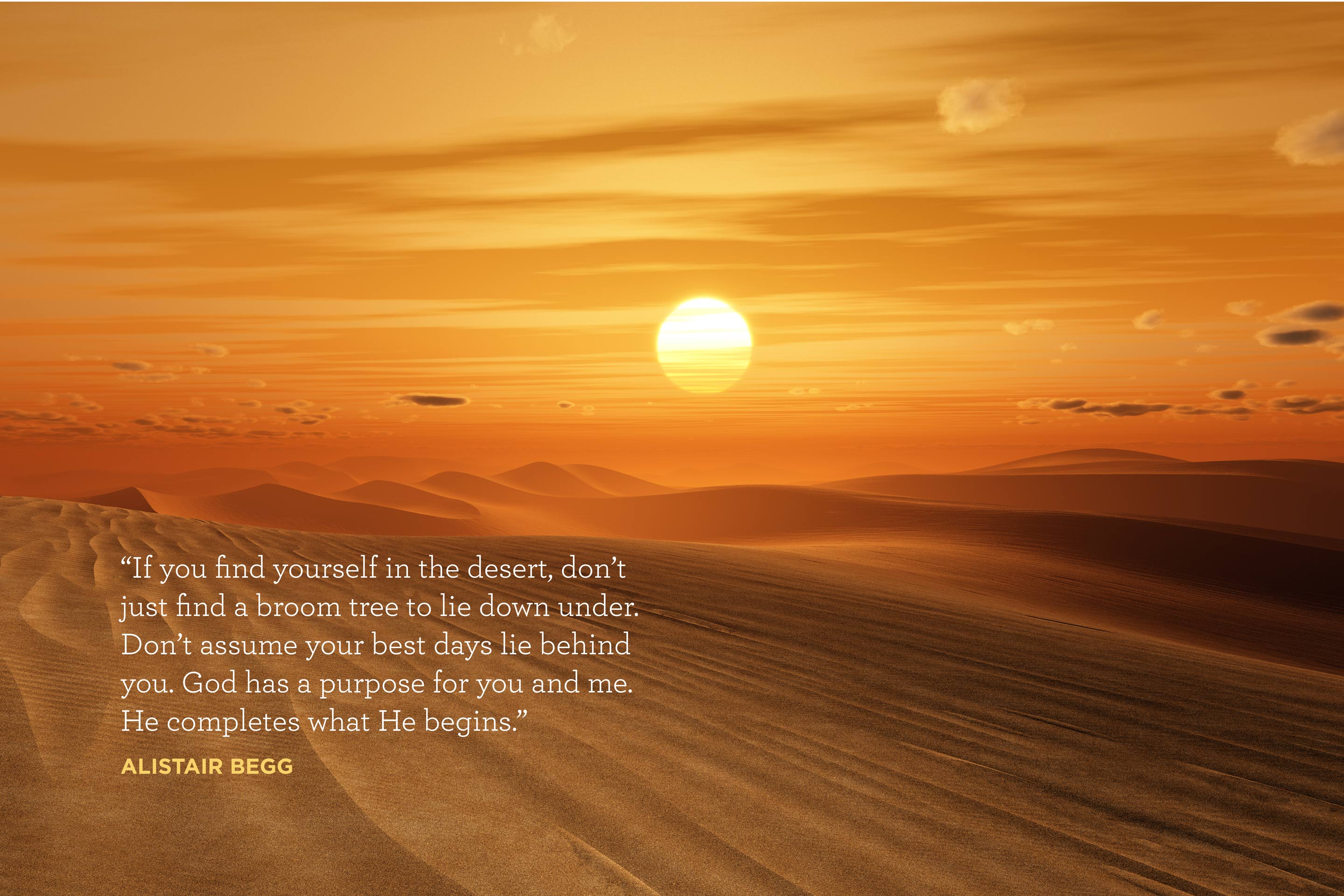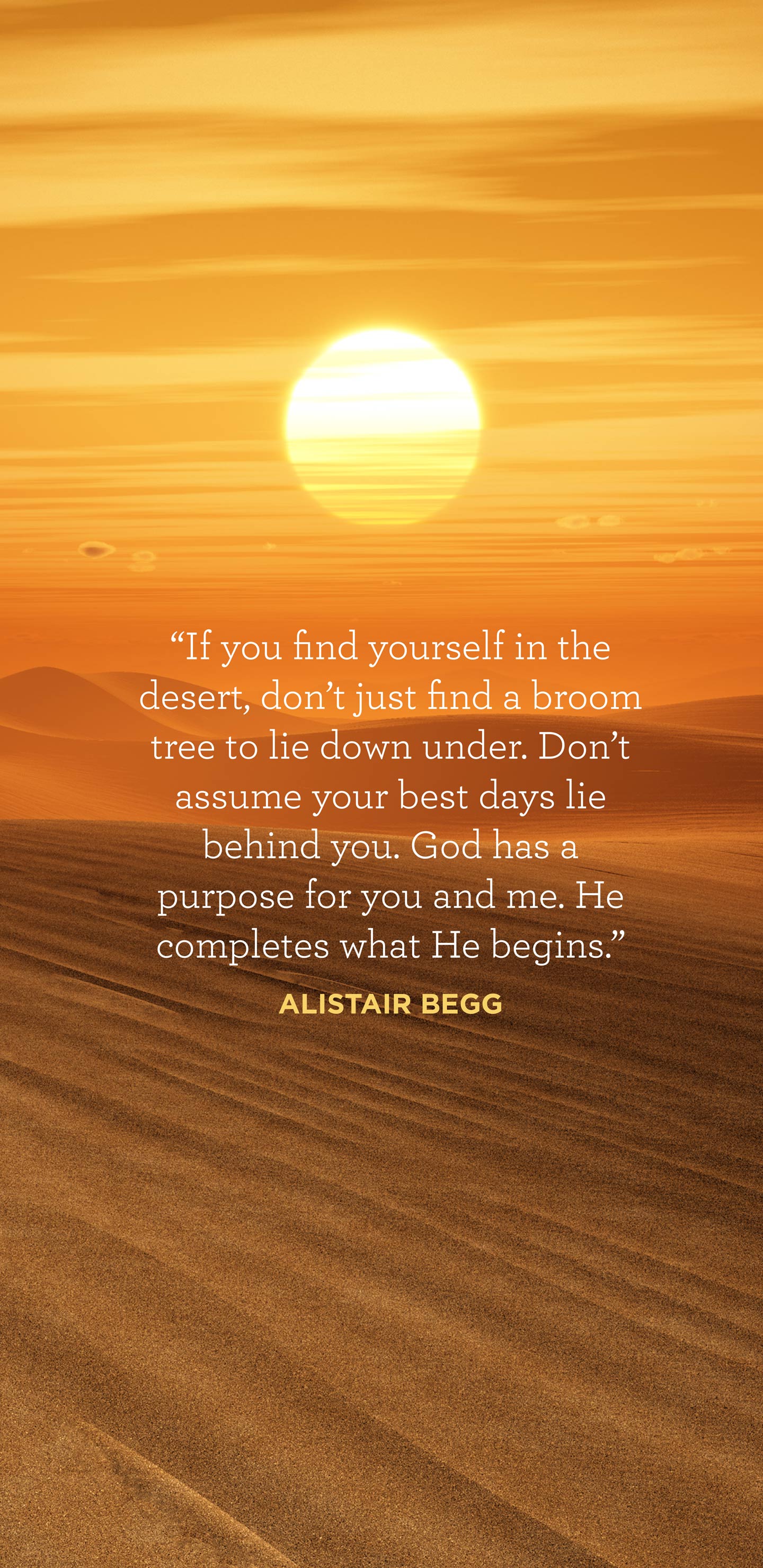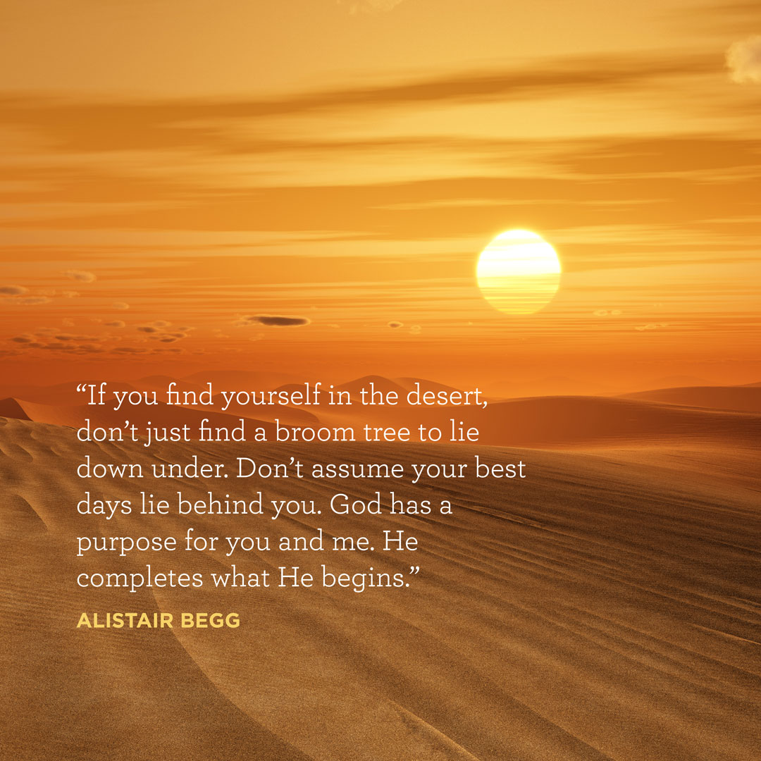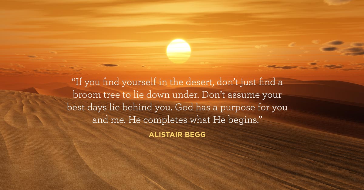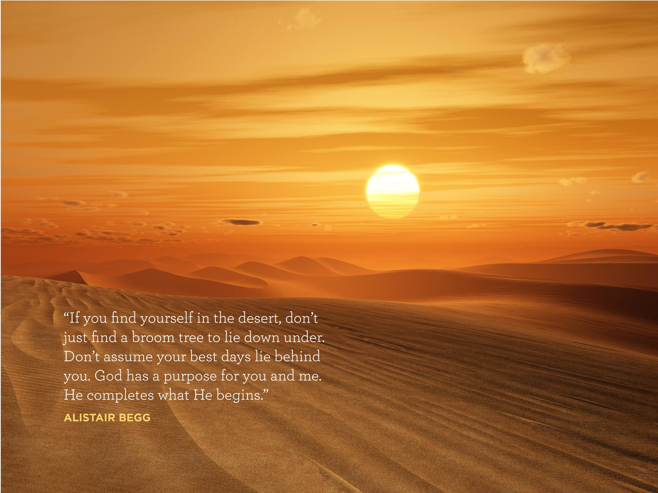 “If you find yourself in the desert, don’t just find a broom tree to lie down under. Don’t assume your best days lie behind you. God has a purpose for you and me. He completes what He begins.”