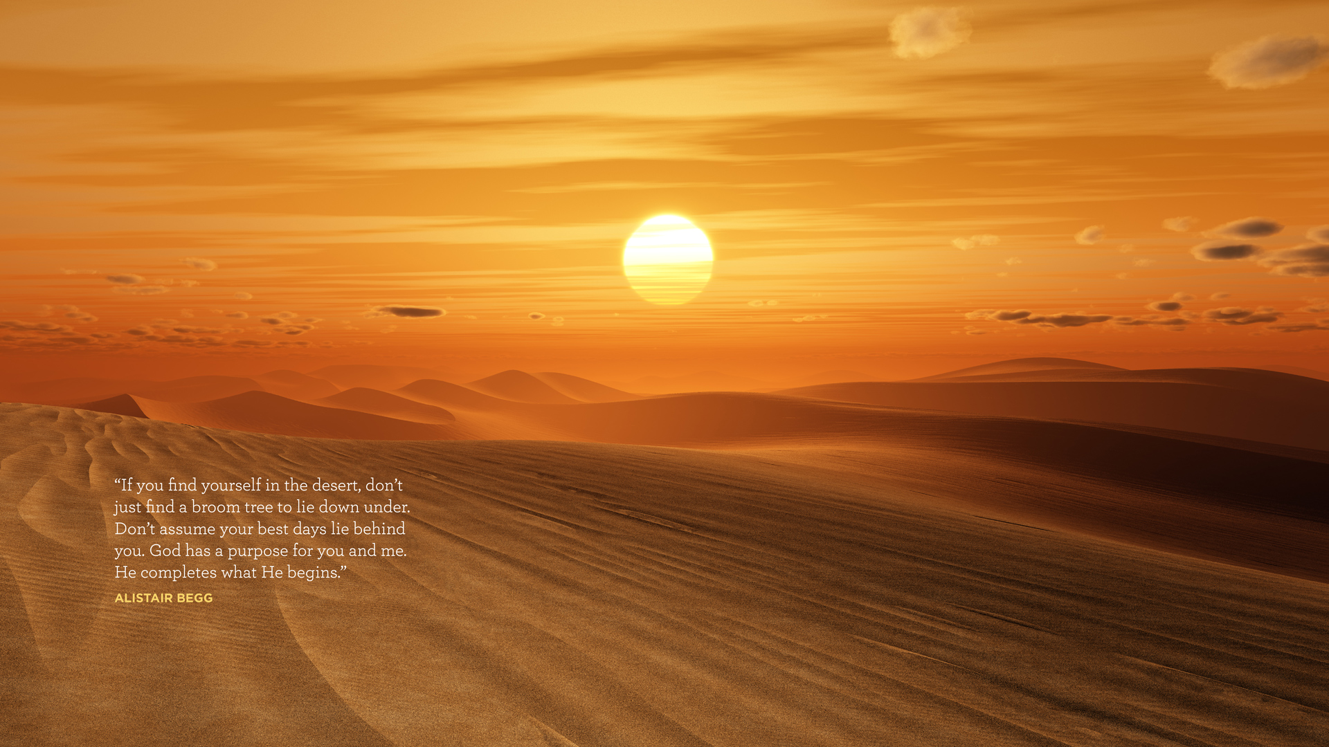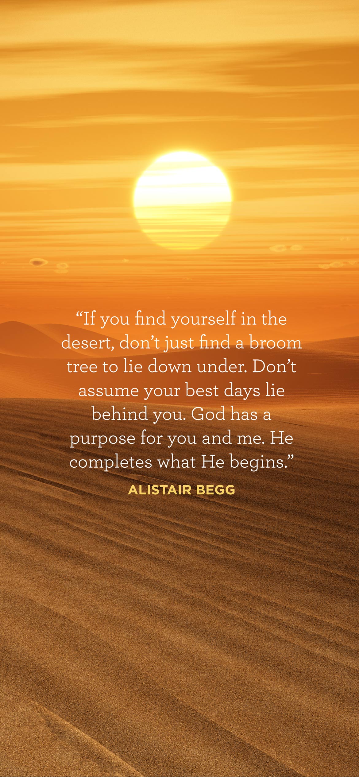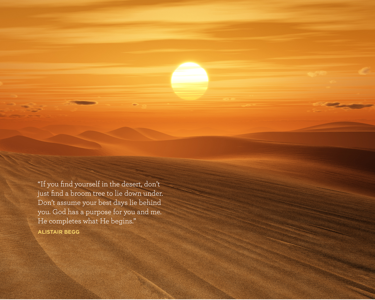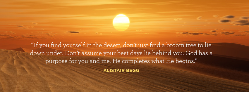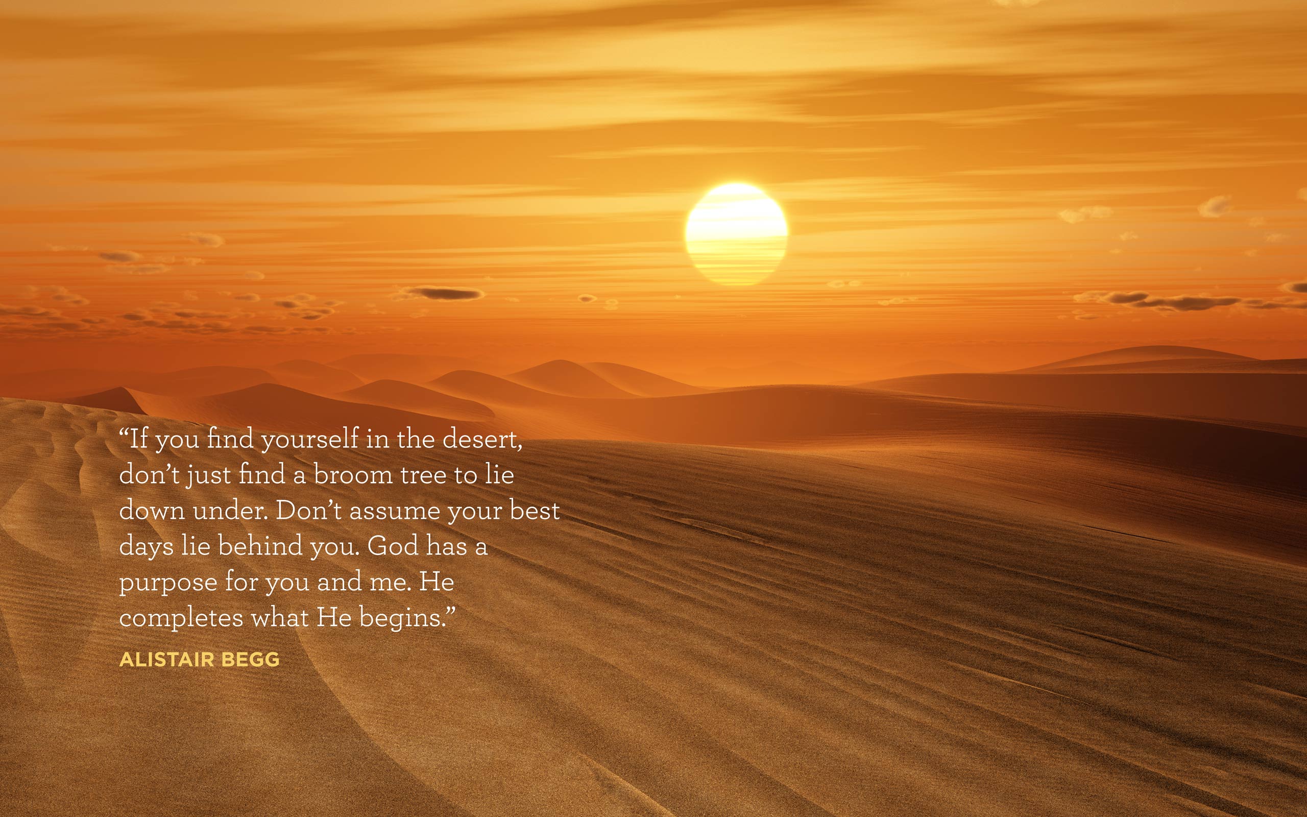 “If you find yourself in the desert, don’t just find a broom tree to lie down under. Don’t assume your best days lie behind you. God has a purpose for you and me. He completes what He begins.”