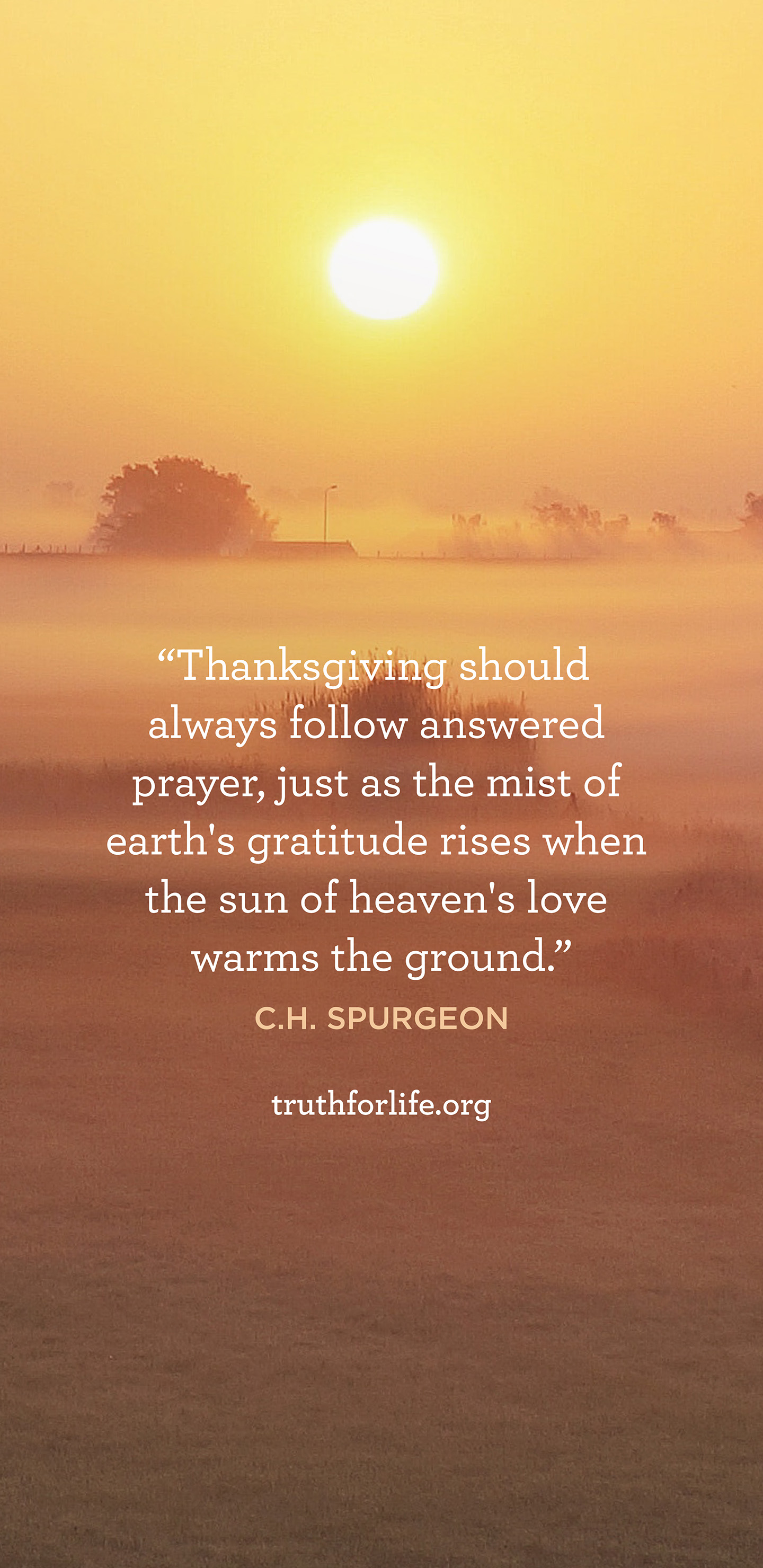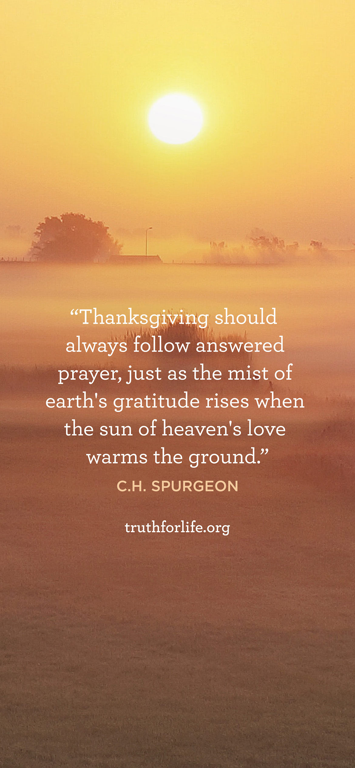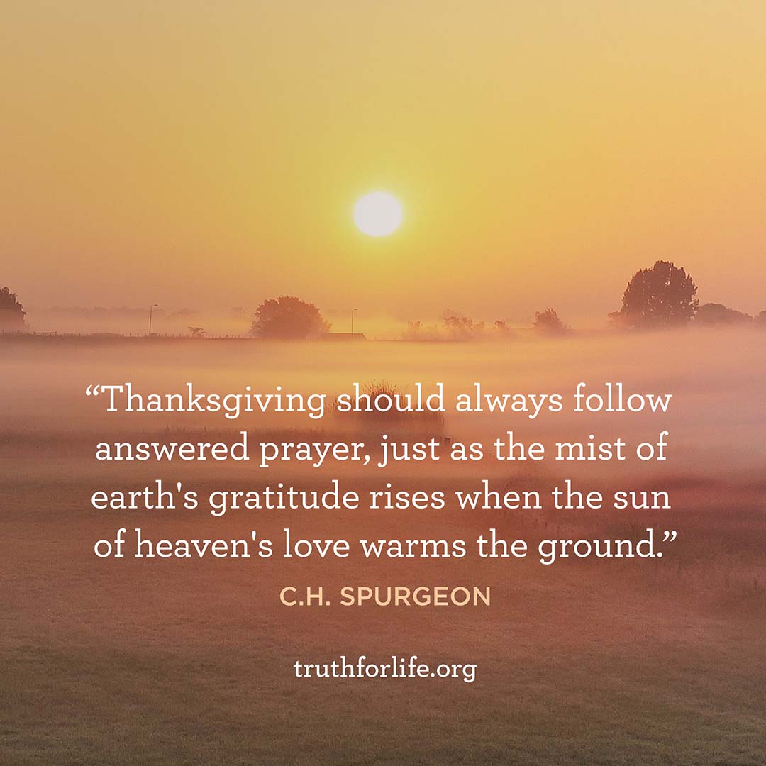 “Thanksgiving should always follow answered prayer, just as the mist of earth’s gratitude rises when the sun of heaven’s love warms the ground.”