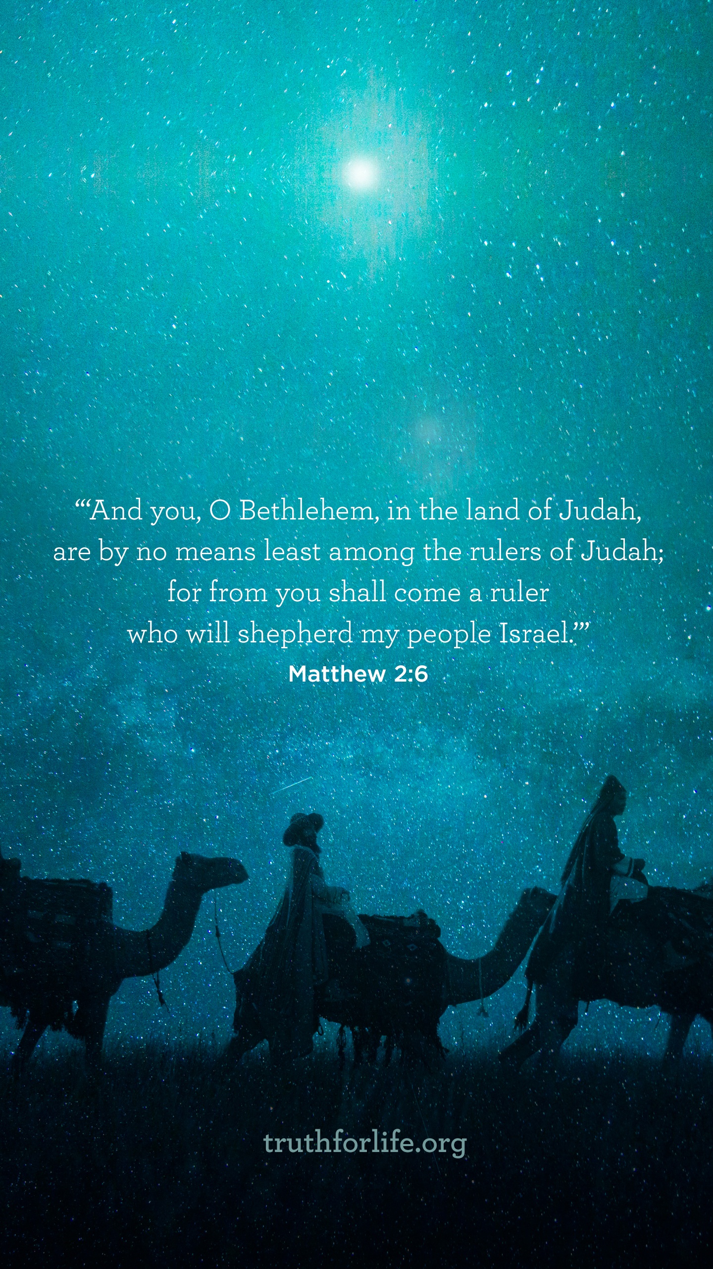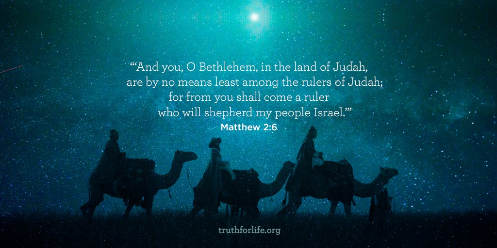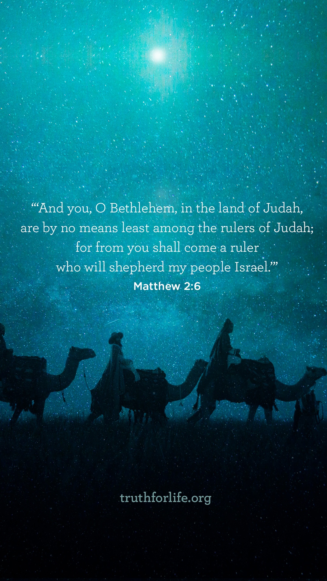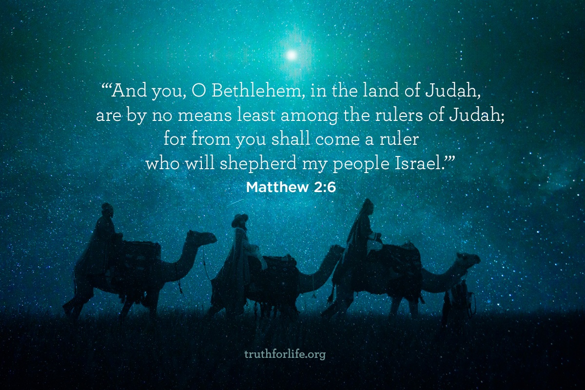 "'And You, O Bethlehem, in the land of Judah, are by no means least among the rulers of Judah; for from you shall come a ruler who will shepherd my people Israel.'" - Matthew 2:6