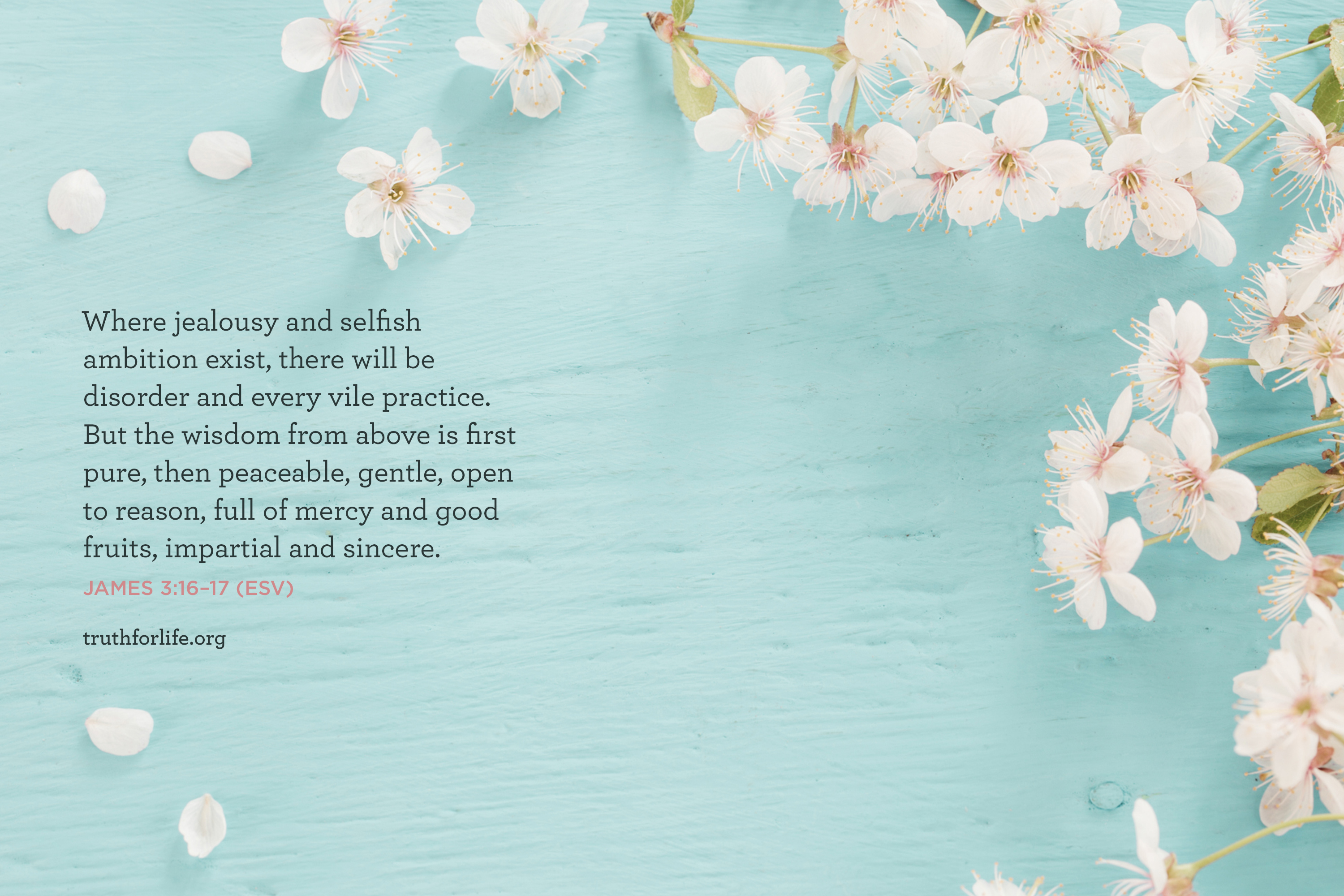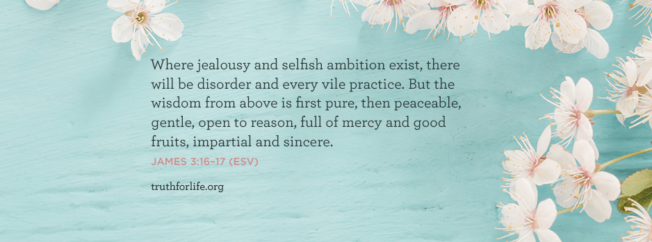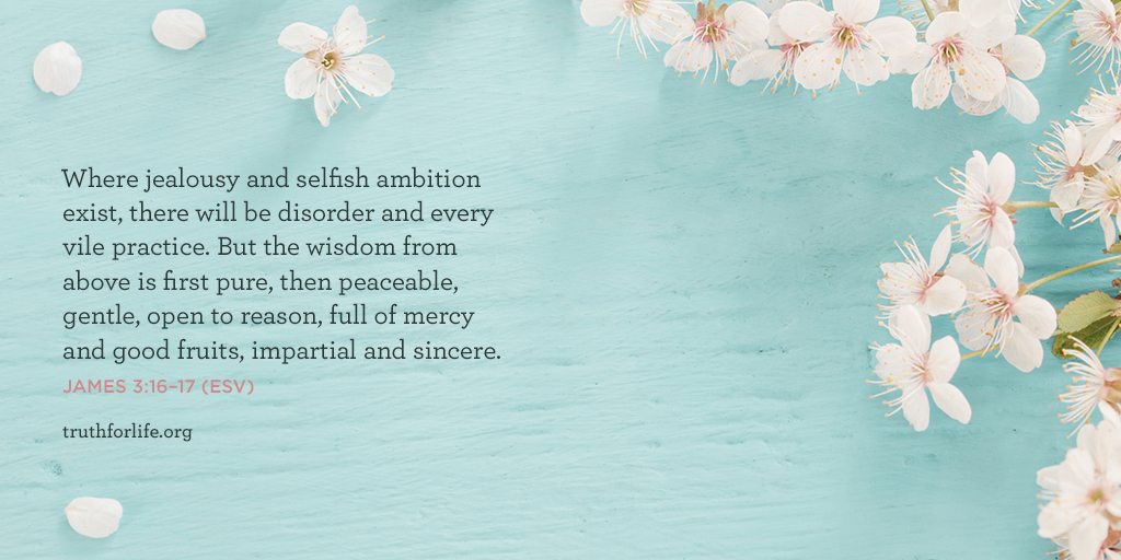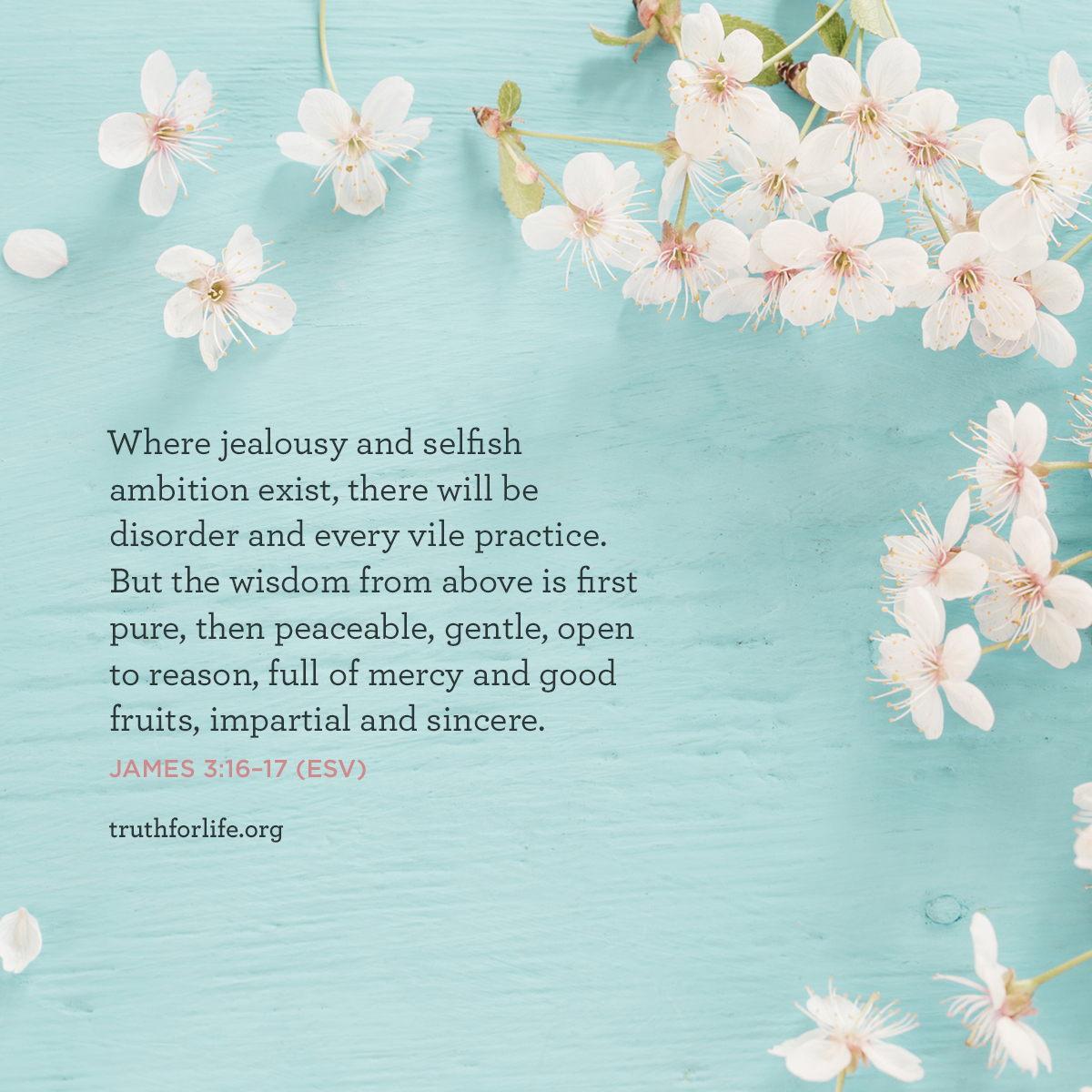 Where jealousy and selfish ambition exist, there will be disorder and every vile practice. But the wisdom from above is first pure, then peaceable, gentle, open to reason, full of mercy and good fruits, impartial and sincere. (James 3:16-17 ESV)